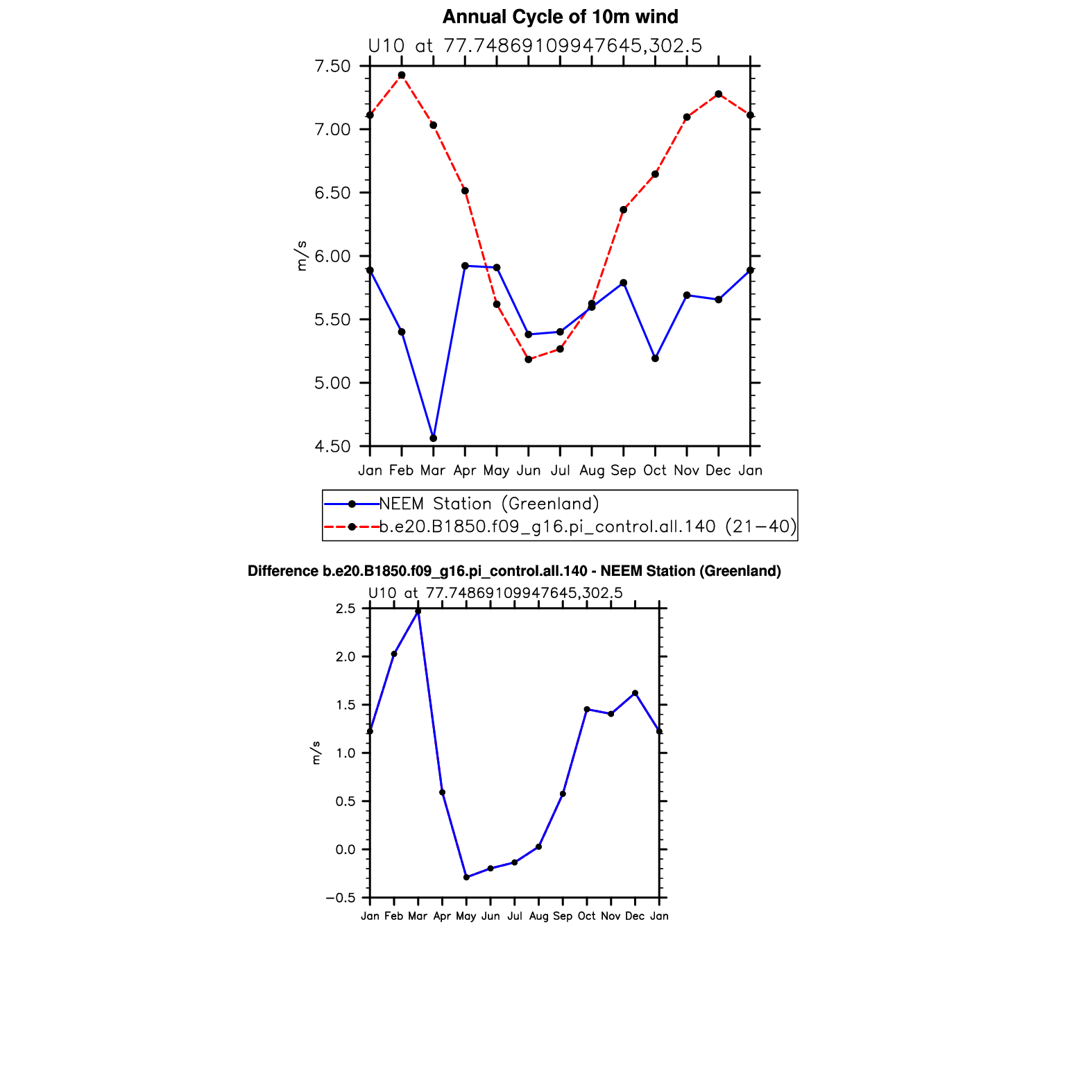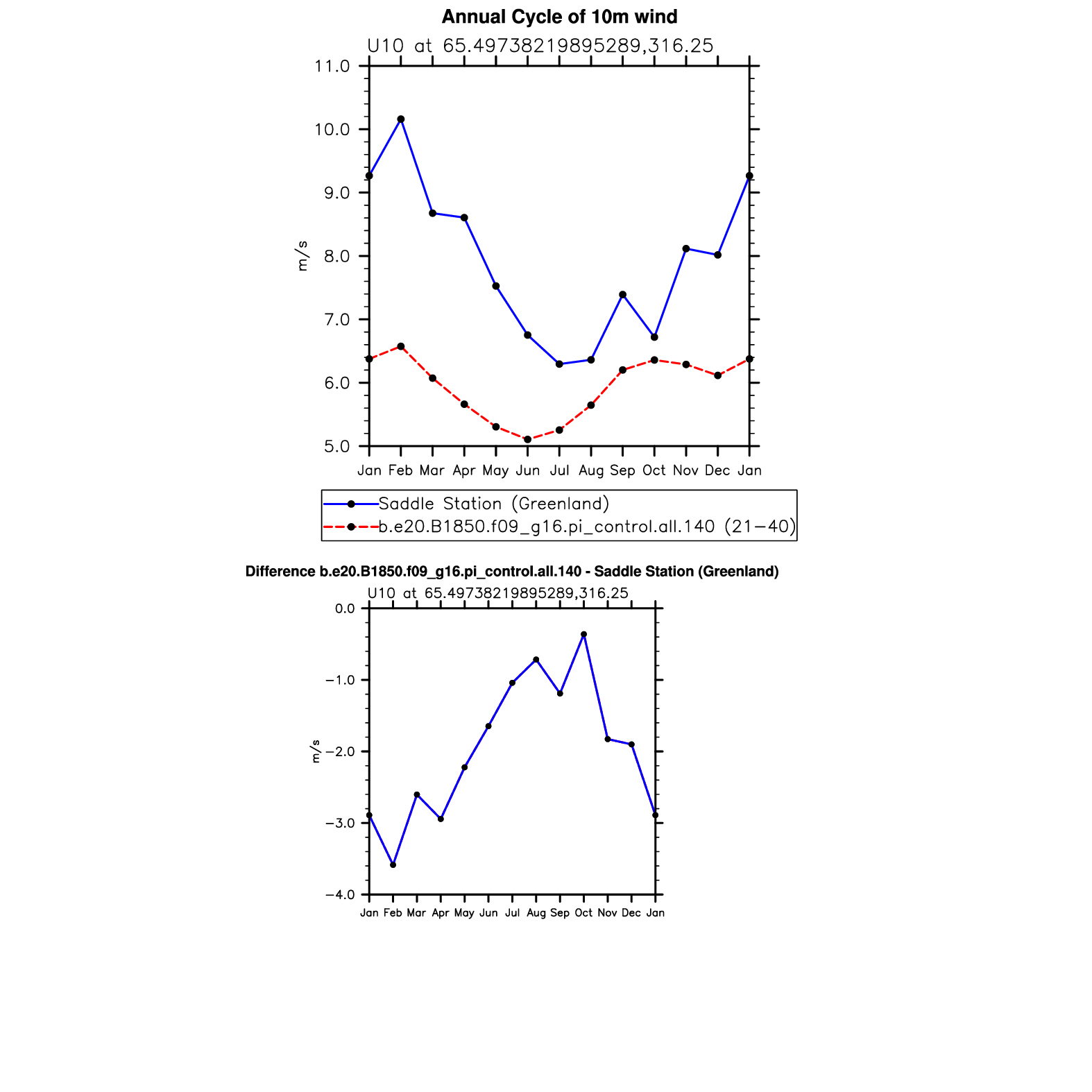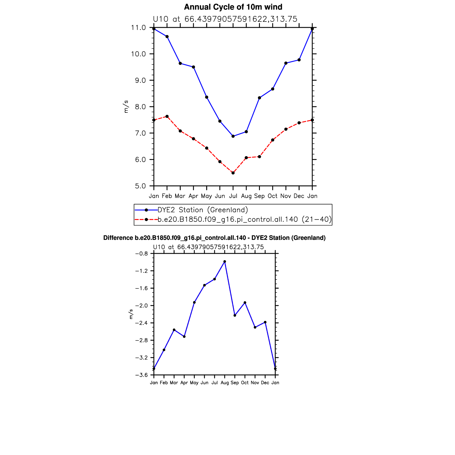 U10 10m wind (station data) plot