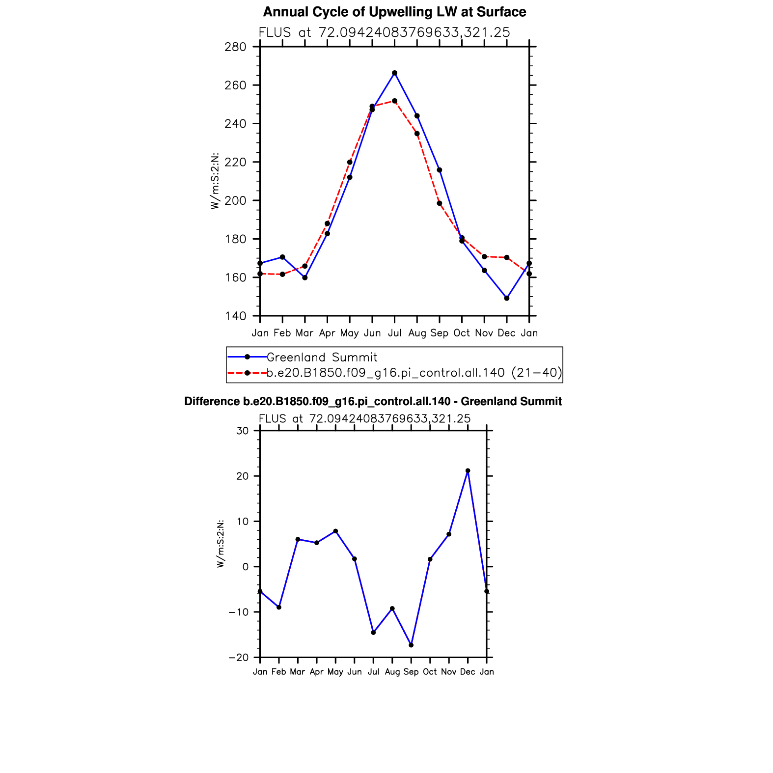 FLUS Upwelling Longwave Flux at Surface plot