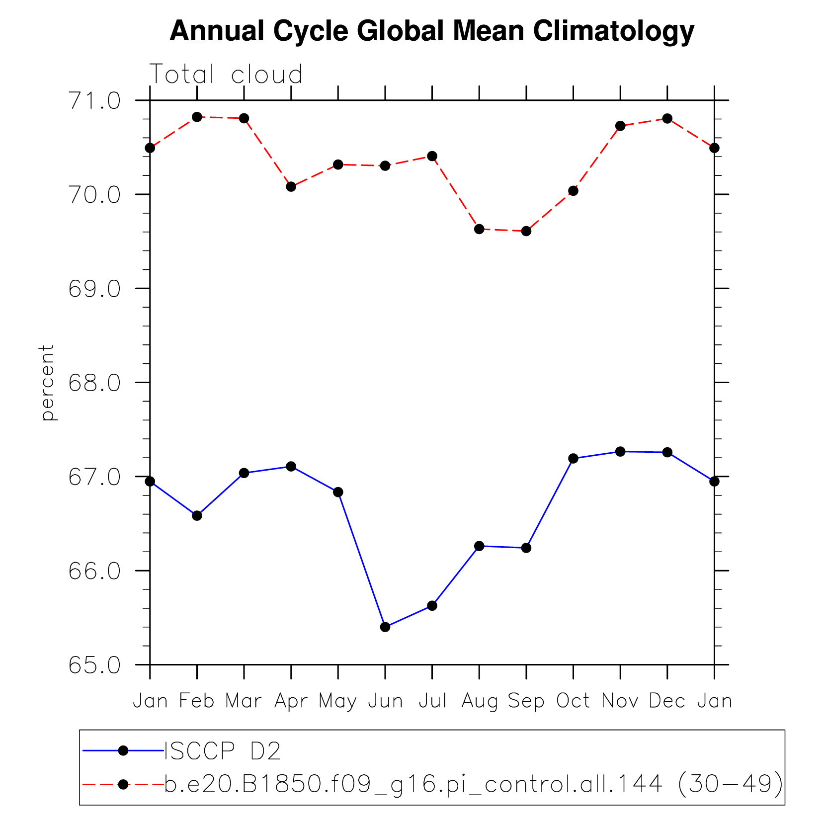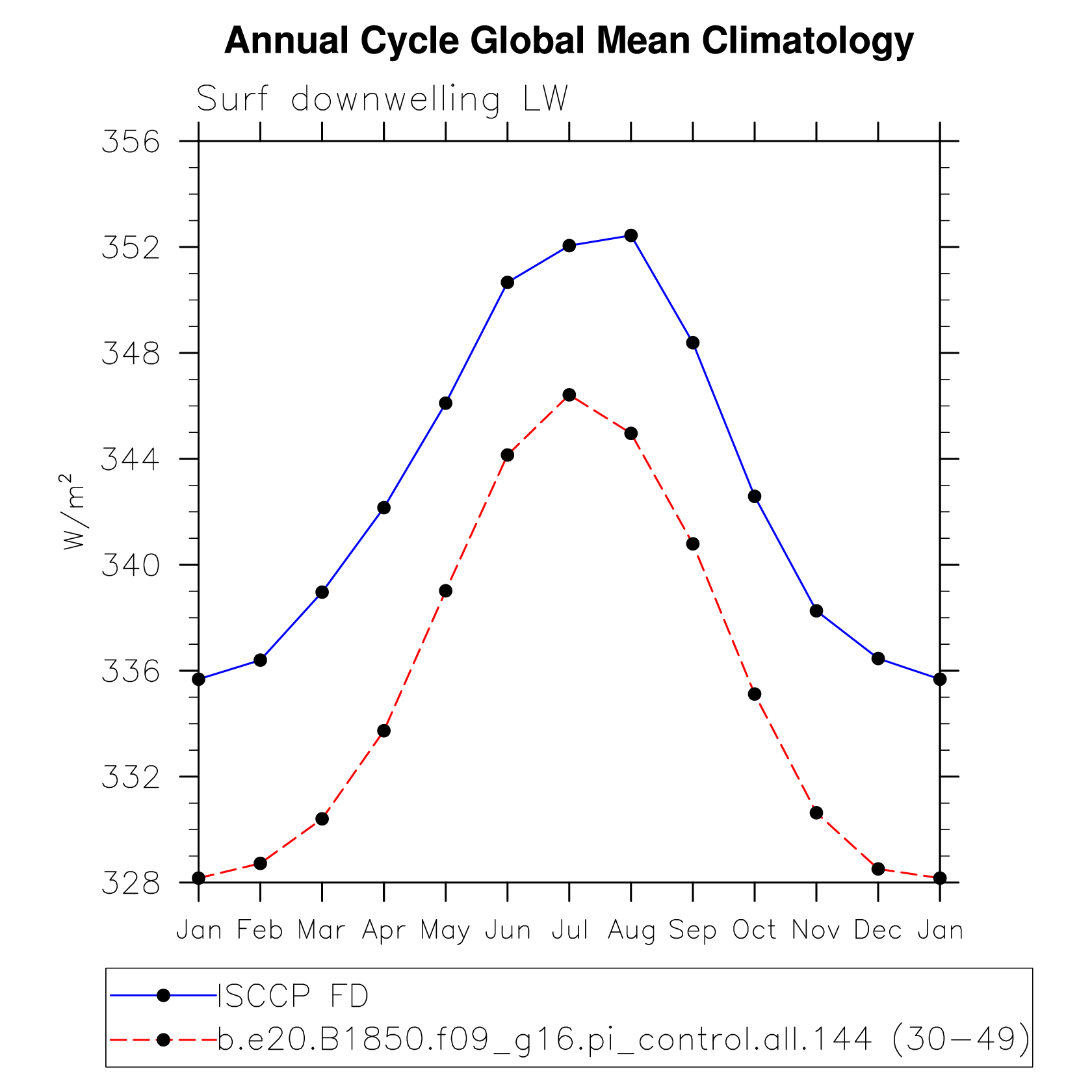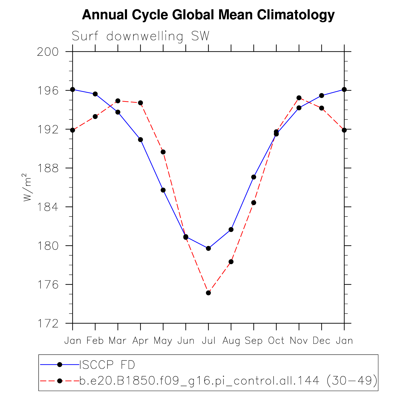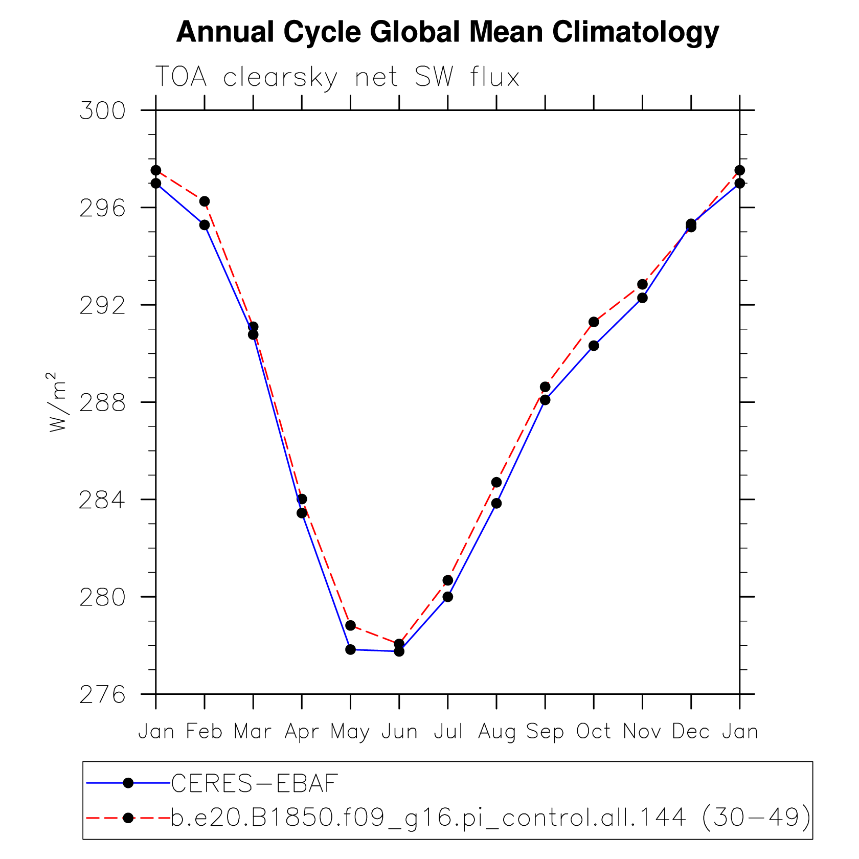 DIAG Set 10 - Annual cycle line plots of global means
