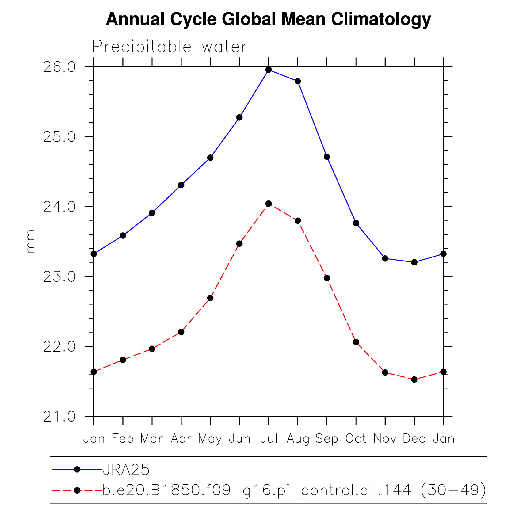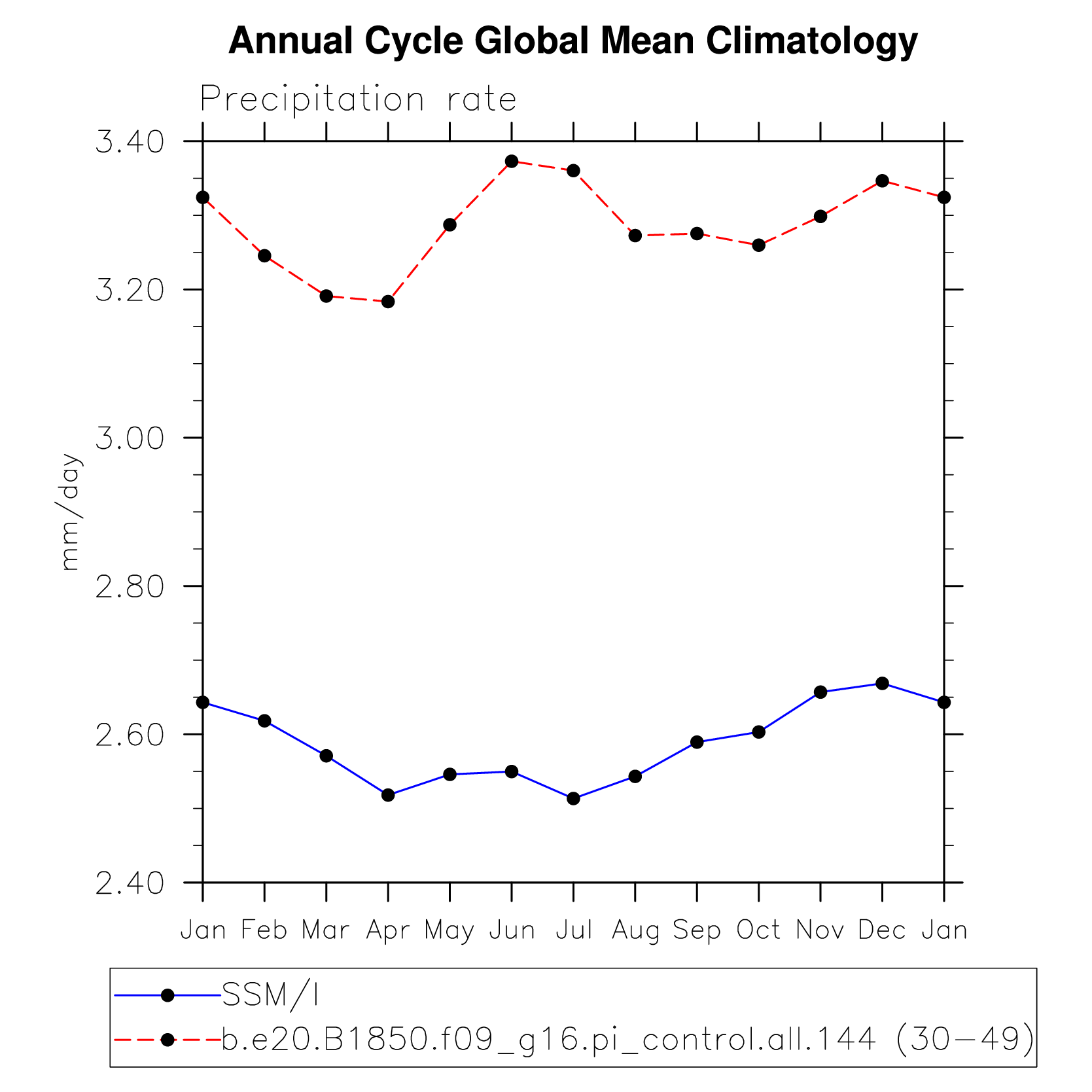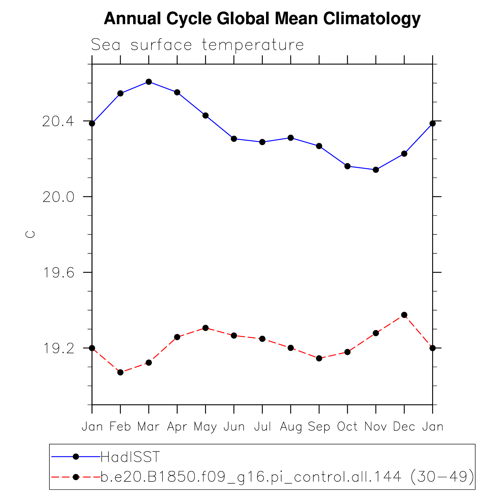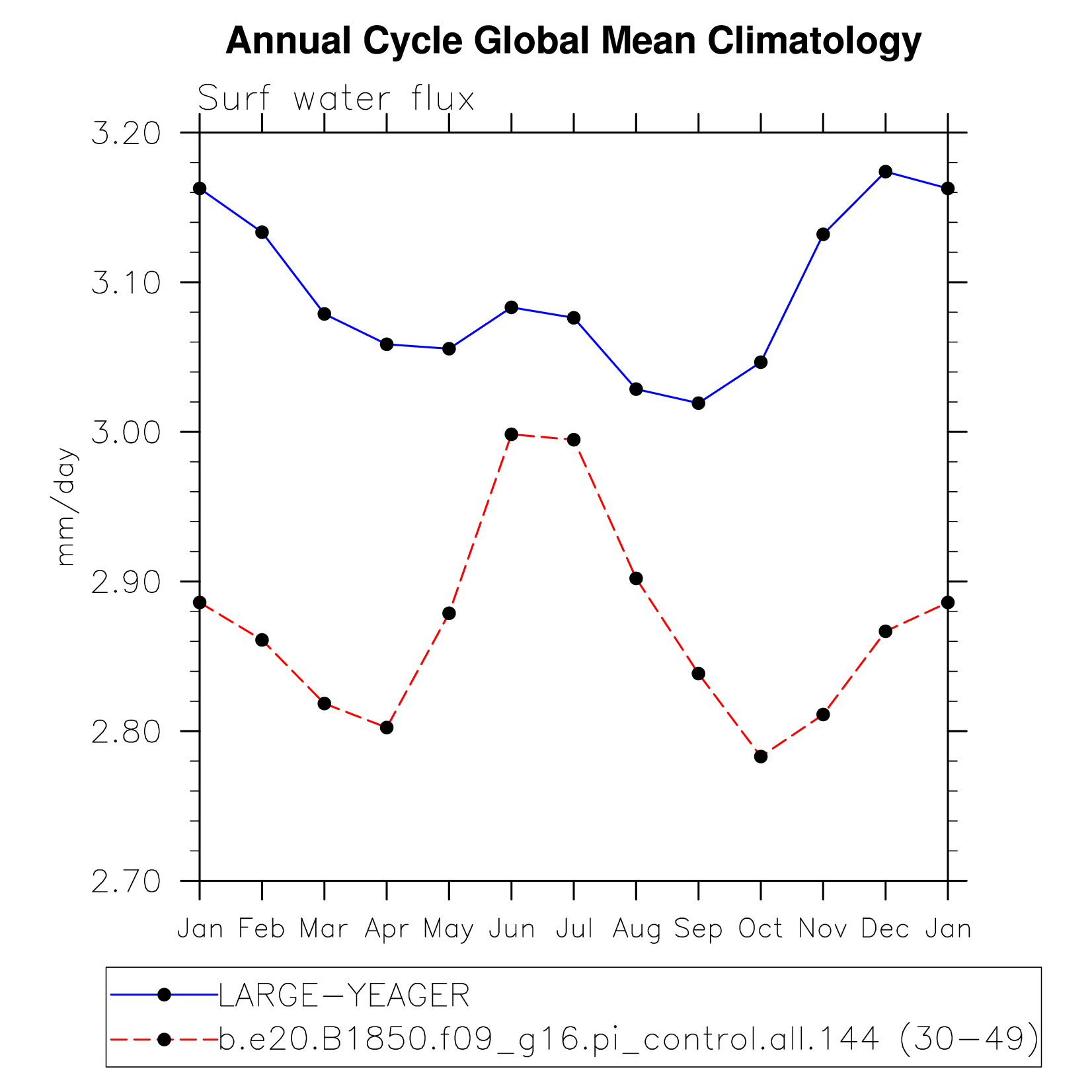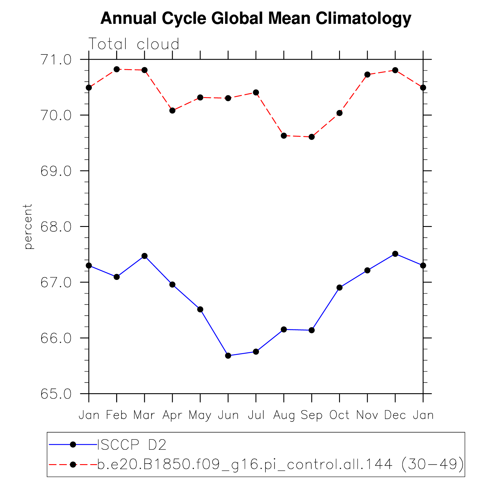 DIAG Set 10 - Annual cycle line plots of global means