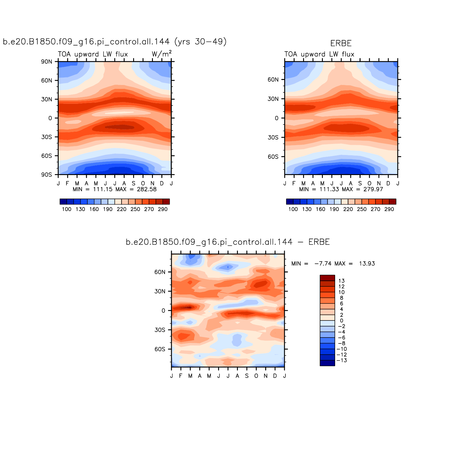 FLUT TOA upward longwave flux plot