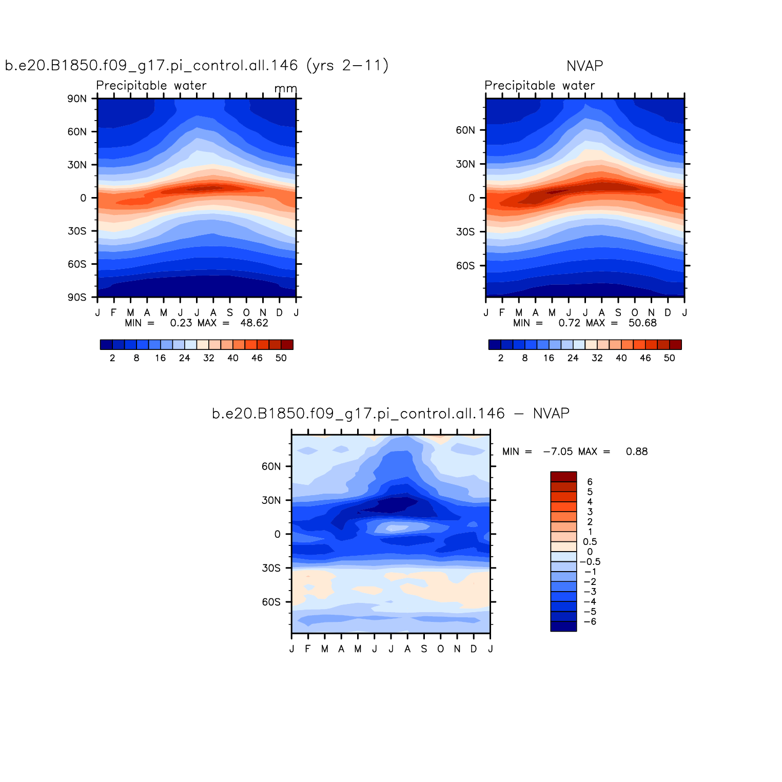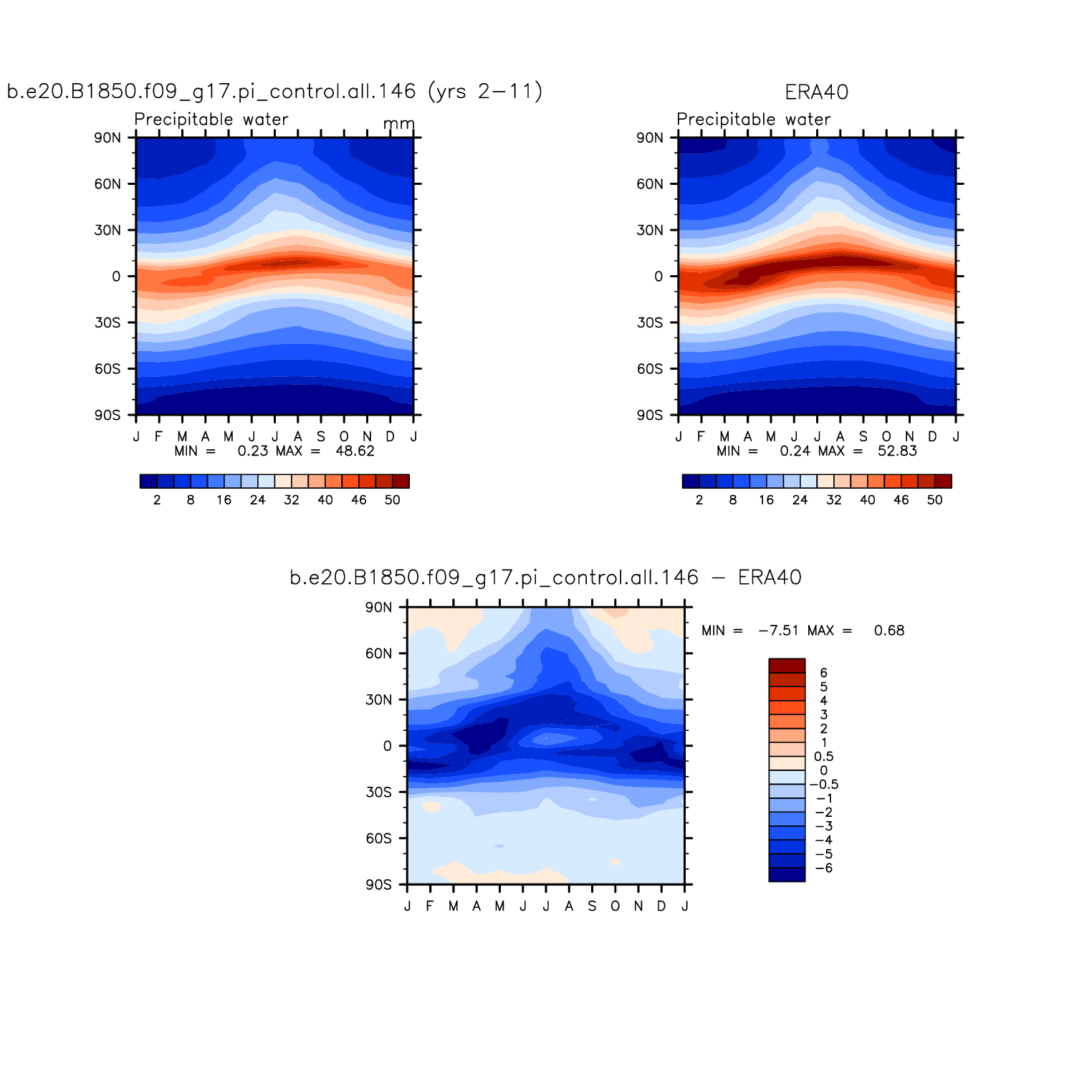 b.e20.B1850.f09_g17.pi_control.all.146 DIAG Set 8 - Annual cycle contour plots of zonal means
