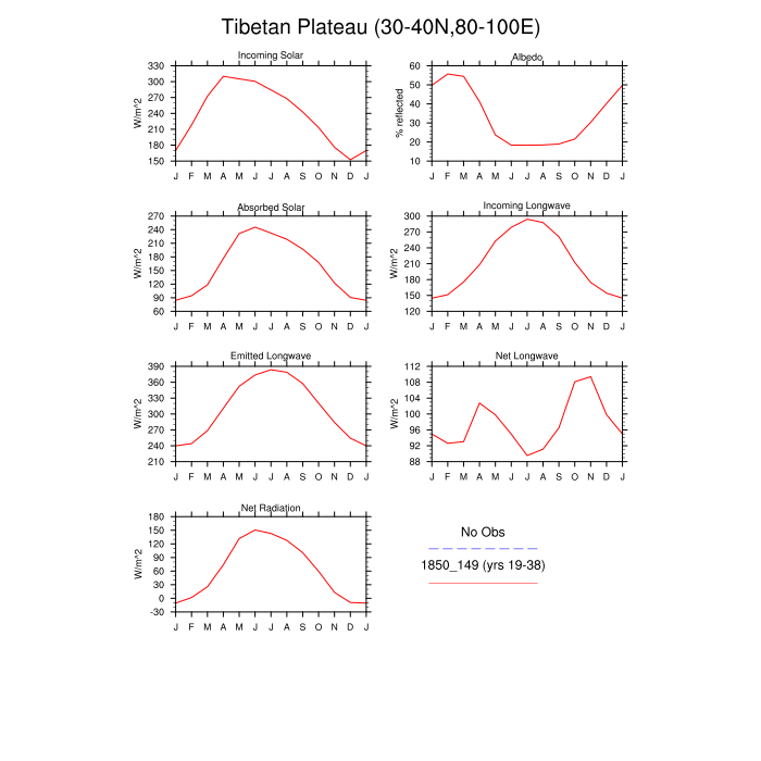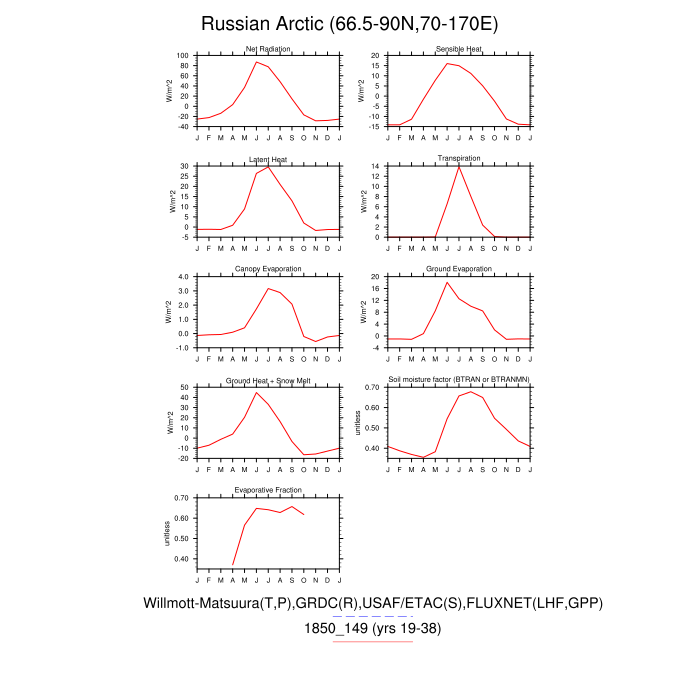 Set 3 Description: Line plots of monthly climatology: regional air temperature, precipitation, runoff, snow depth, radiative fluxes, and turbulent fluxes