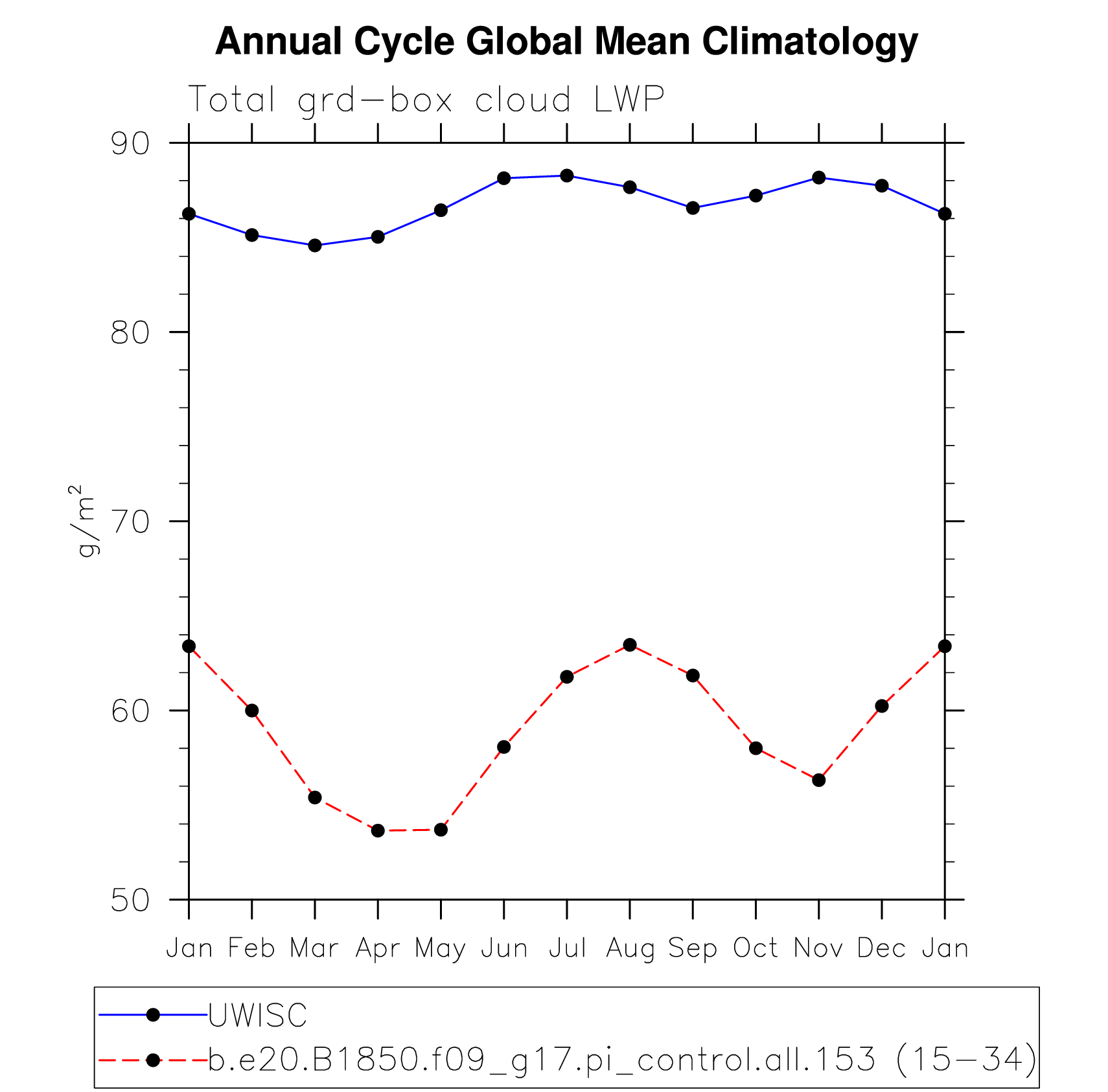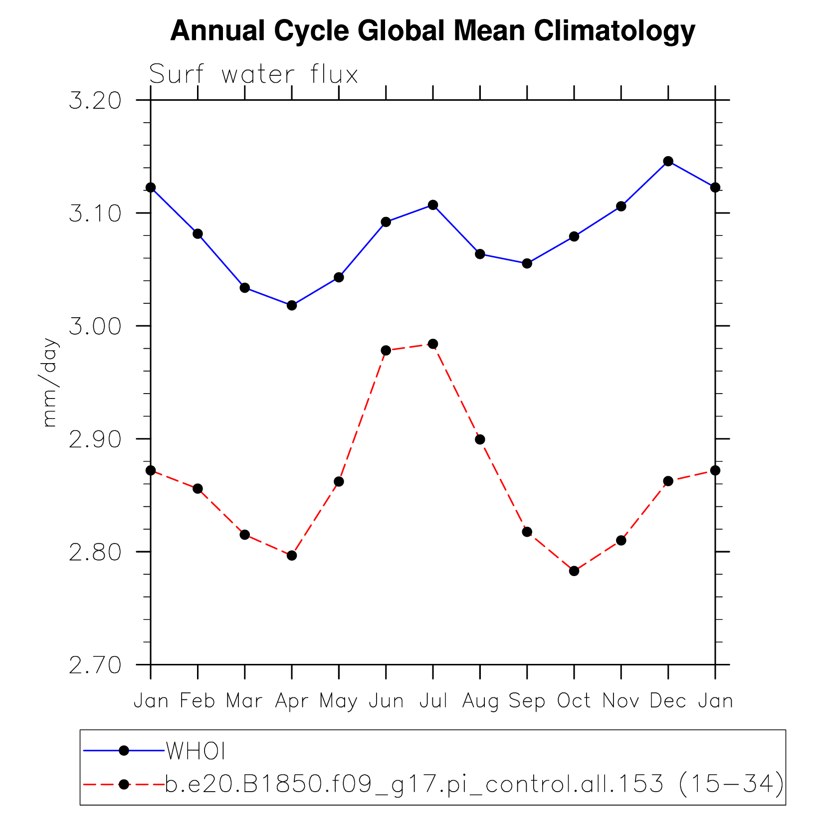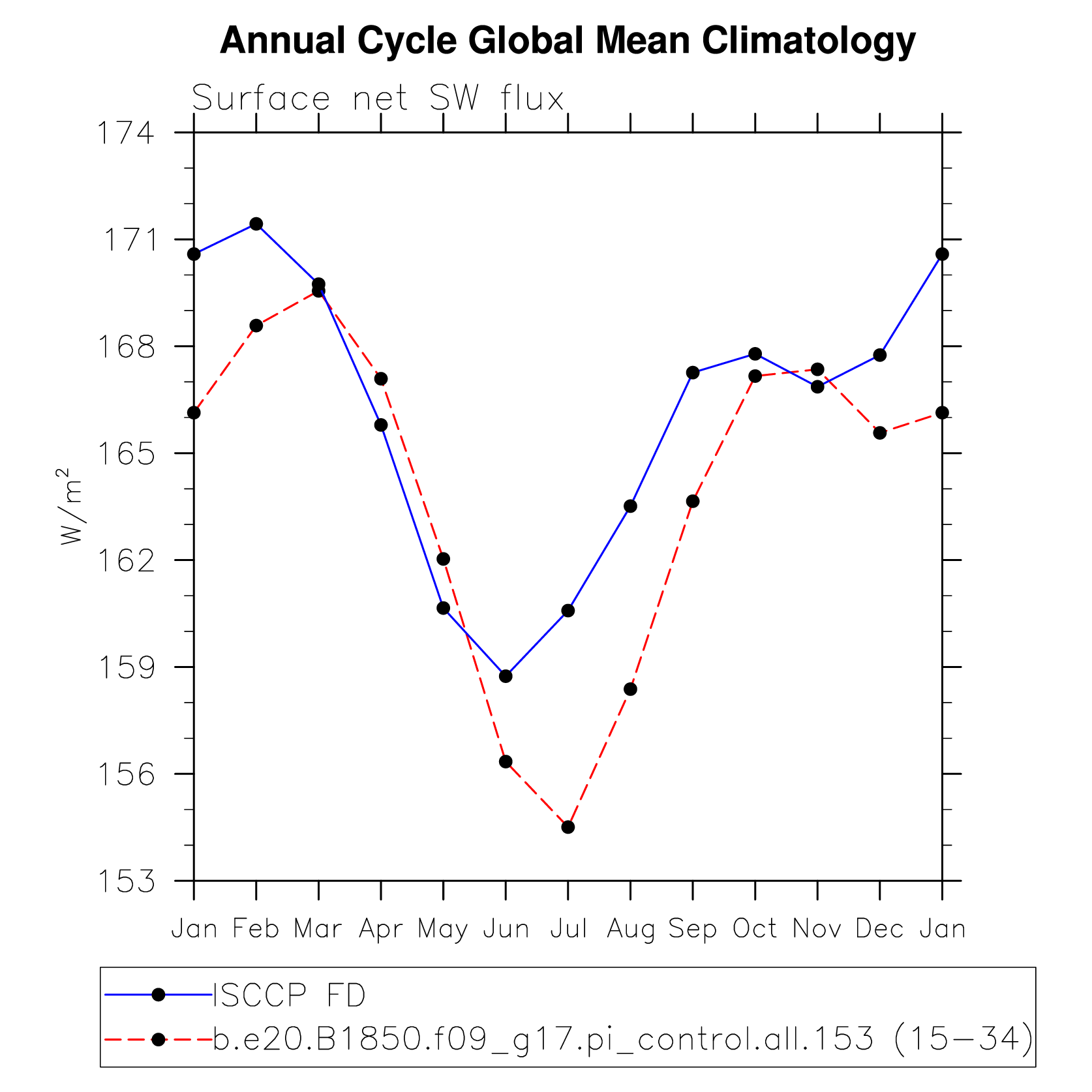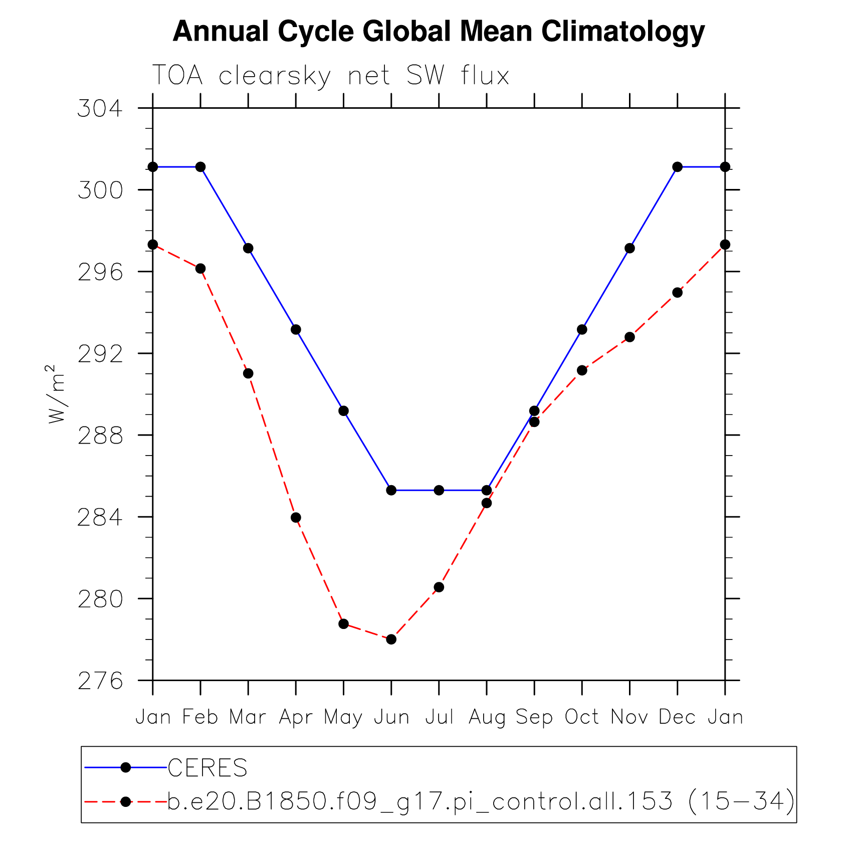 DIAG Set 10 - Annual cycle line plots of global means