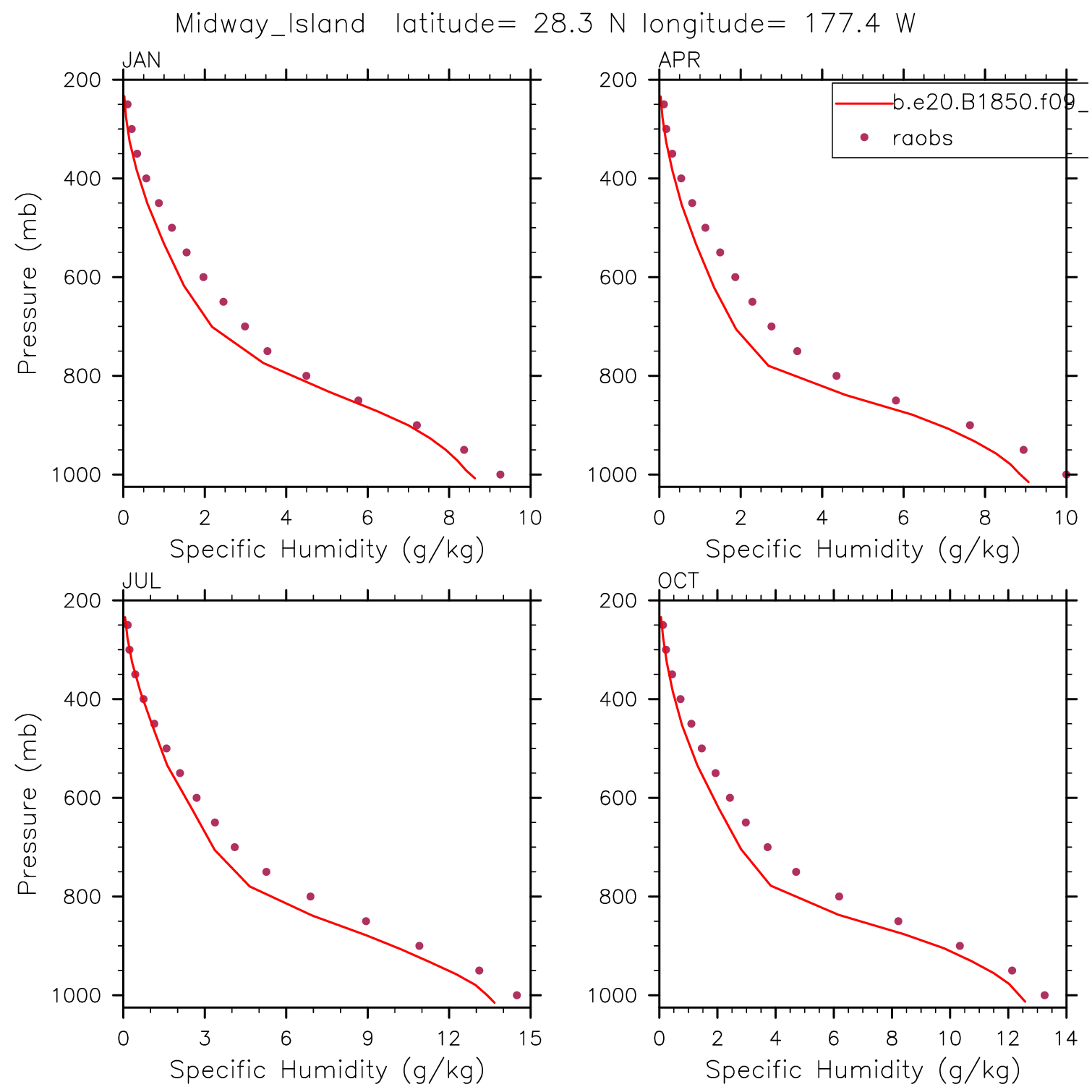 b.e20.B1850.f09_g17.pi_control.all.153 Set 12 - Vertical Profiles at 17 selected raobs stations