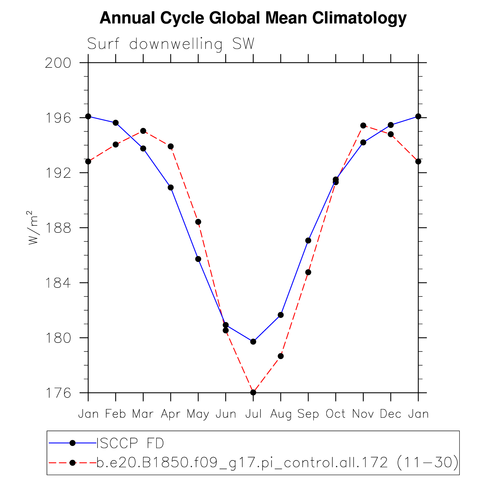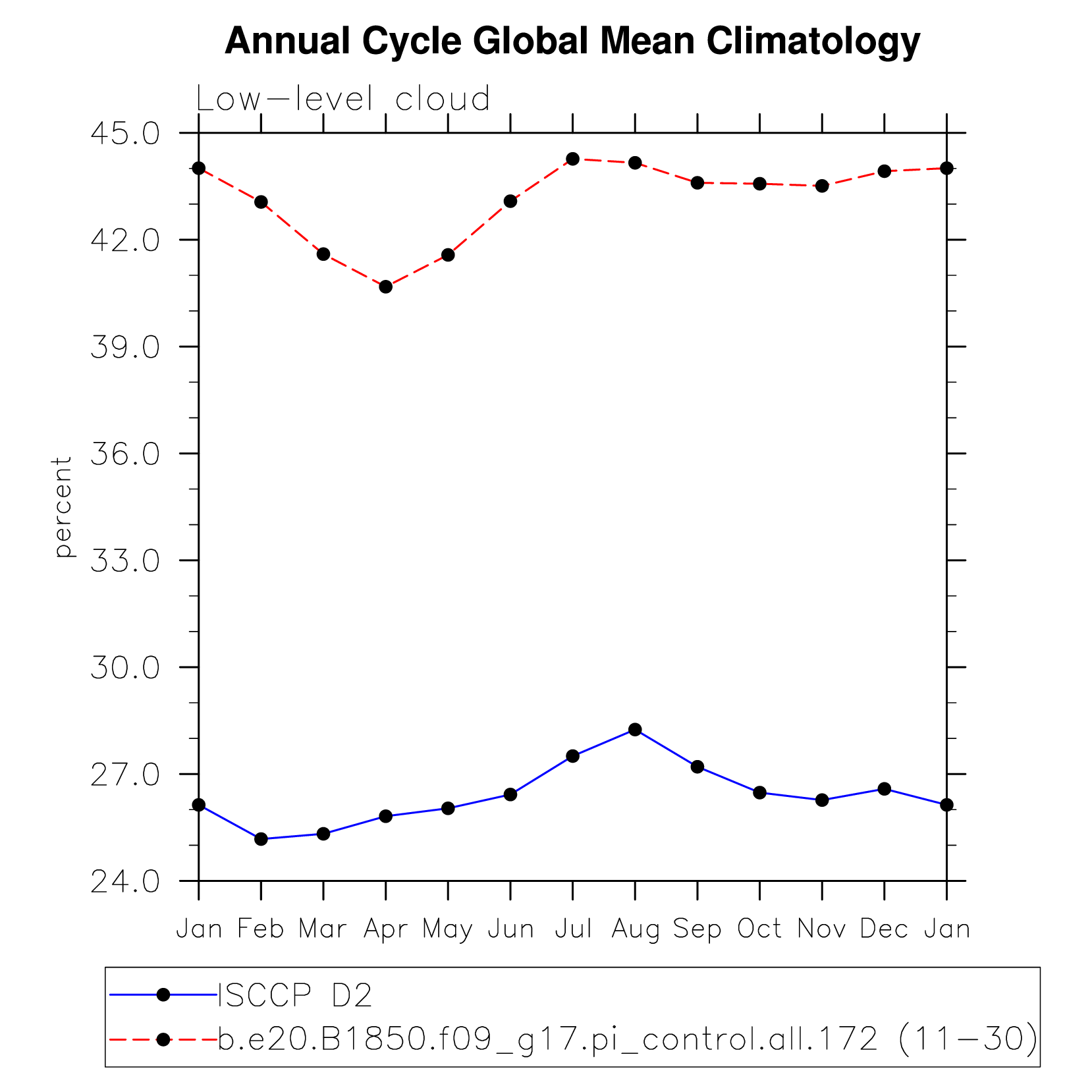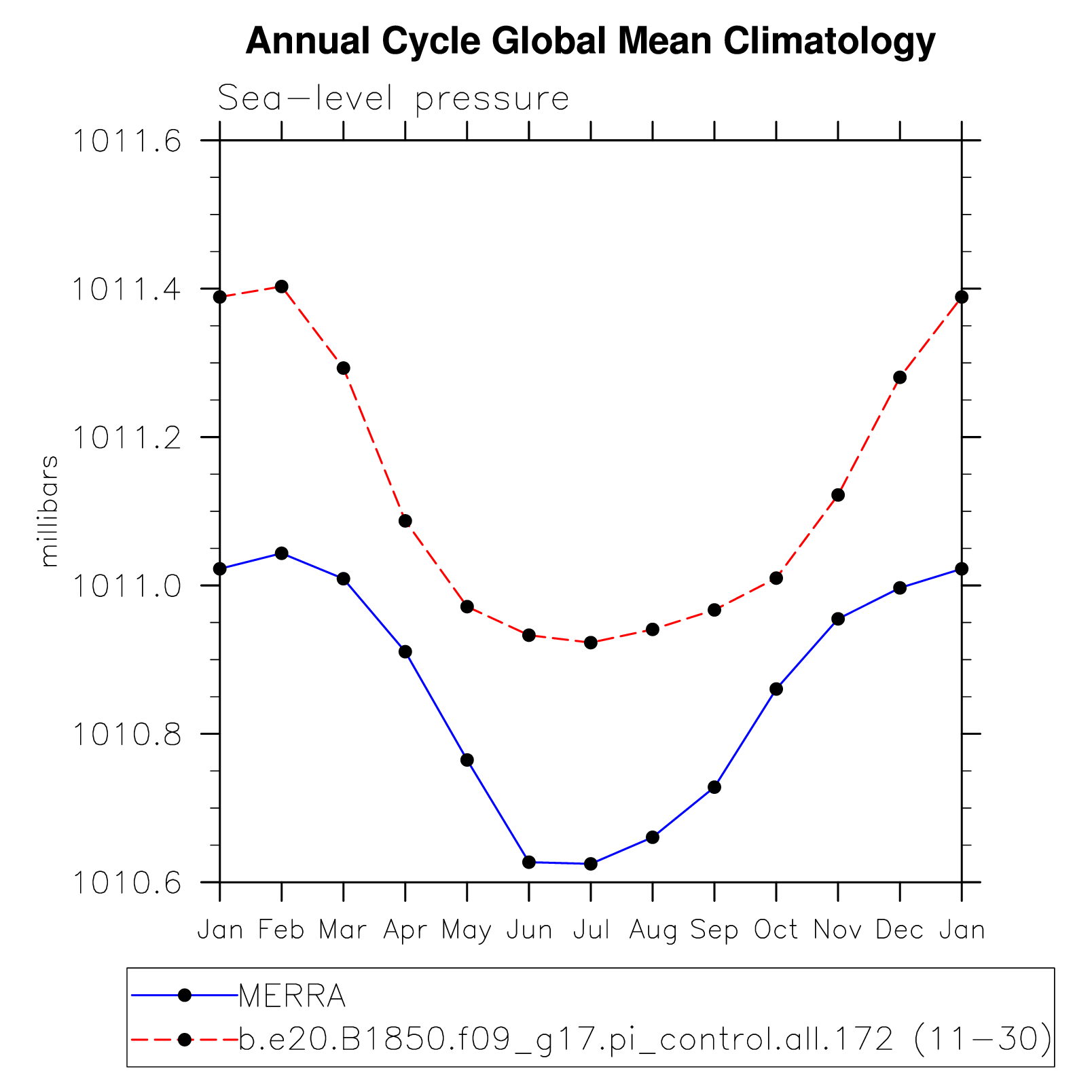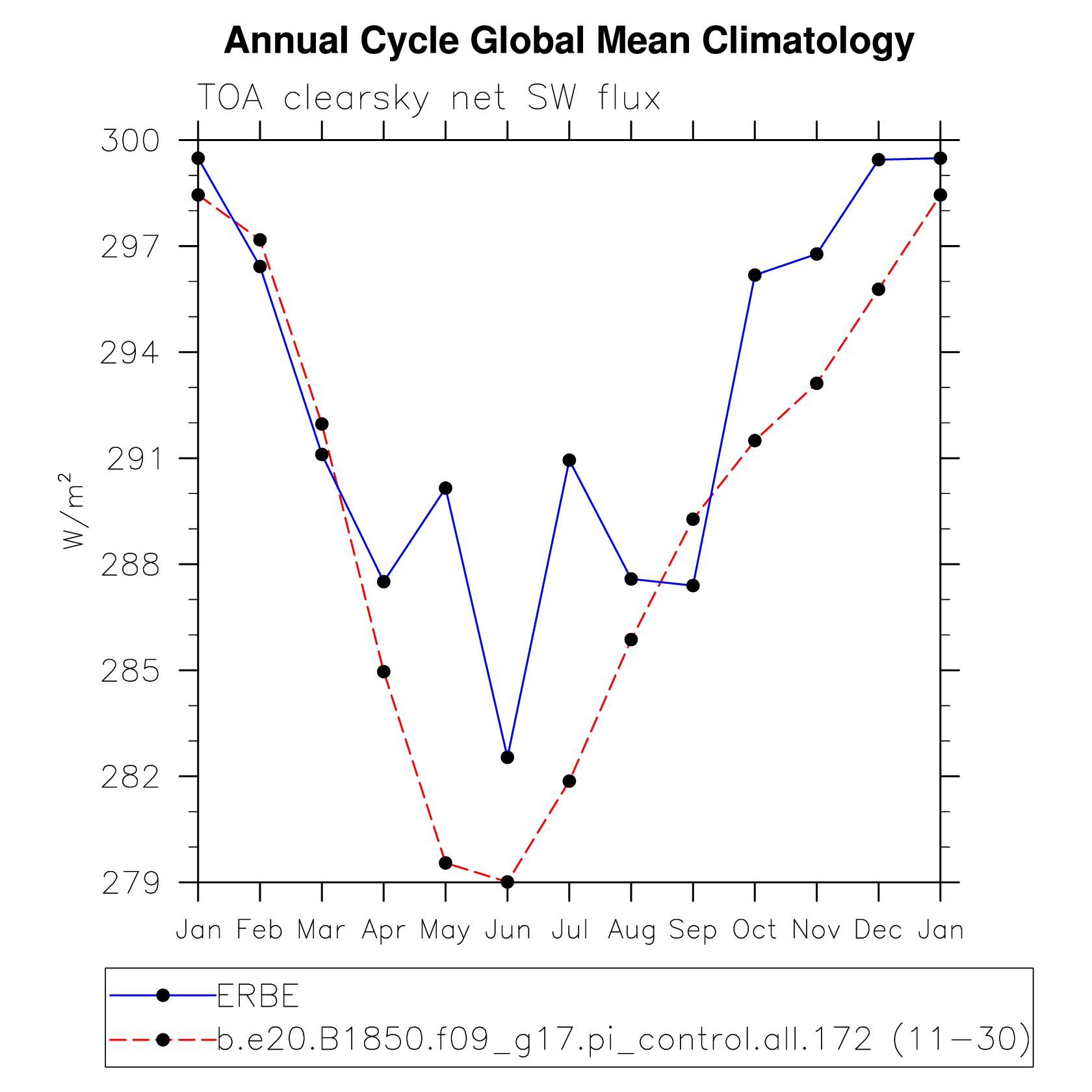 DIAG Set 10 - Annual cycle line plots of global means