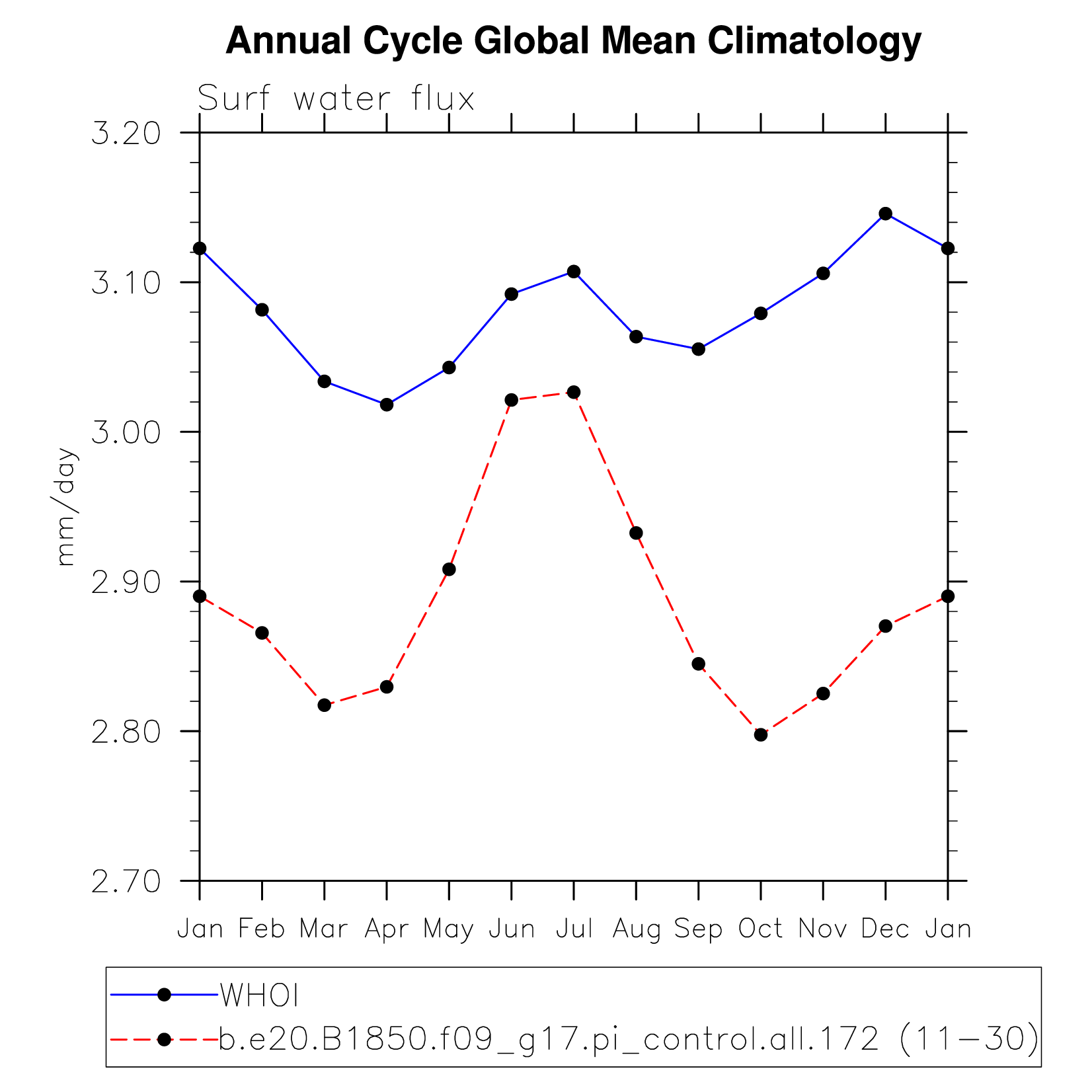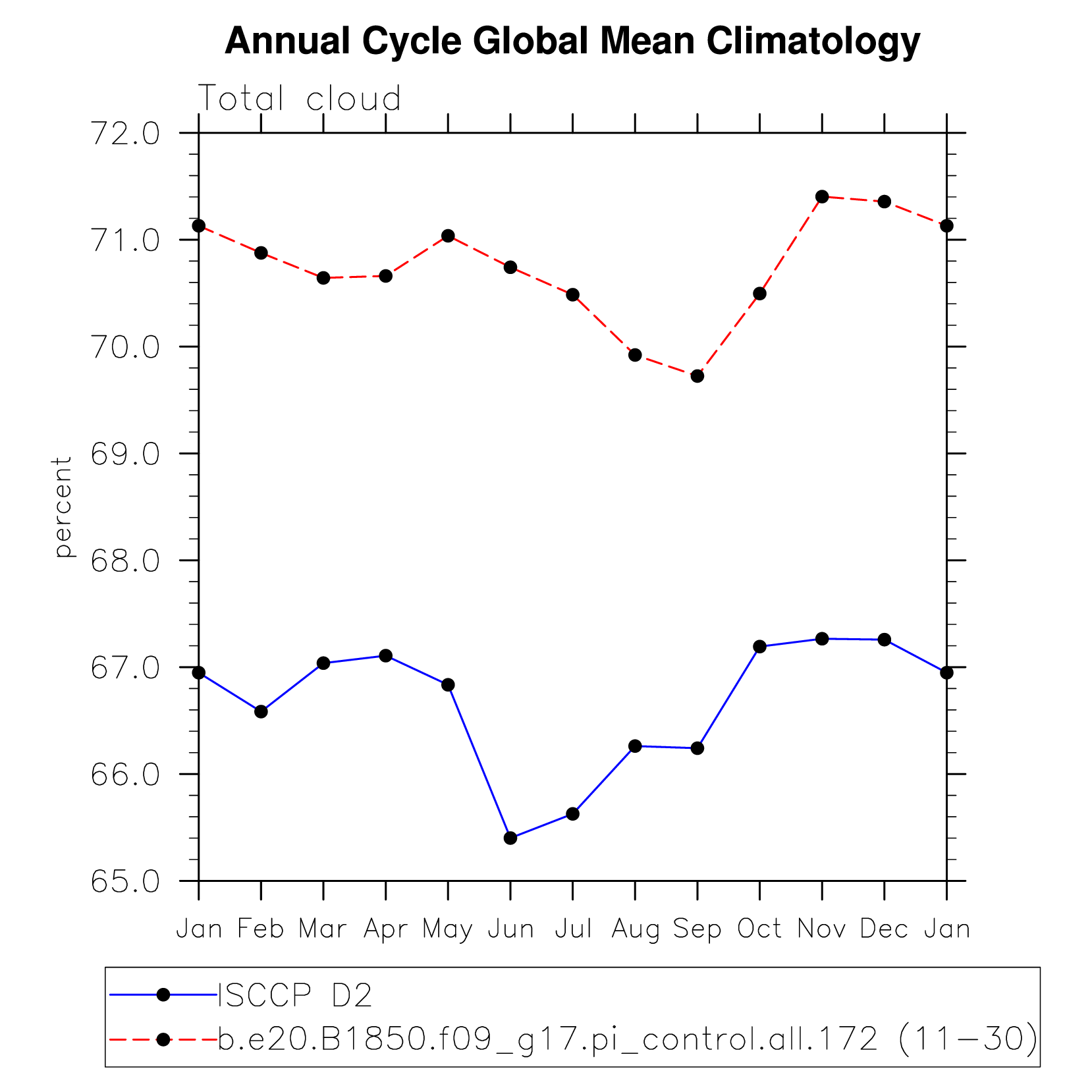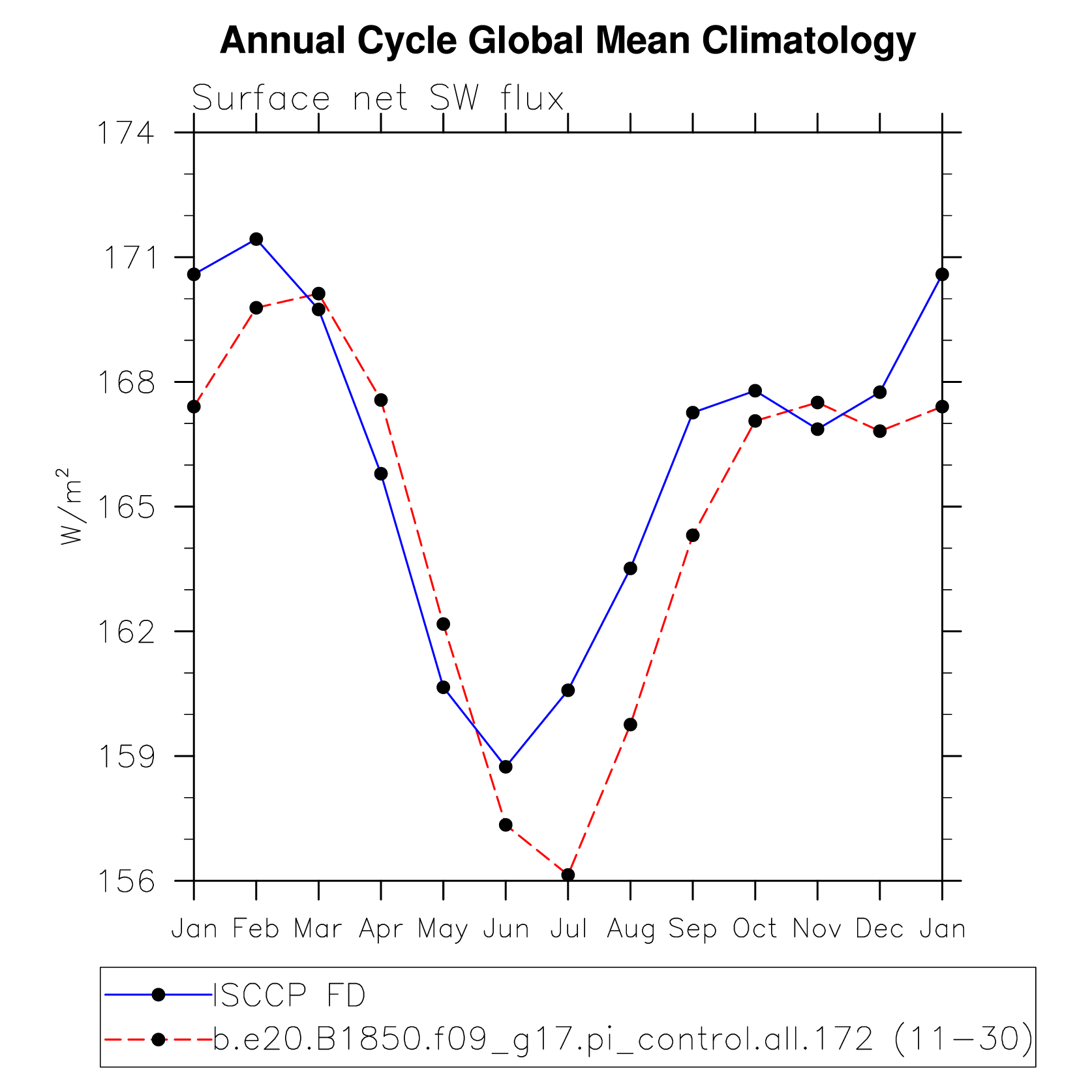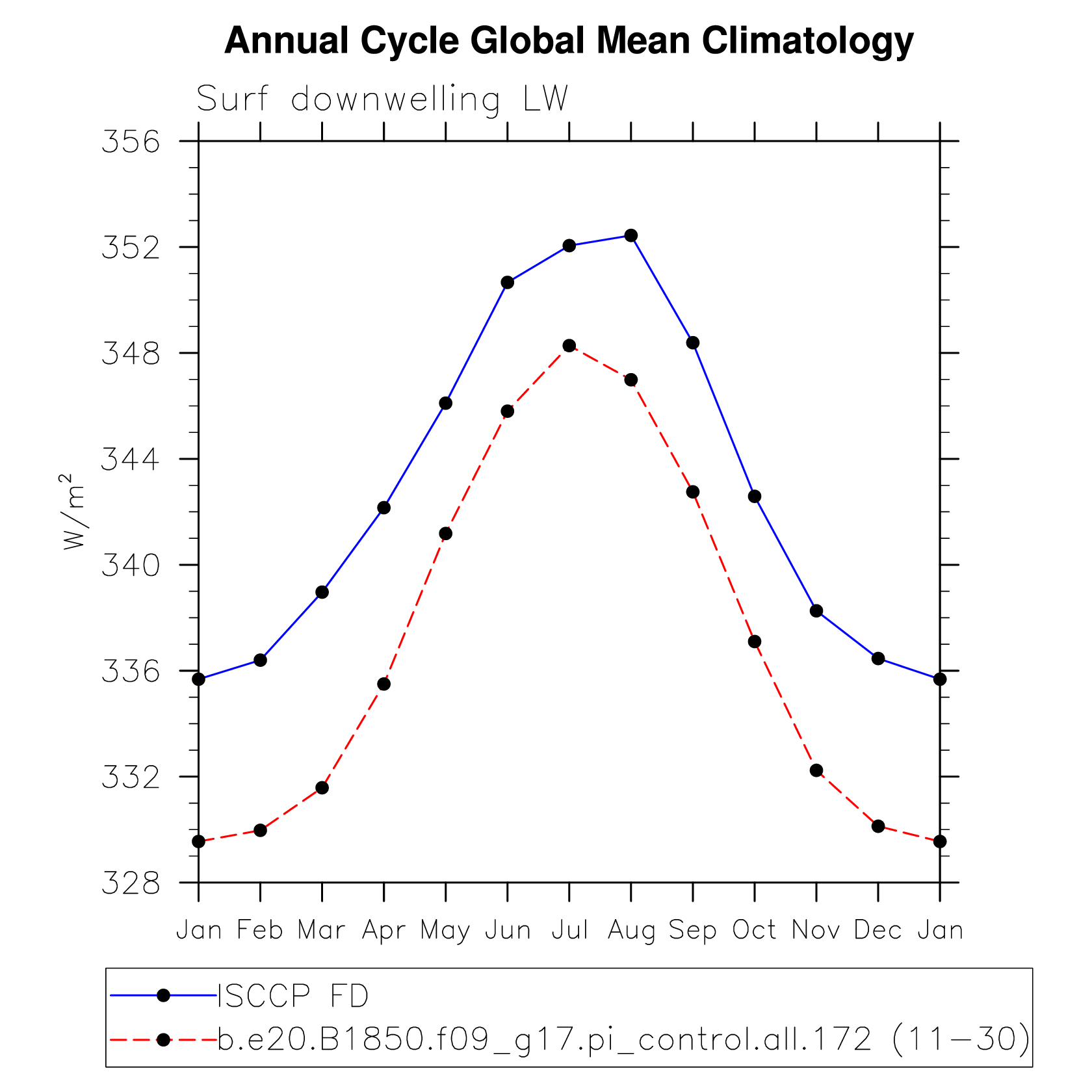 DIAG Set 10 - Annual cycle line plots of global means