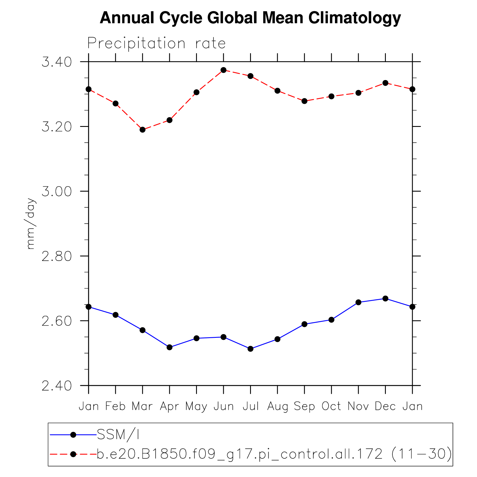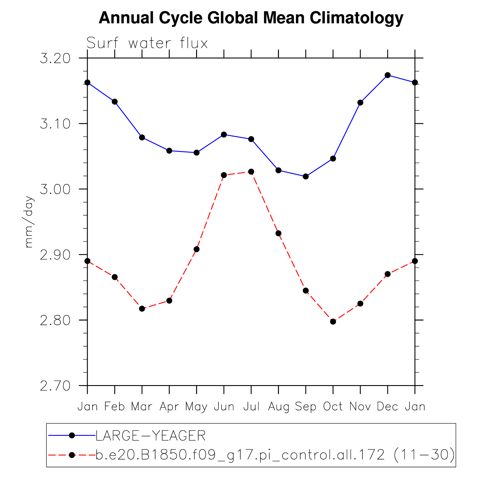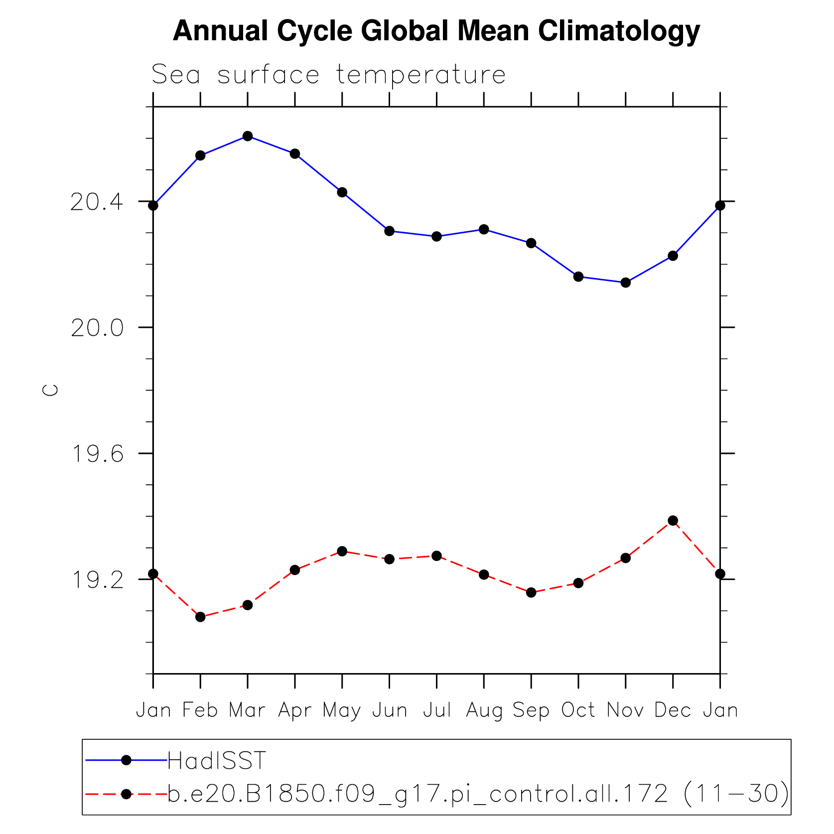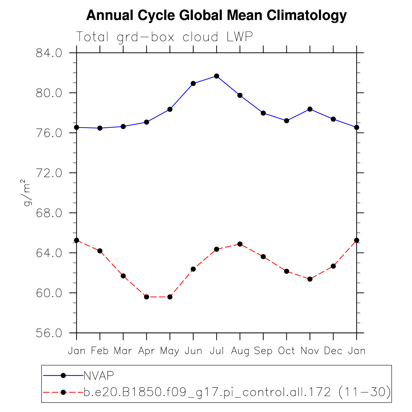 DIAG Set 10 - Annual cycle line plots of global means