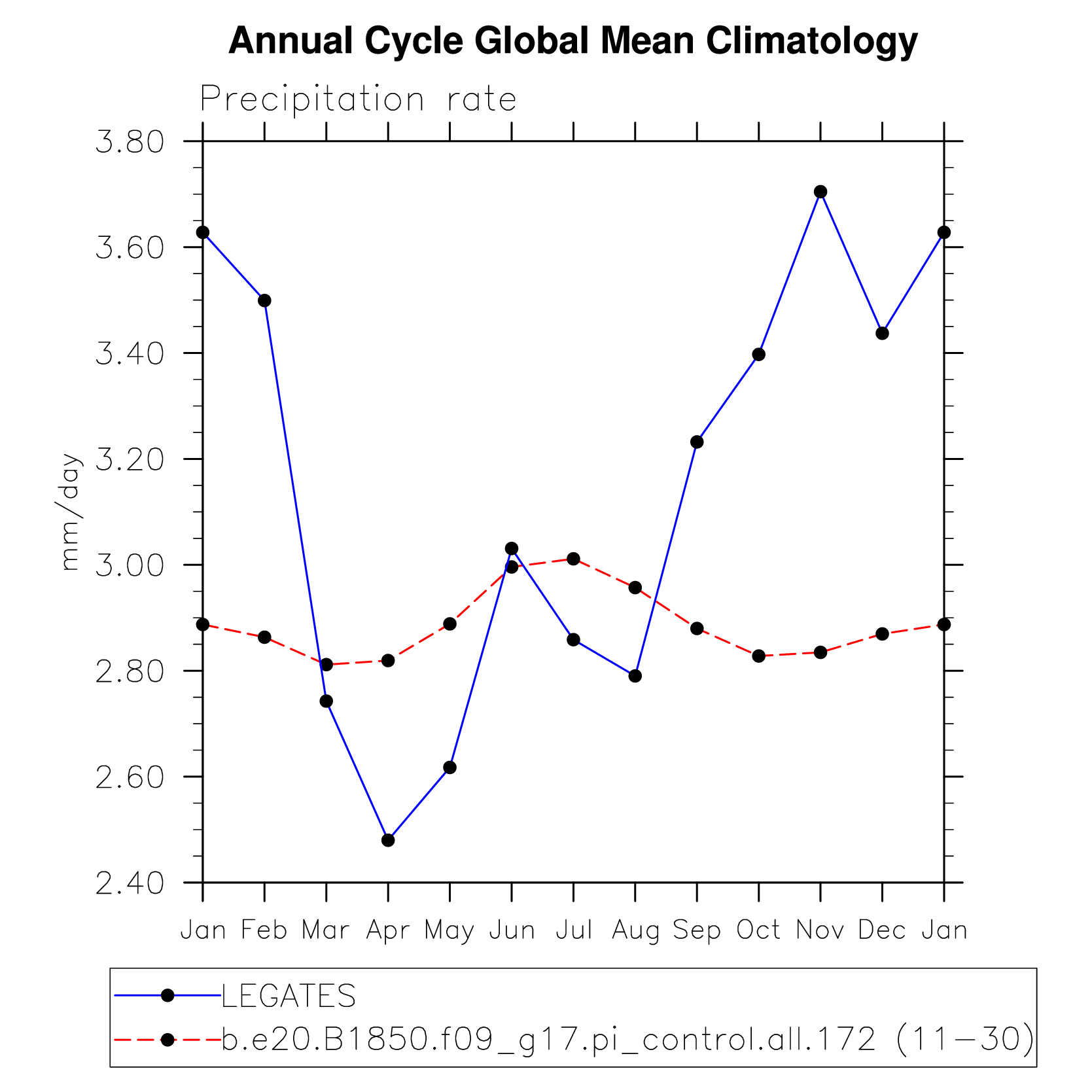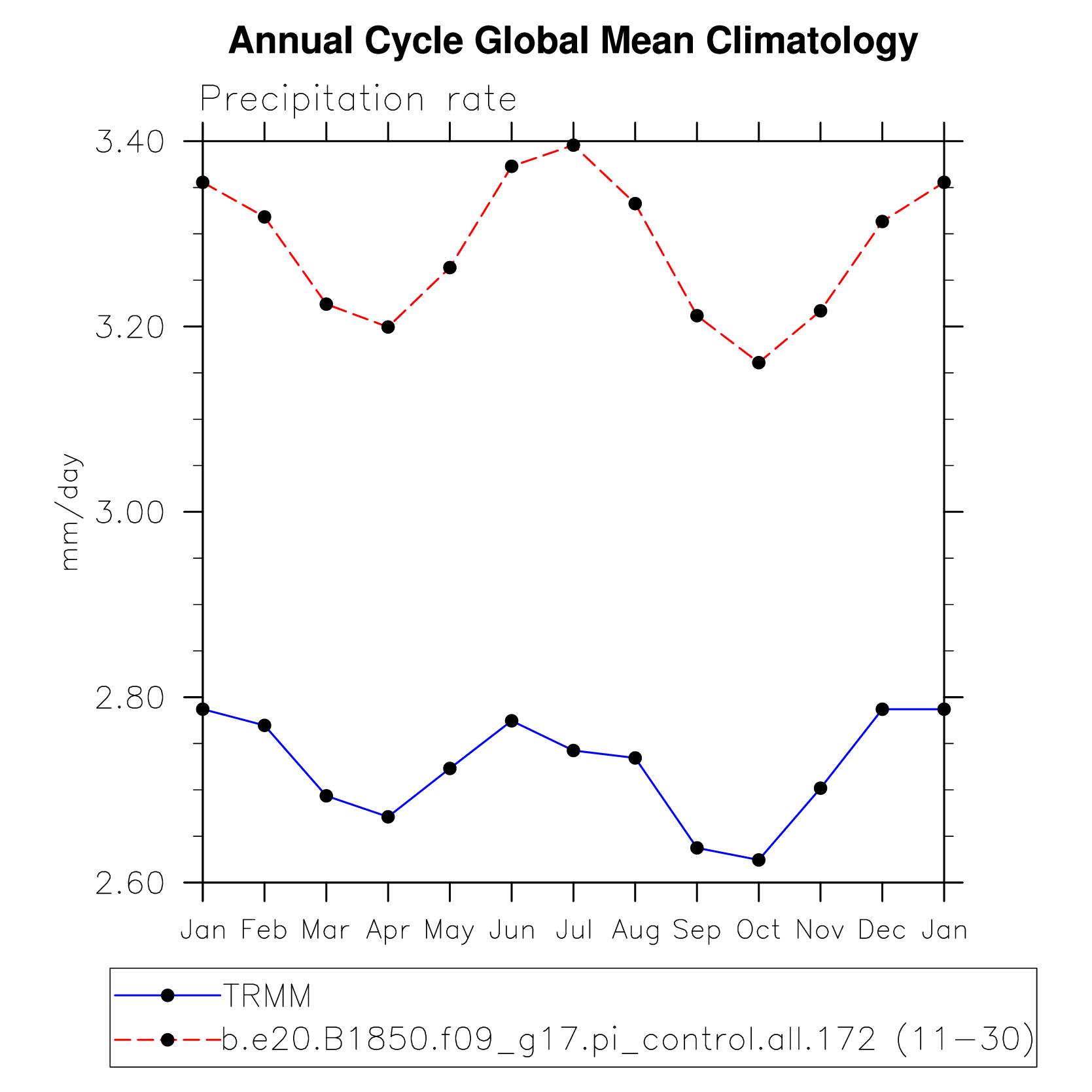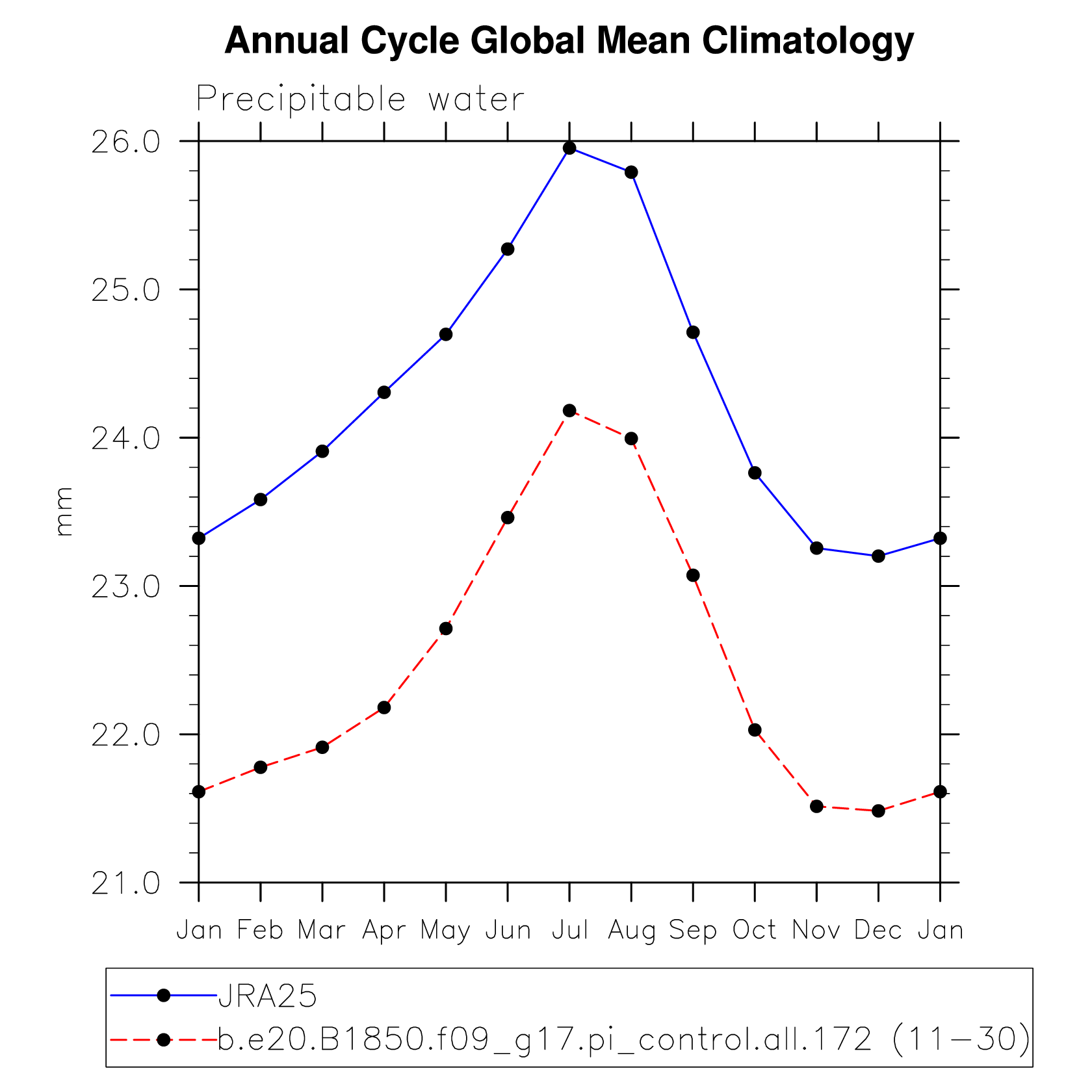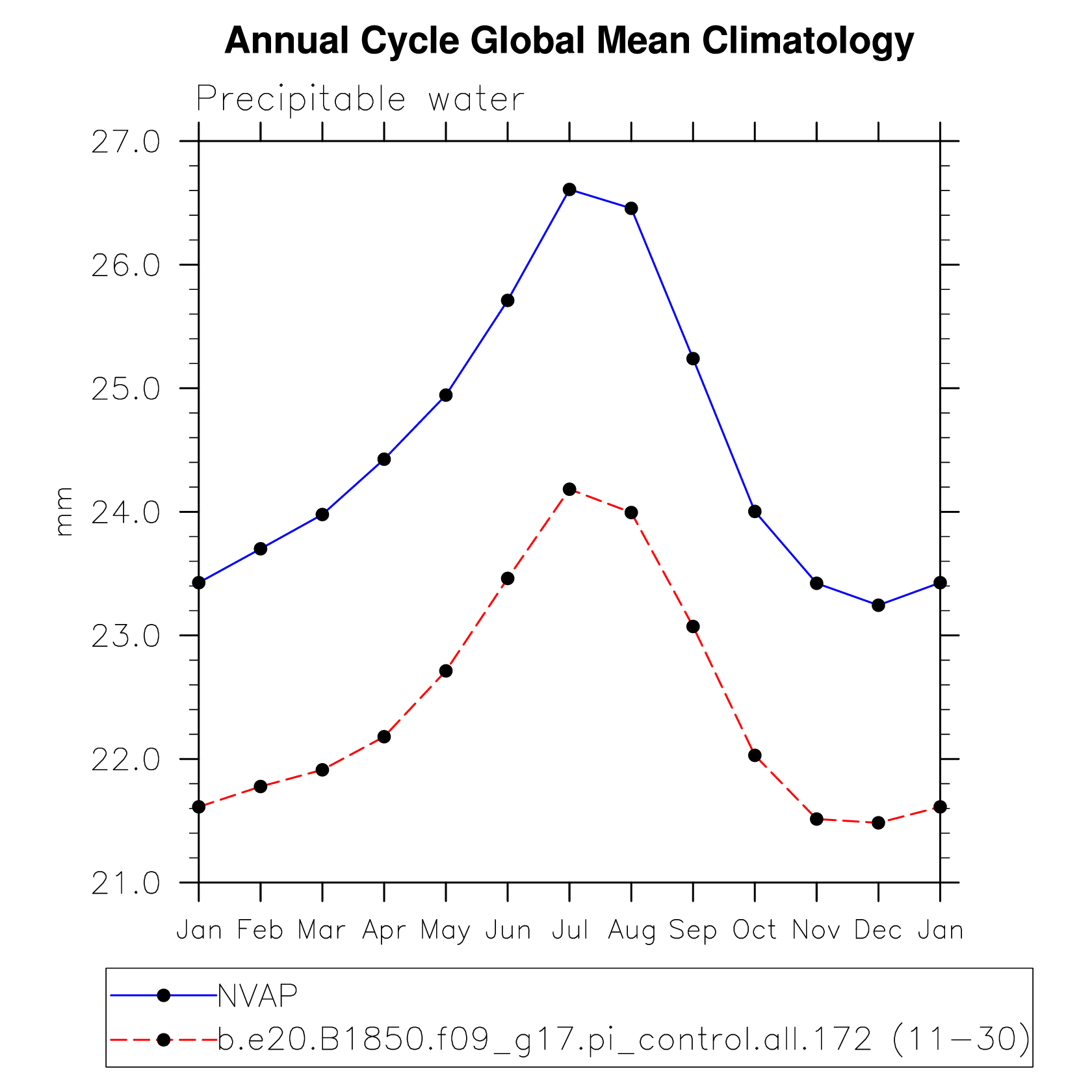 DIAG Set 10 - Annual cycle line plots of global means