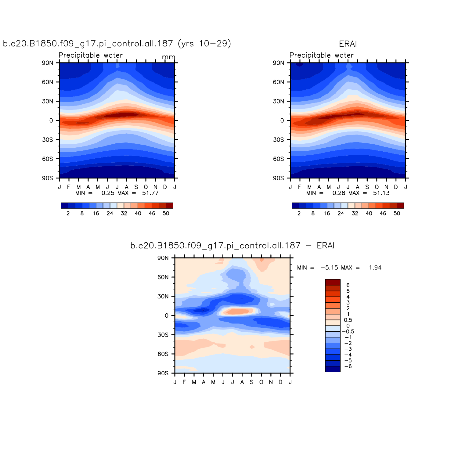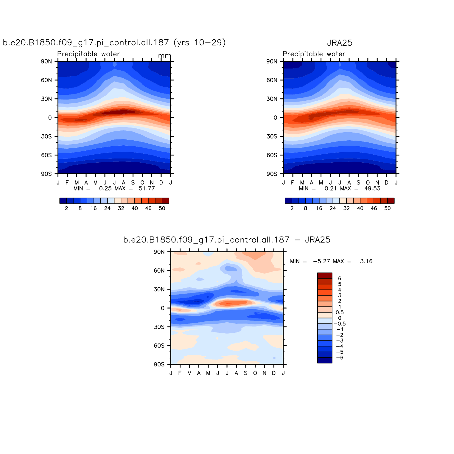 b.e20.B1850.f09_g17.pi_control.all.187 DIAG Set 8 - Annual cycle contour plots of zonal means