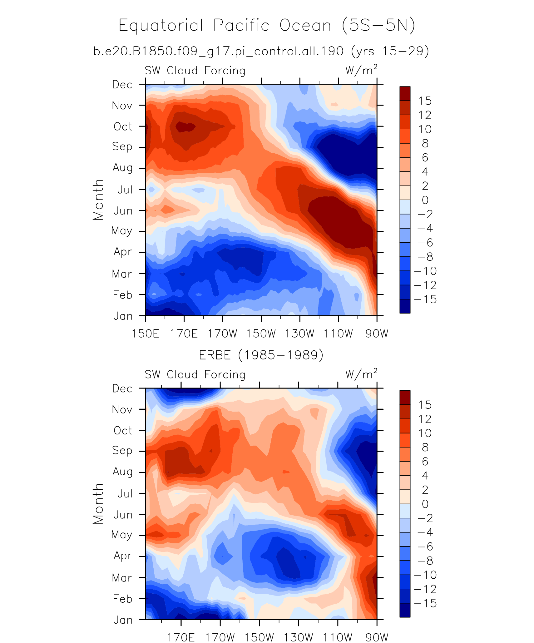 SW/LW Cloud Forcing ERBE 1985-1989 plot