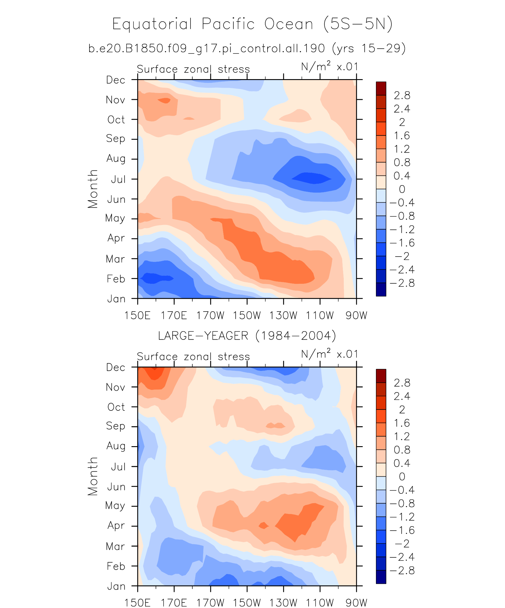 Surface Zonal Stress LARGE-YEAGER 1984-2004 plot
