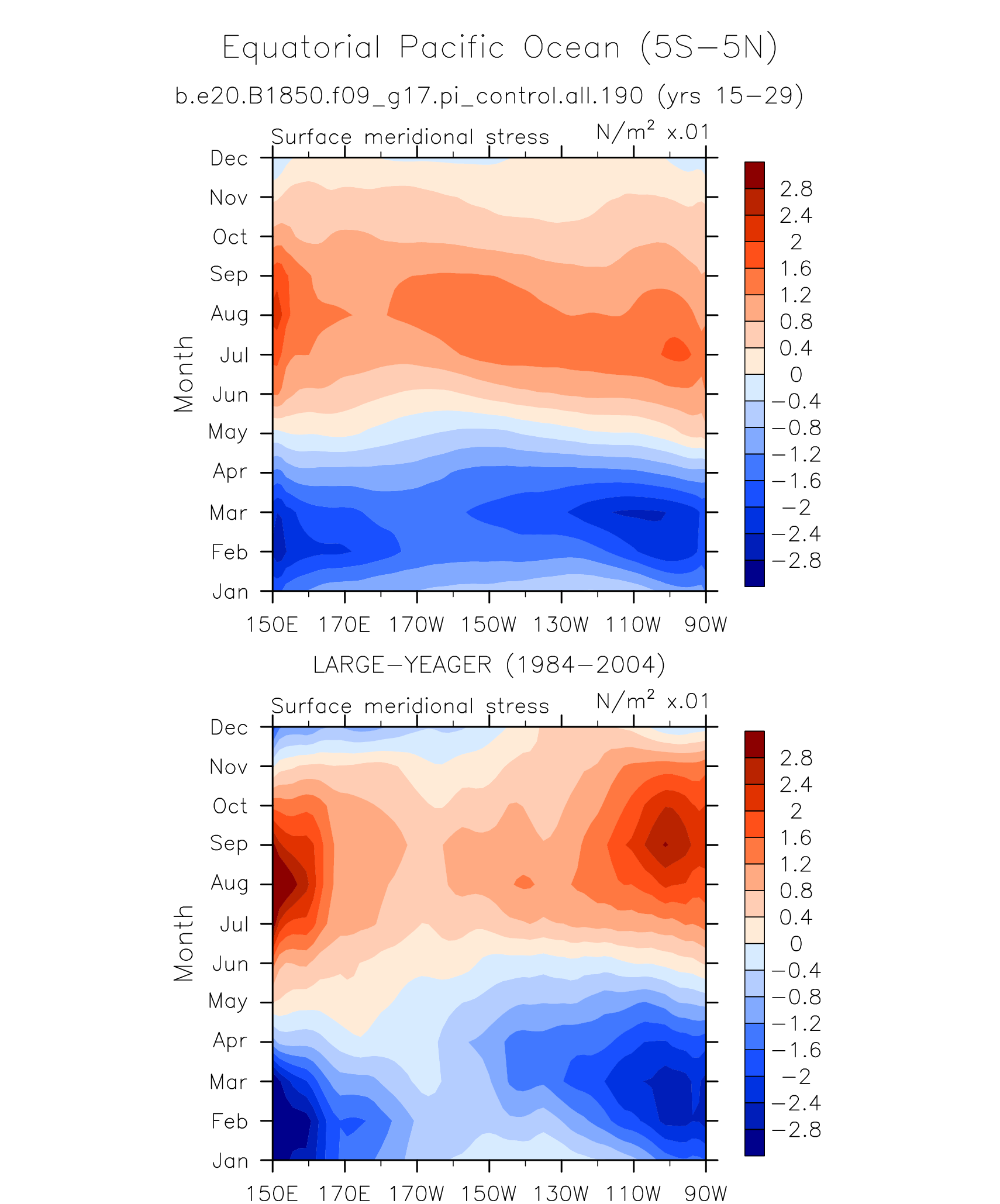 Surface Meridional Stress LARGE-YEAGER 1984-2004 plot