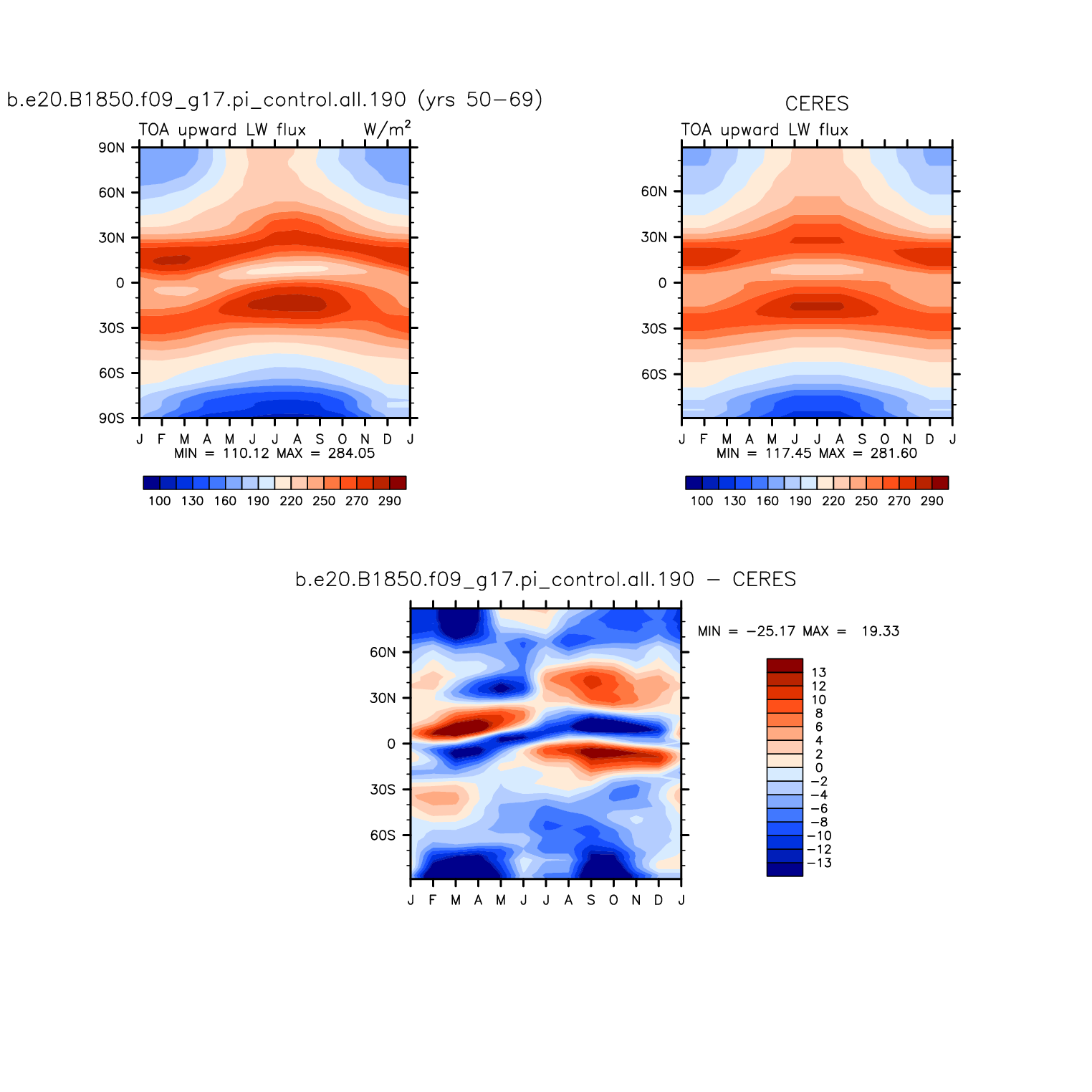 FLUT TOA upward longwave flux plot