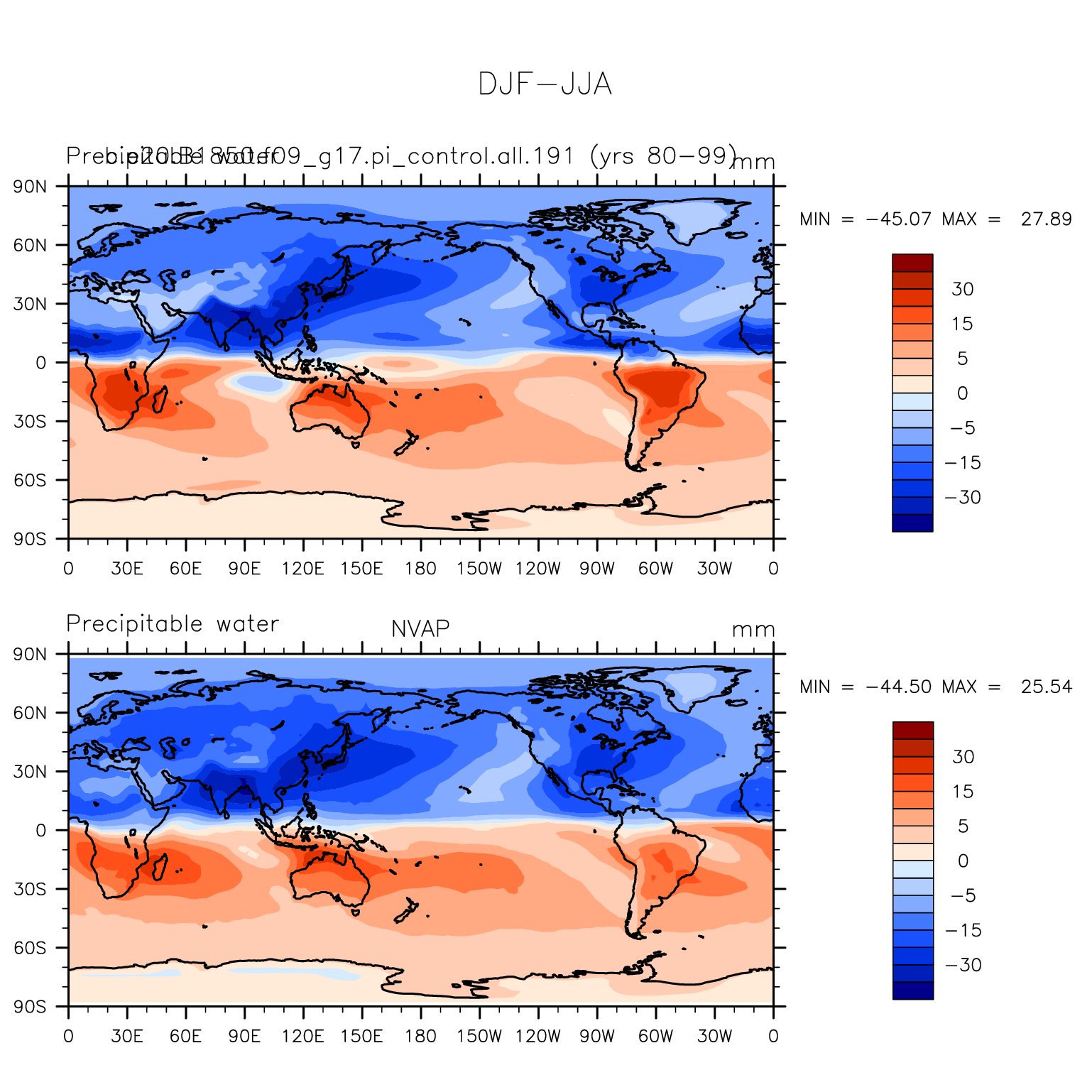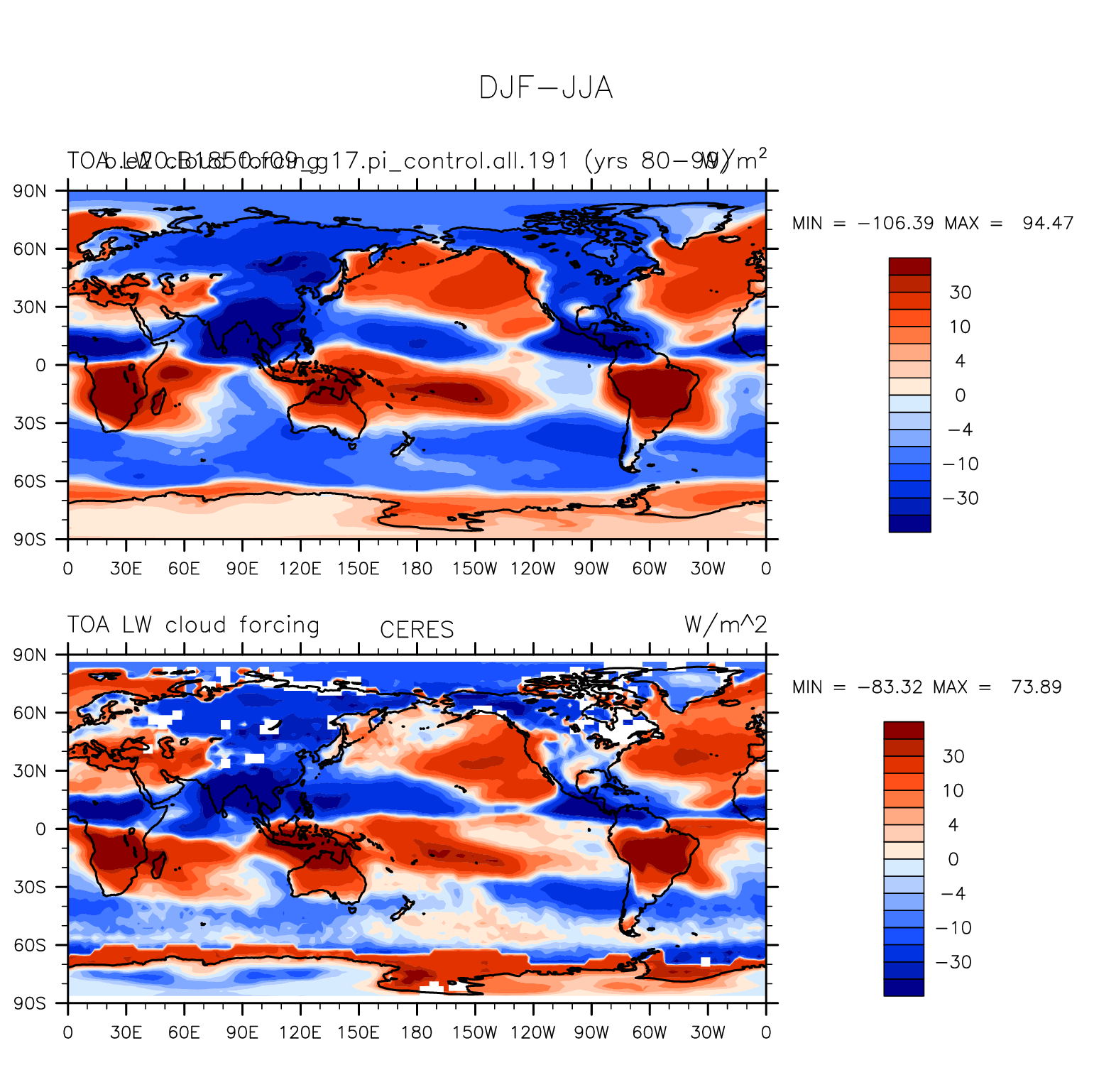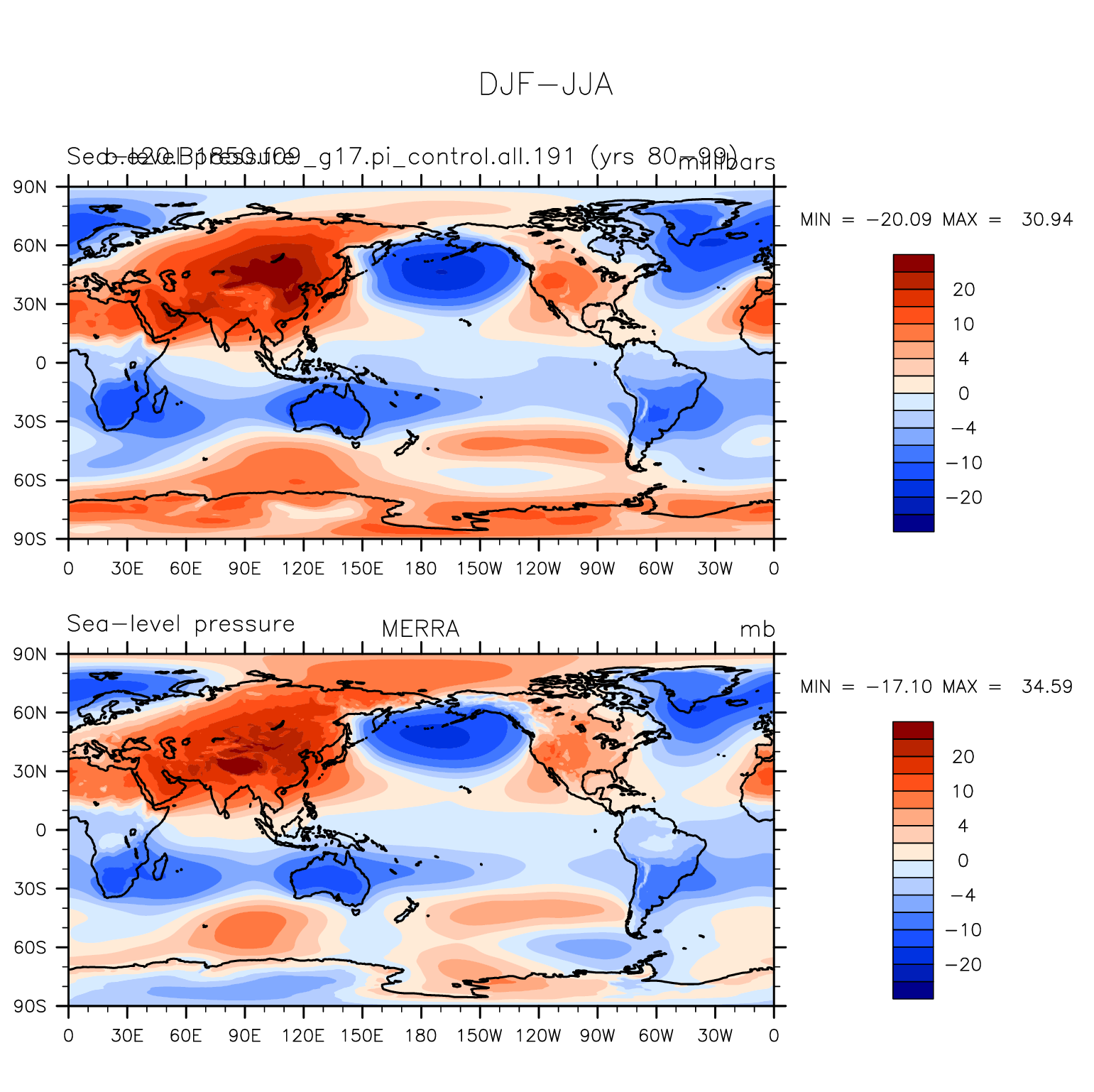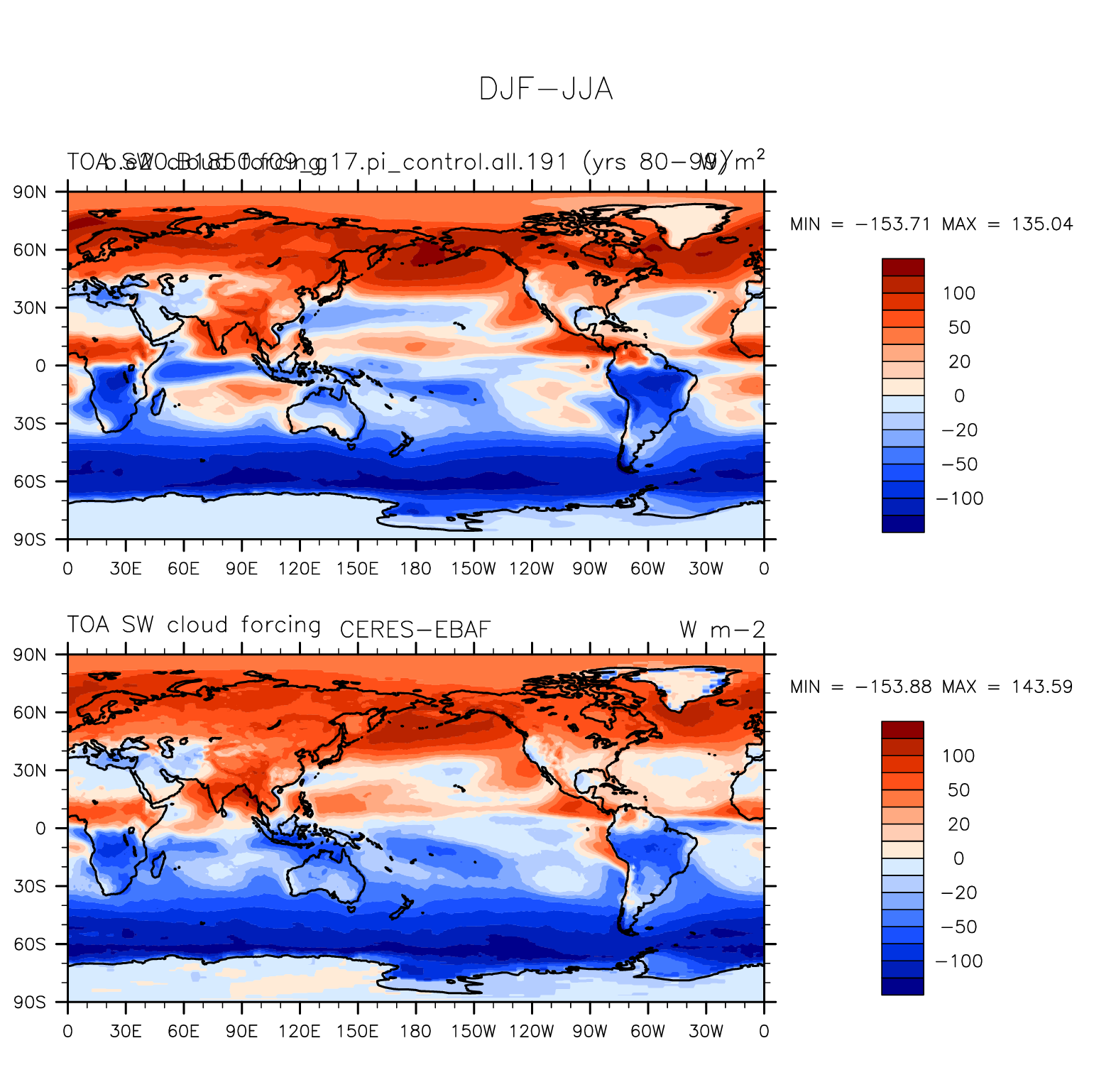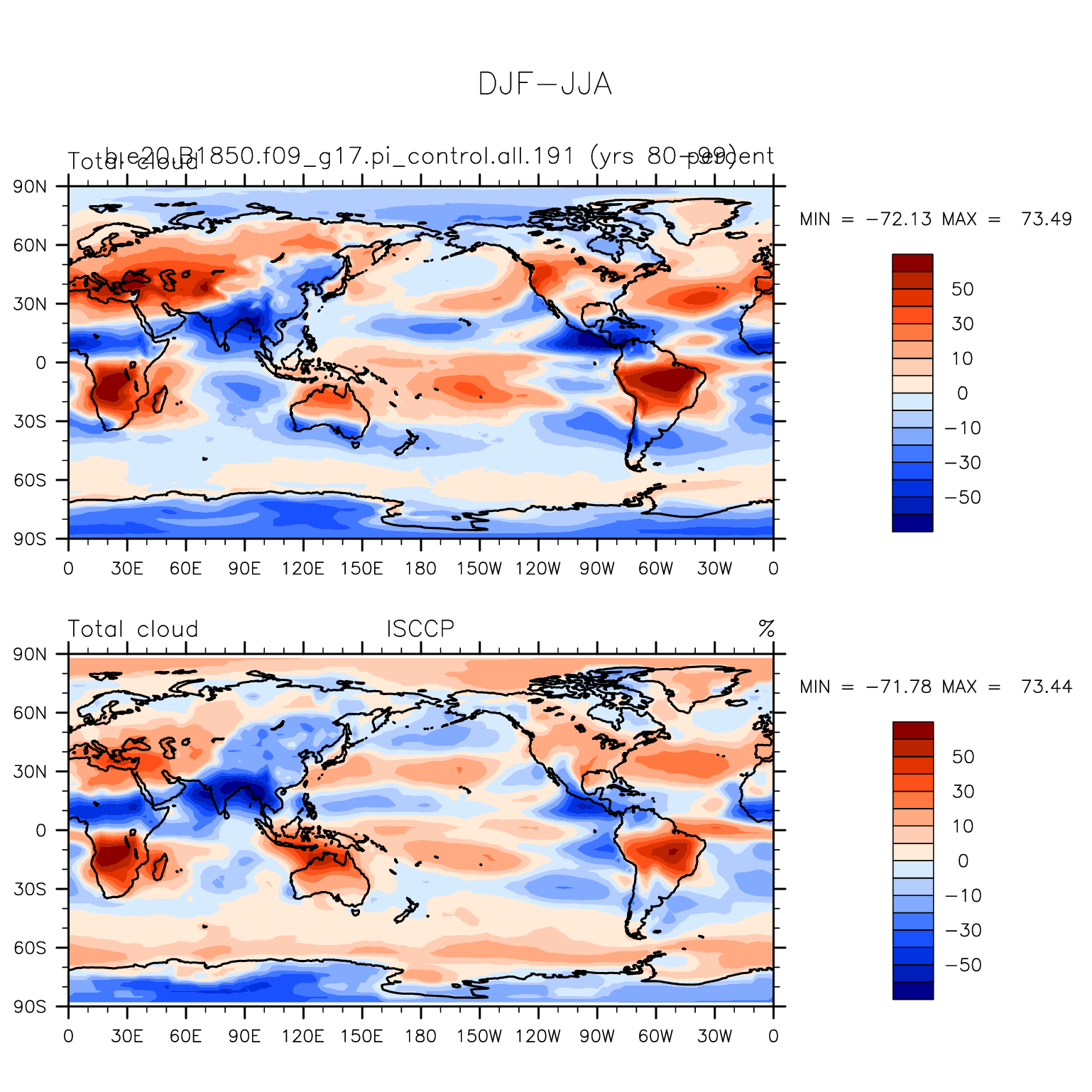 DIAG Set 9 - Horizontal contour plots of DJF-JJA differences