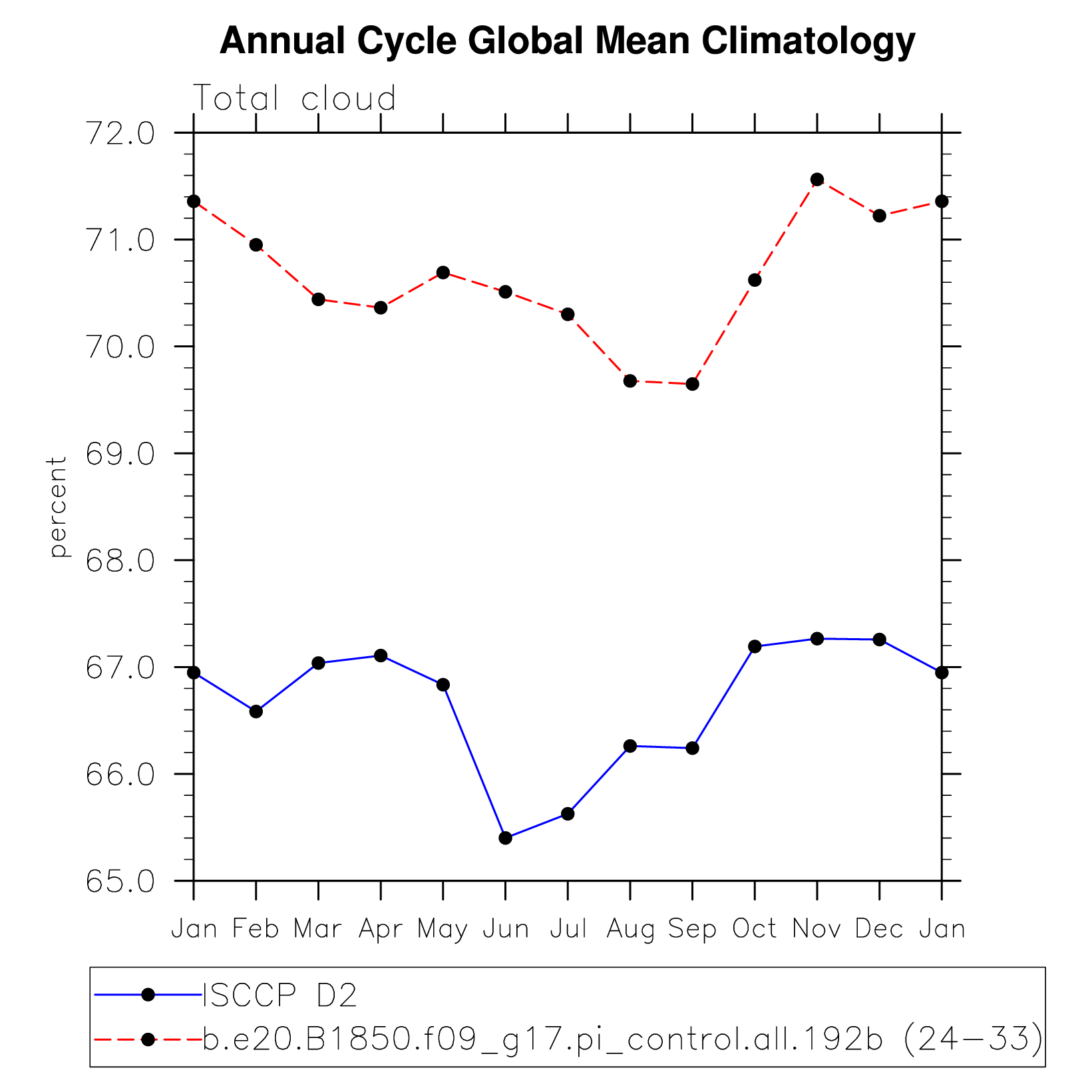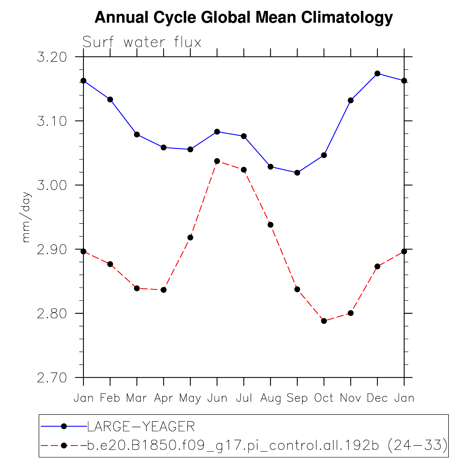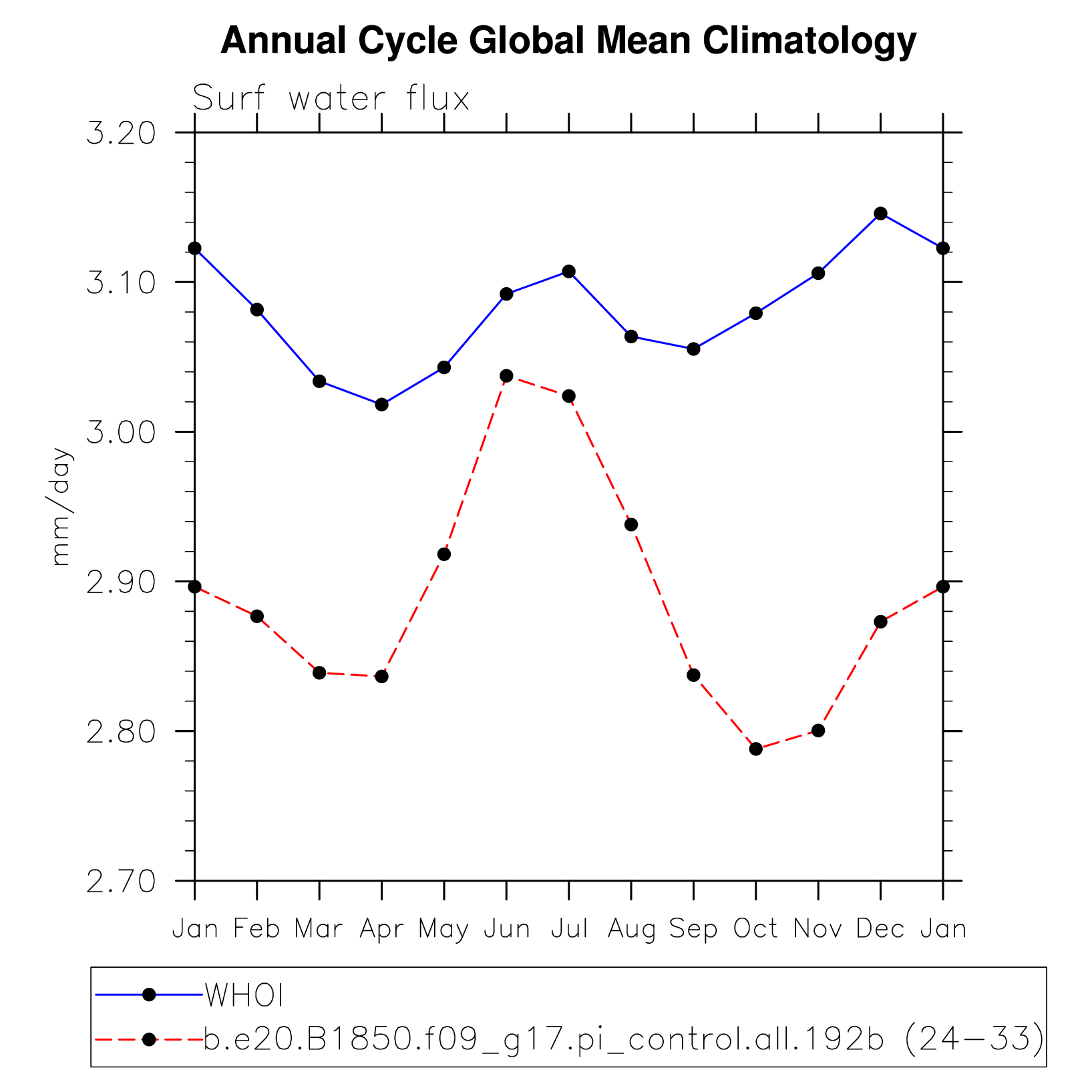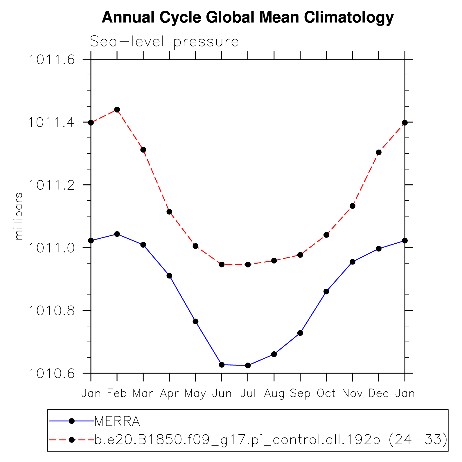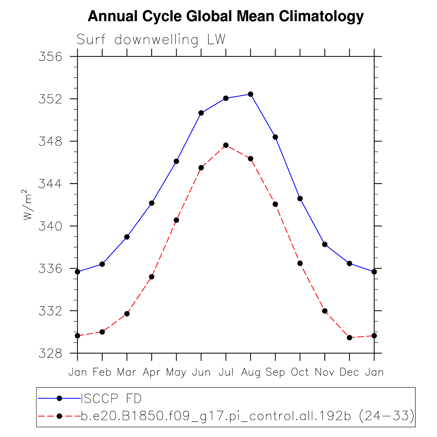 DIAG Set 10 - Annual cycle line plots of global means