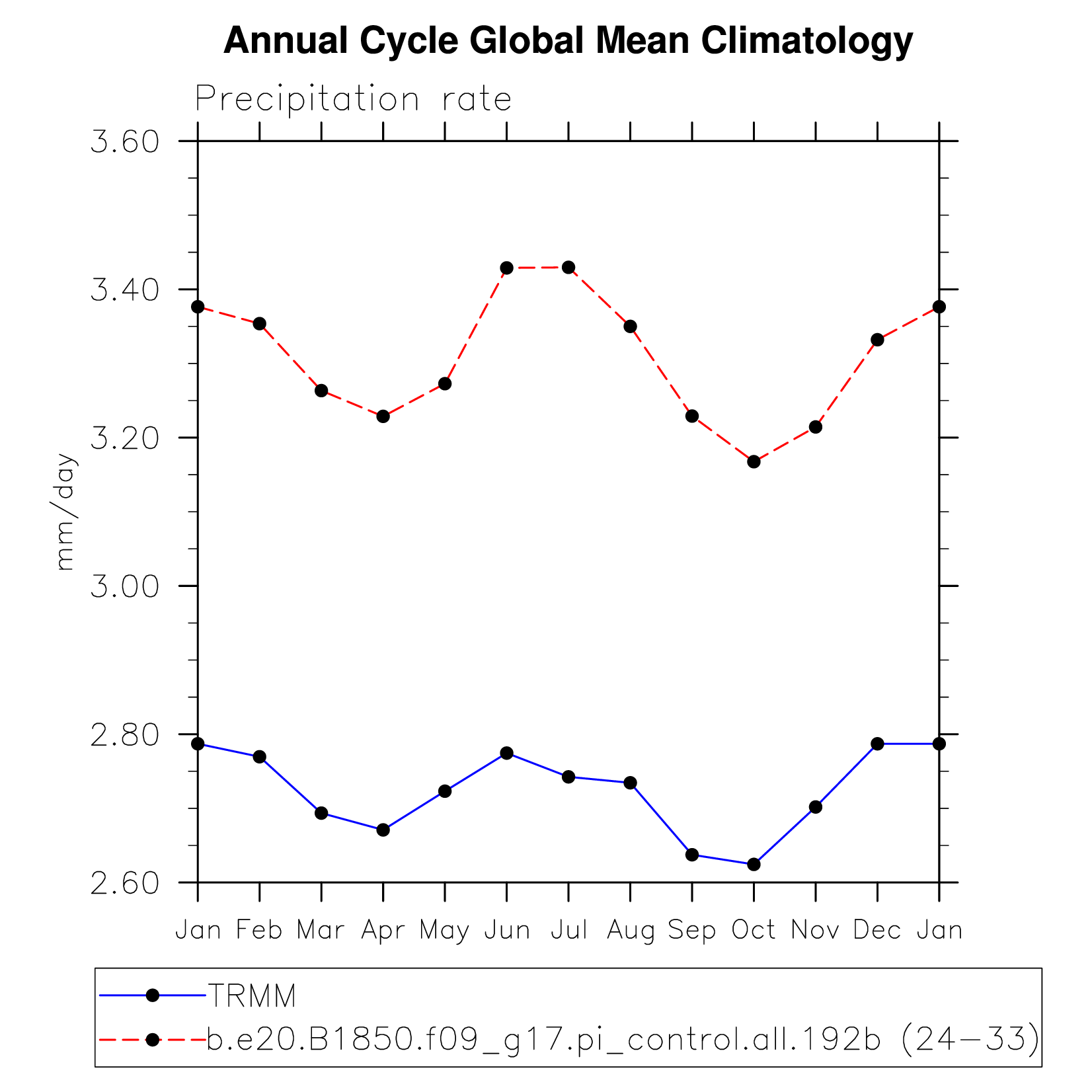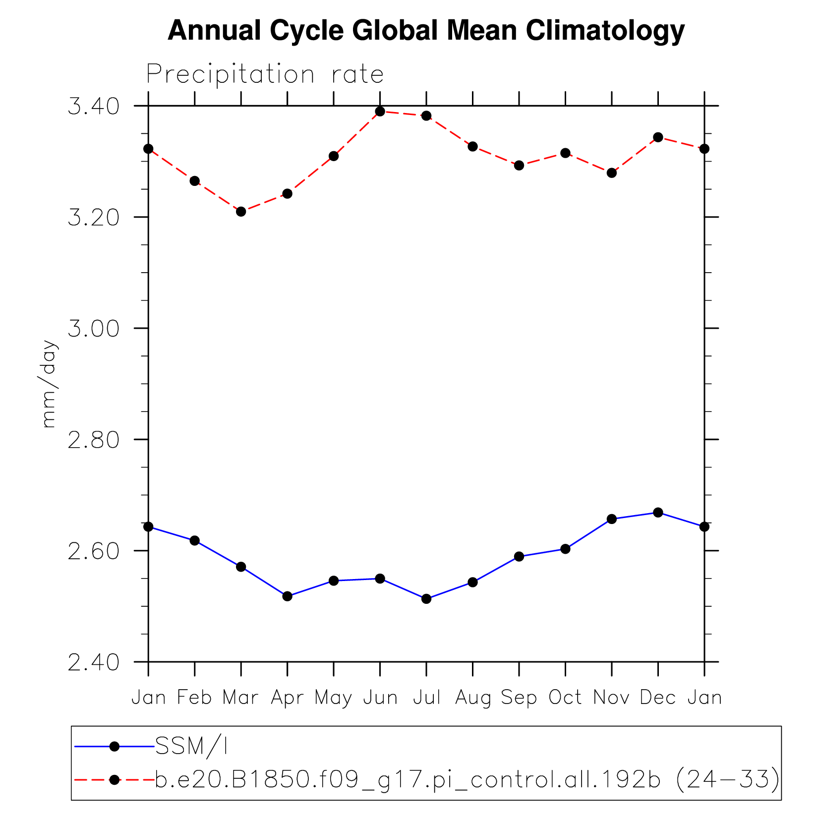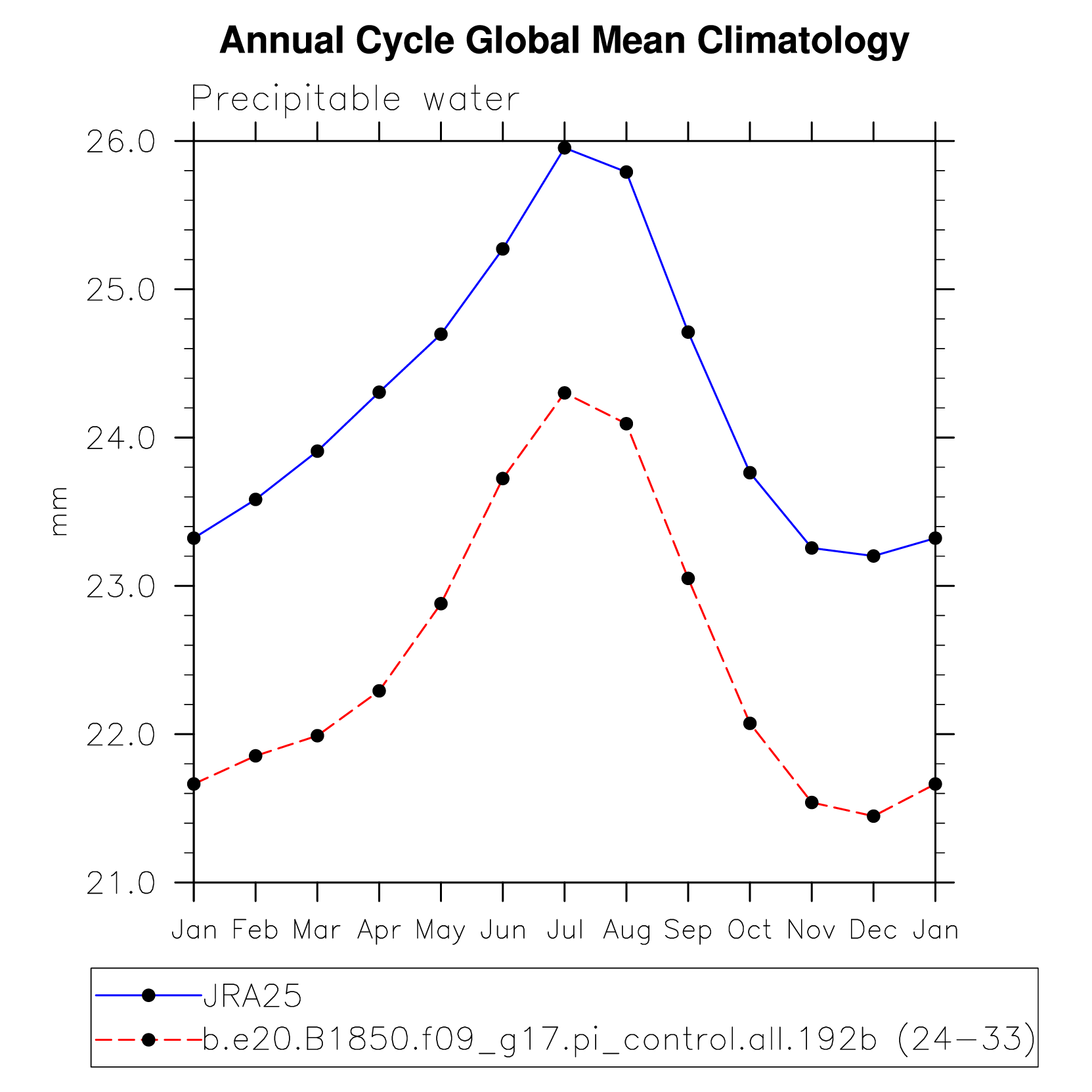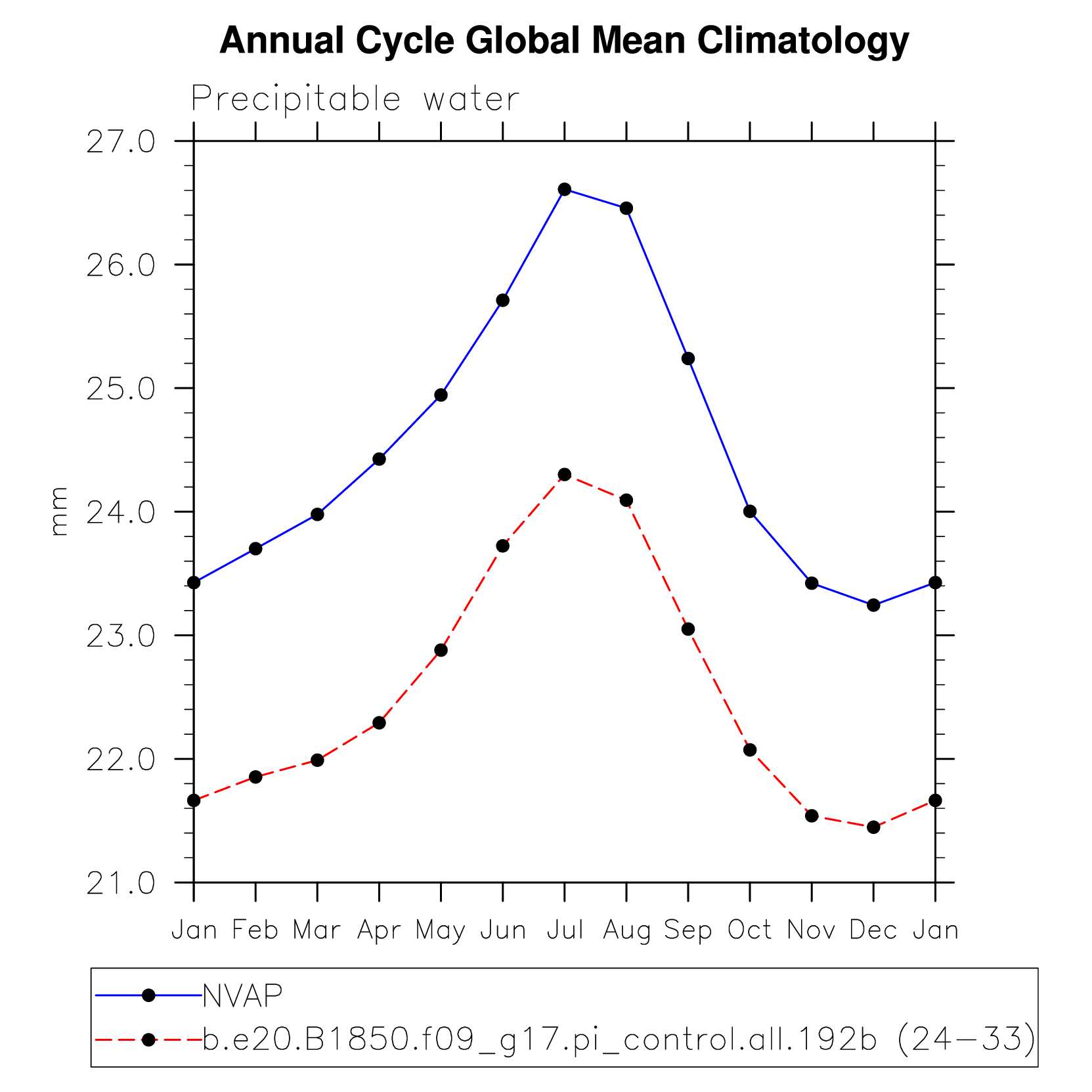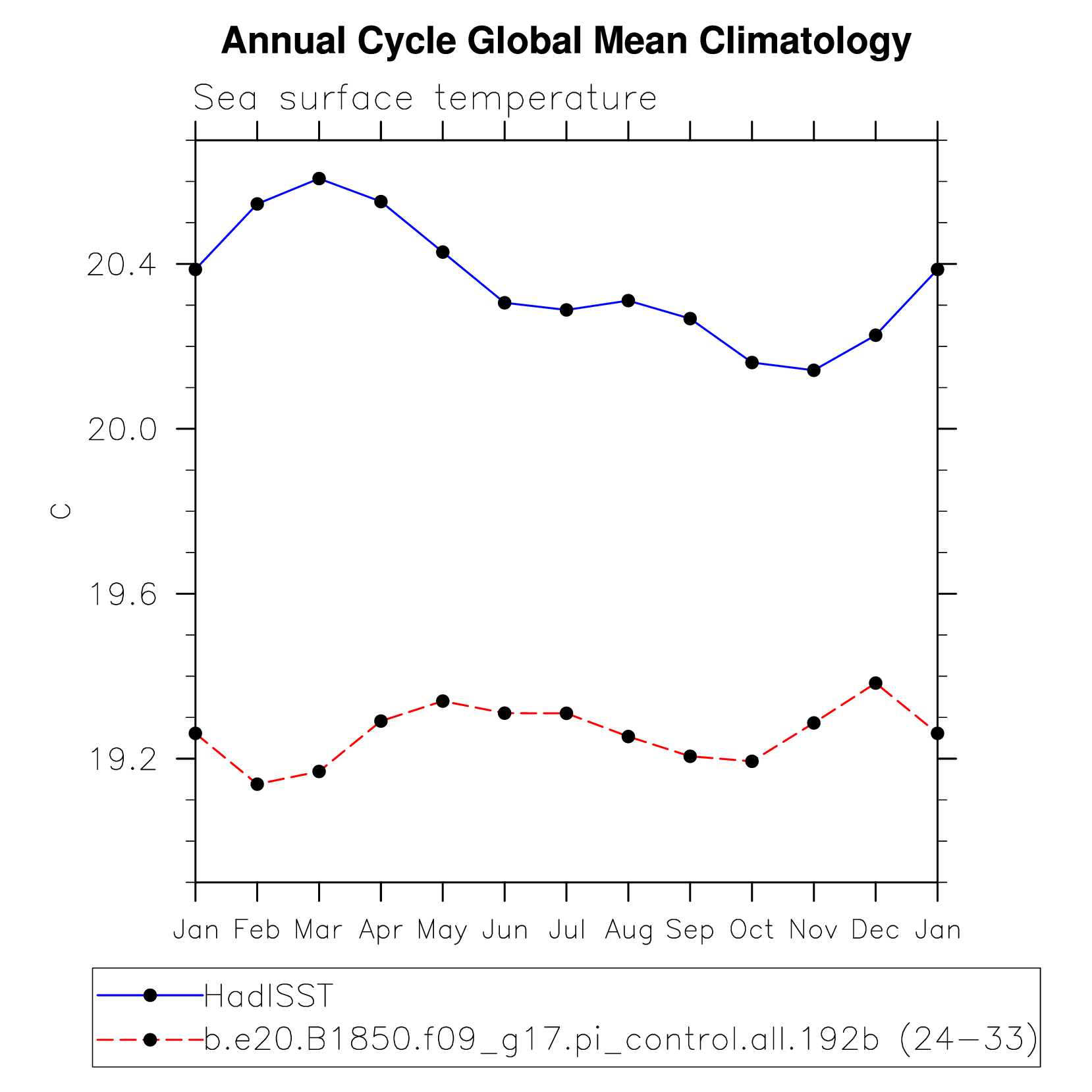 DIAG Set 10 - Annual cycle line plots of global means