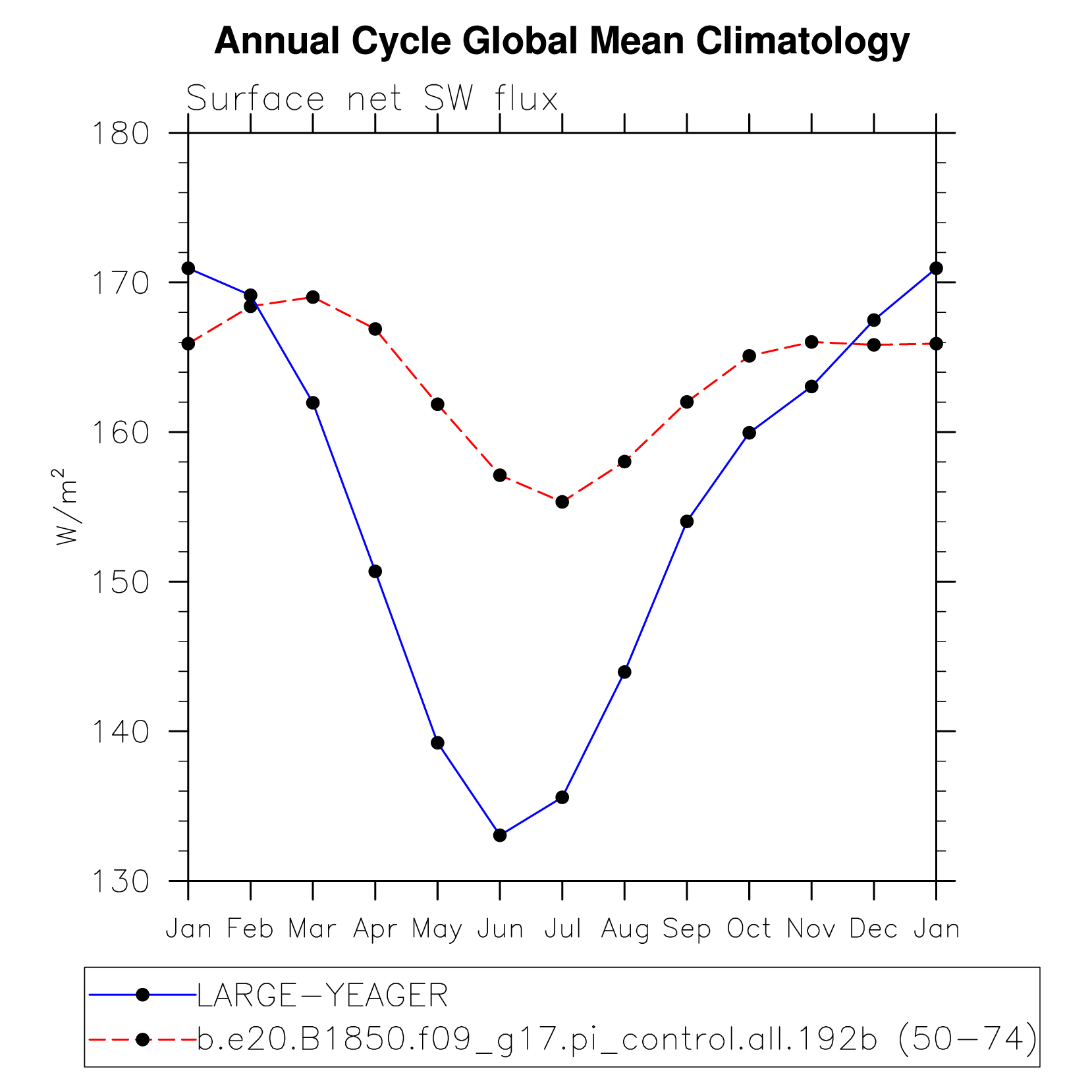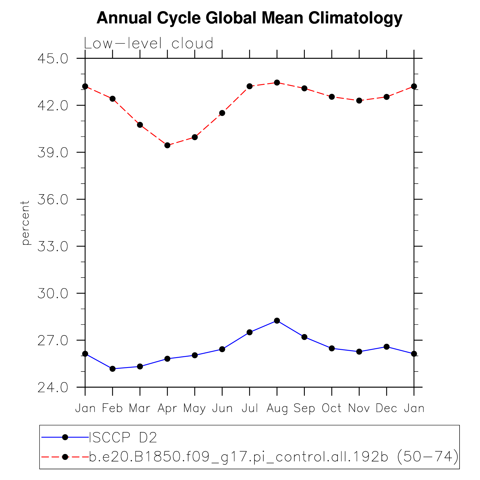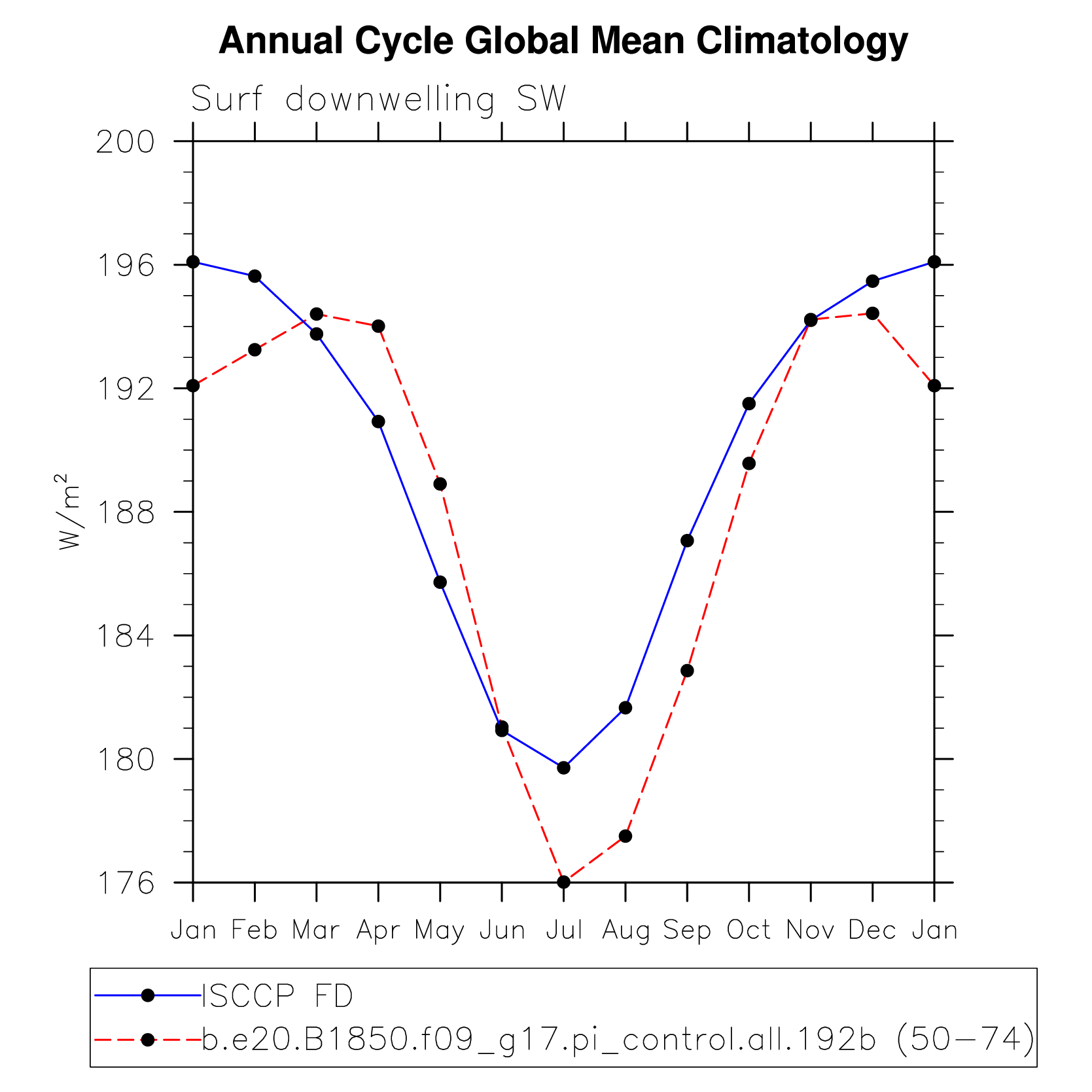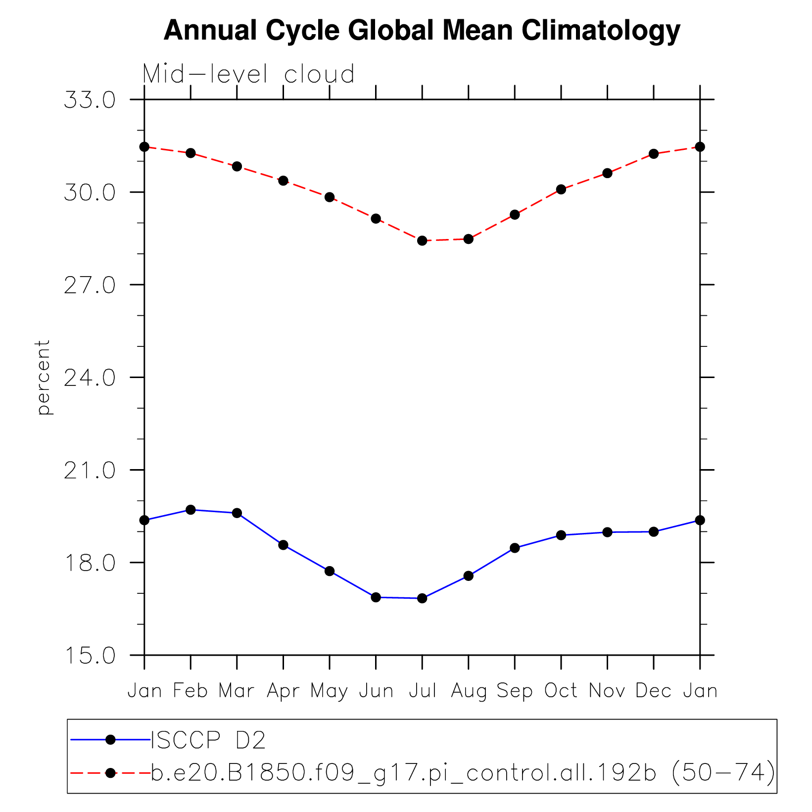DIAG Set 10 - Annual cycle line plots of global means