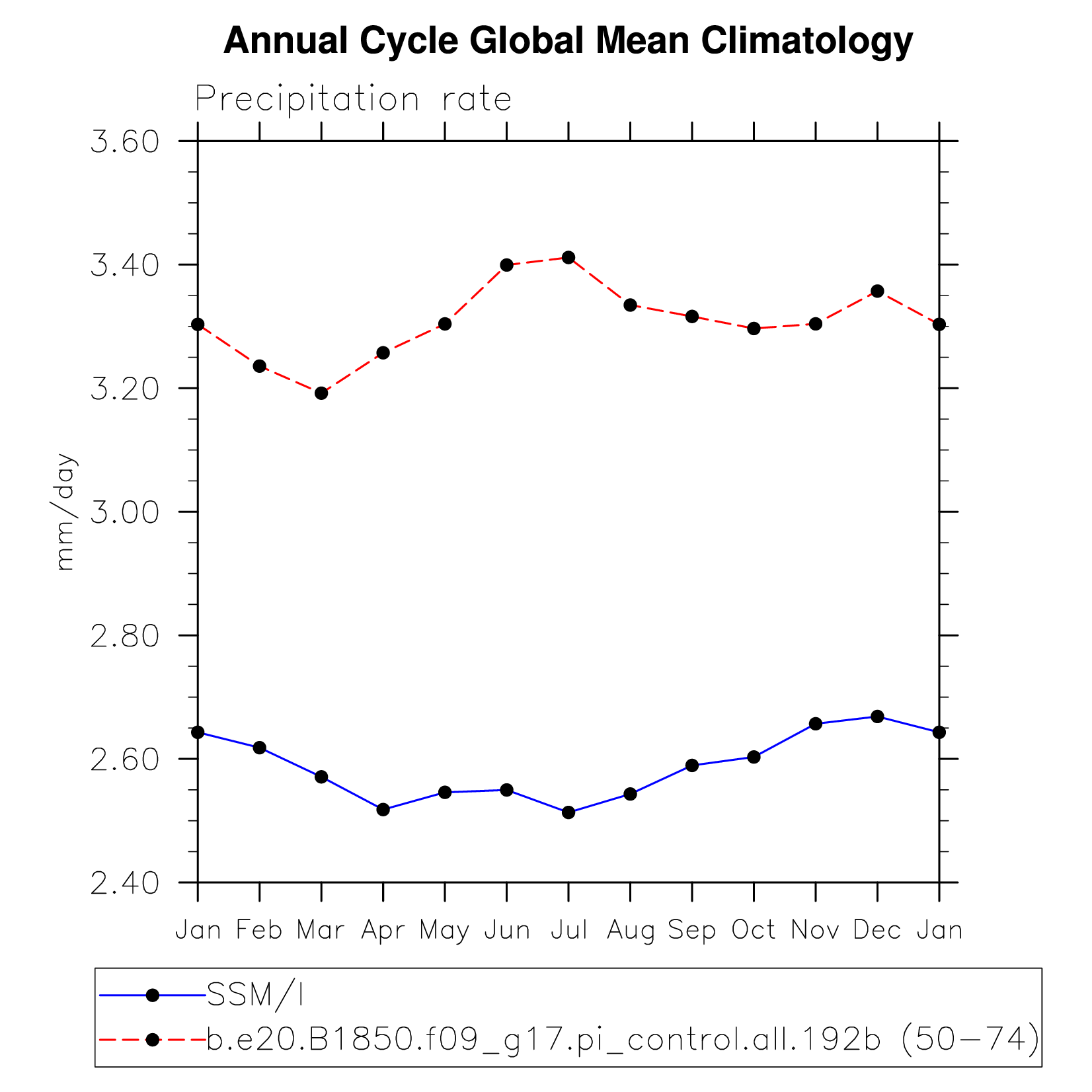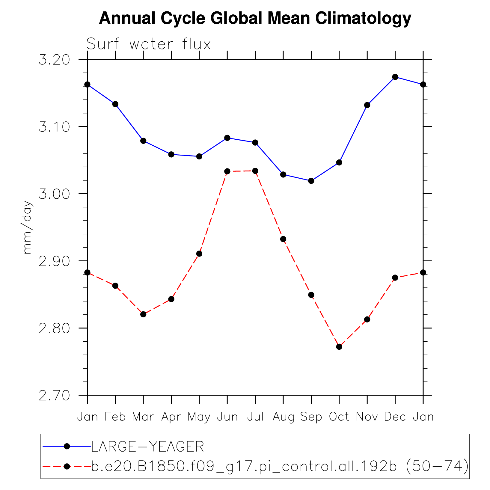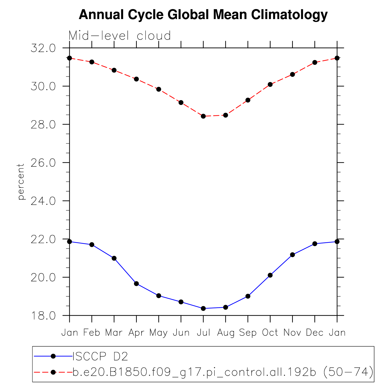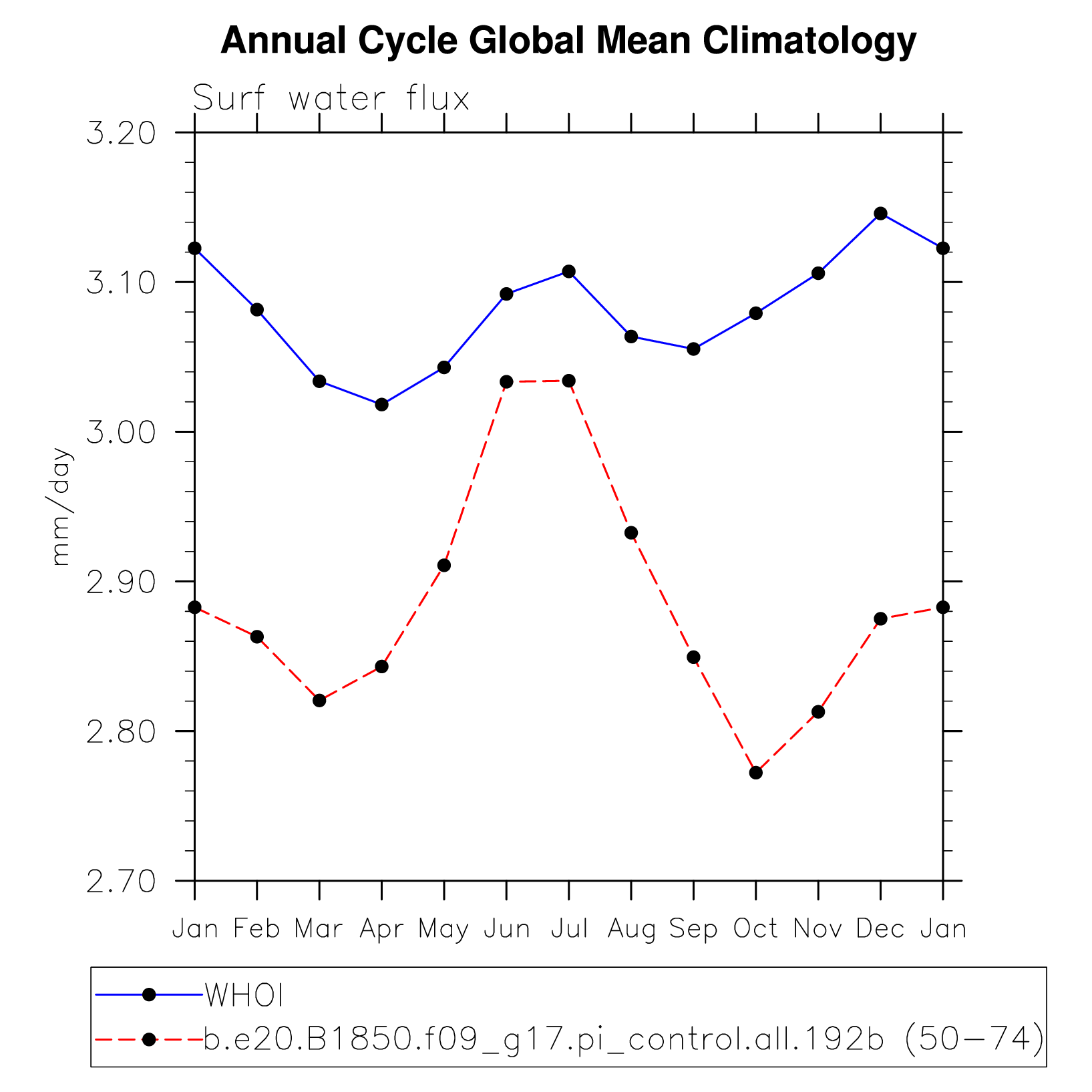 DIAG Set 10 - Annual cycle line plots of global means