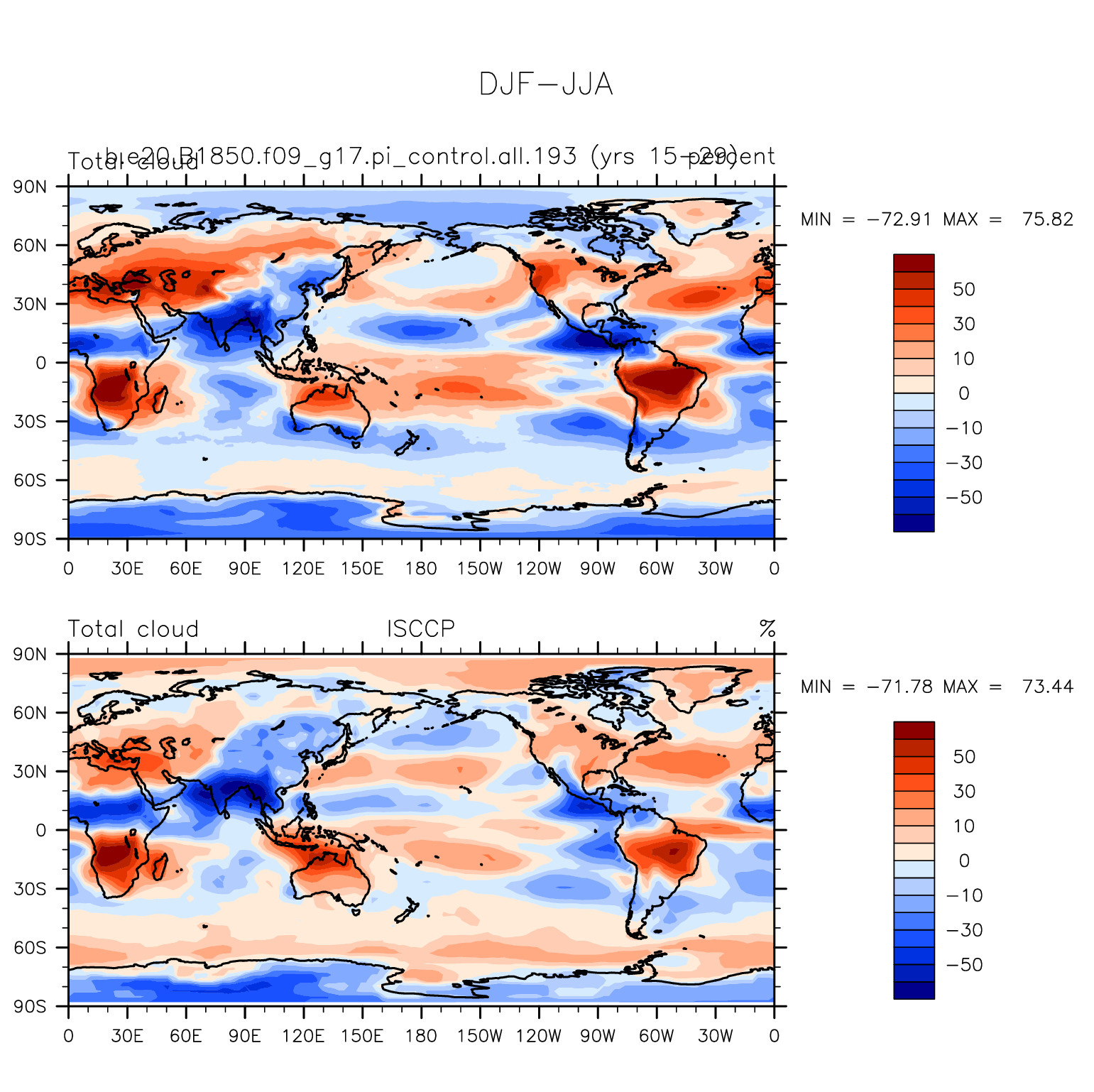 b.e20.B1850.f09_g17.pi_control.all.193 DIAG Set 9 - Horizontal contour plots of DJF-JJA differences