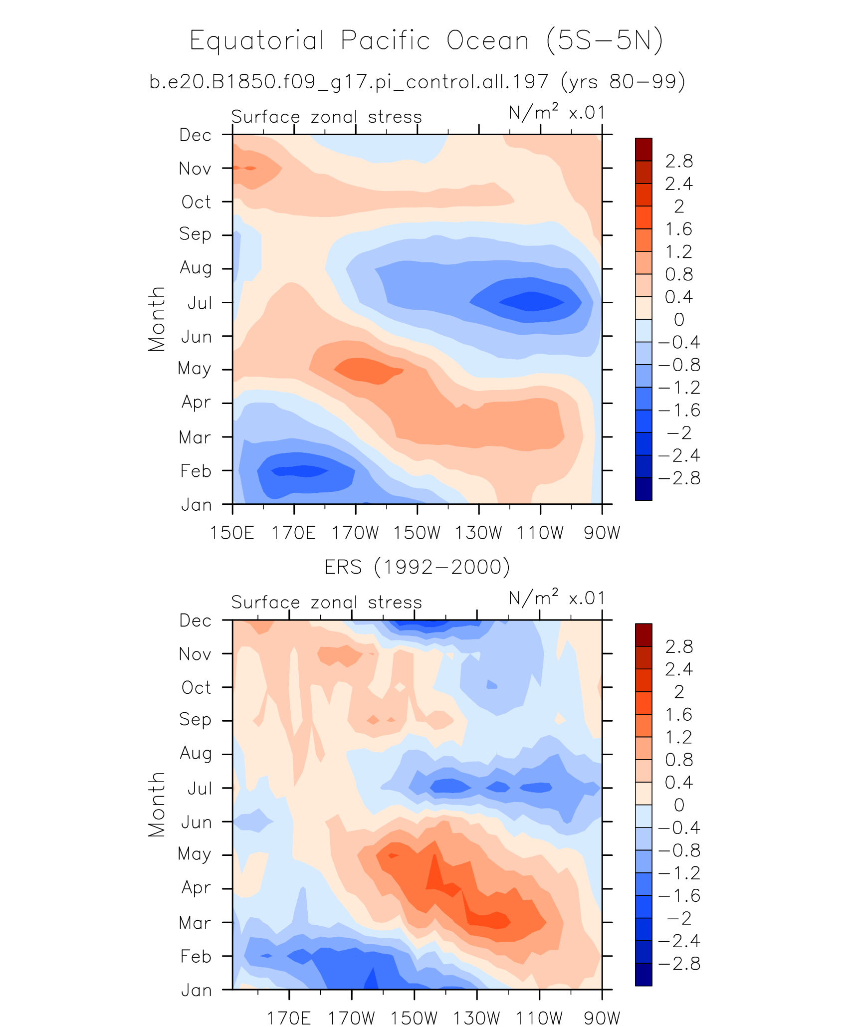 Surface Zonal Stress ERS 1992-2000 plot