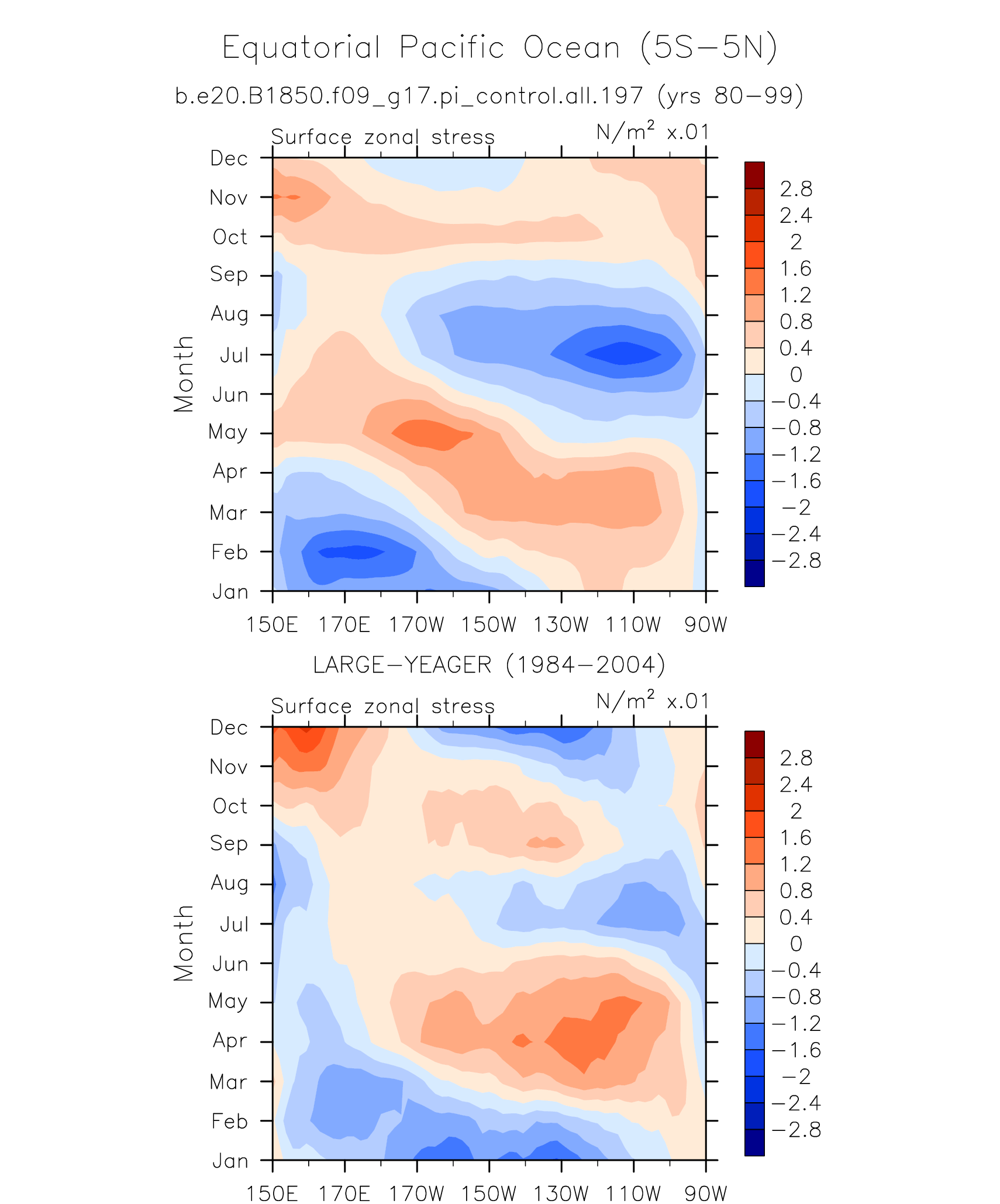 Surface Zonal Stress LARGE-YEAGER 1984-2004 plot