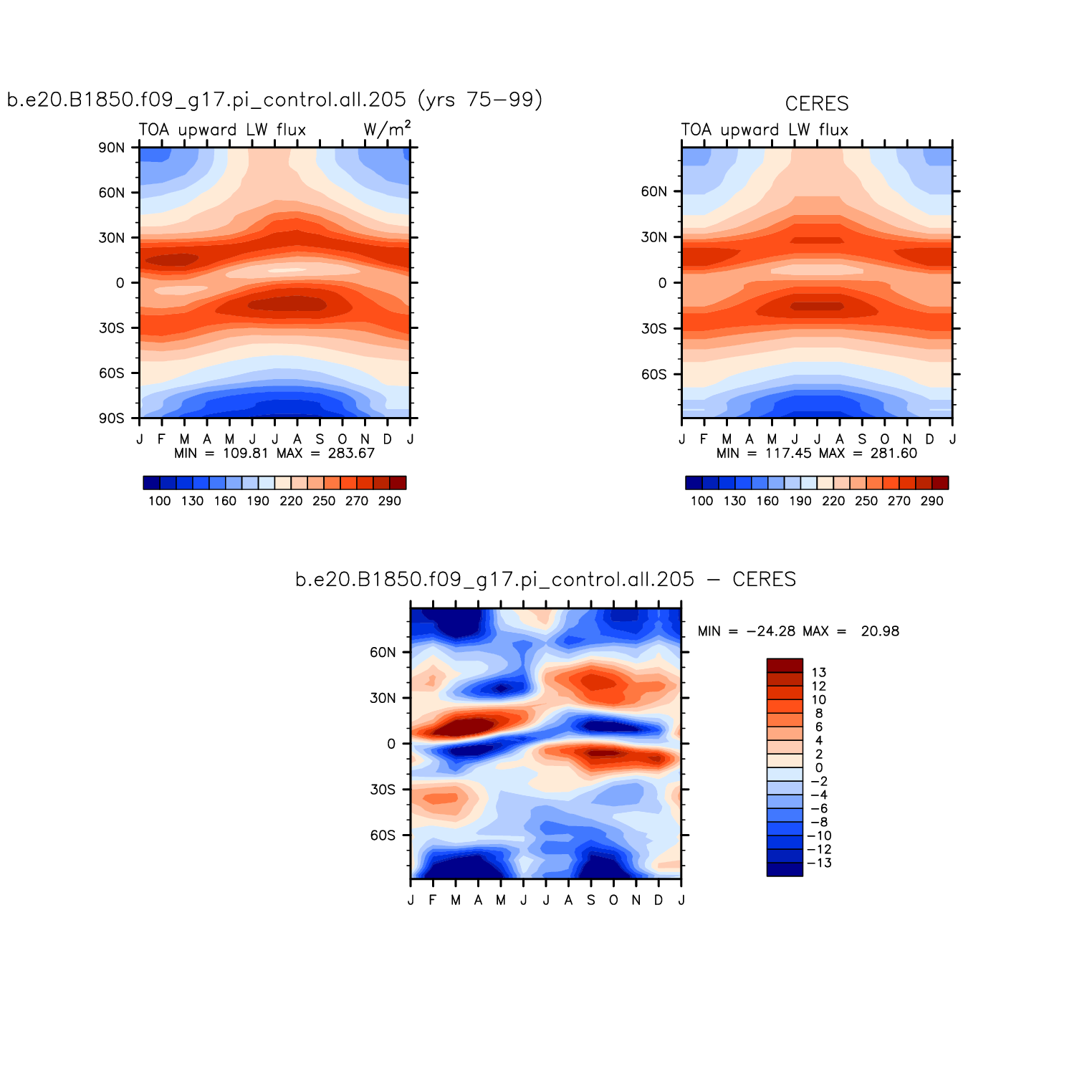FLUT TOA upward longwave flux plot