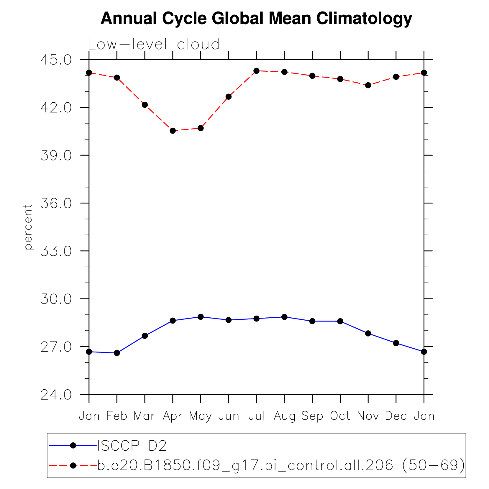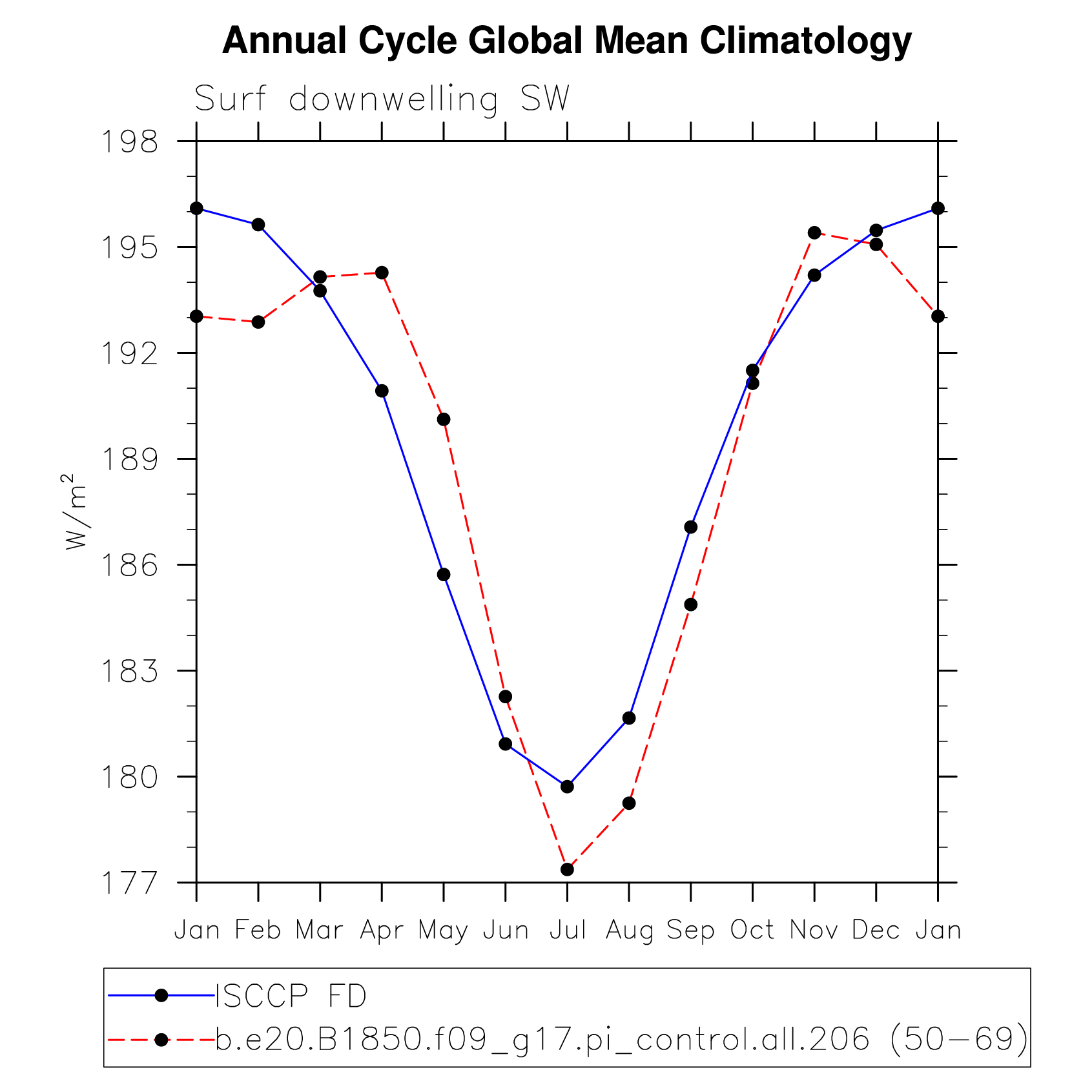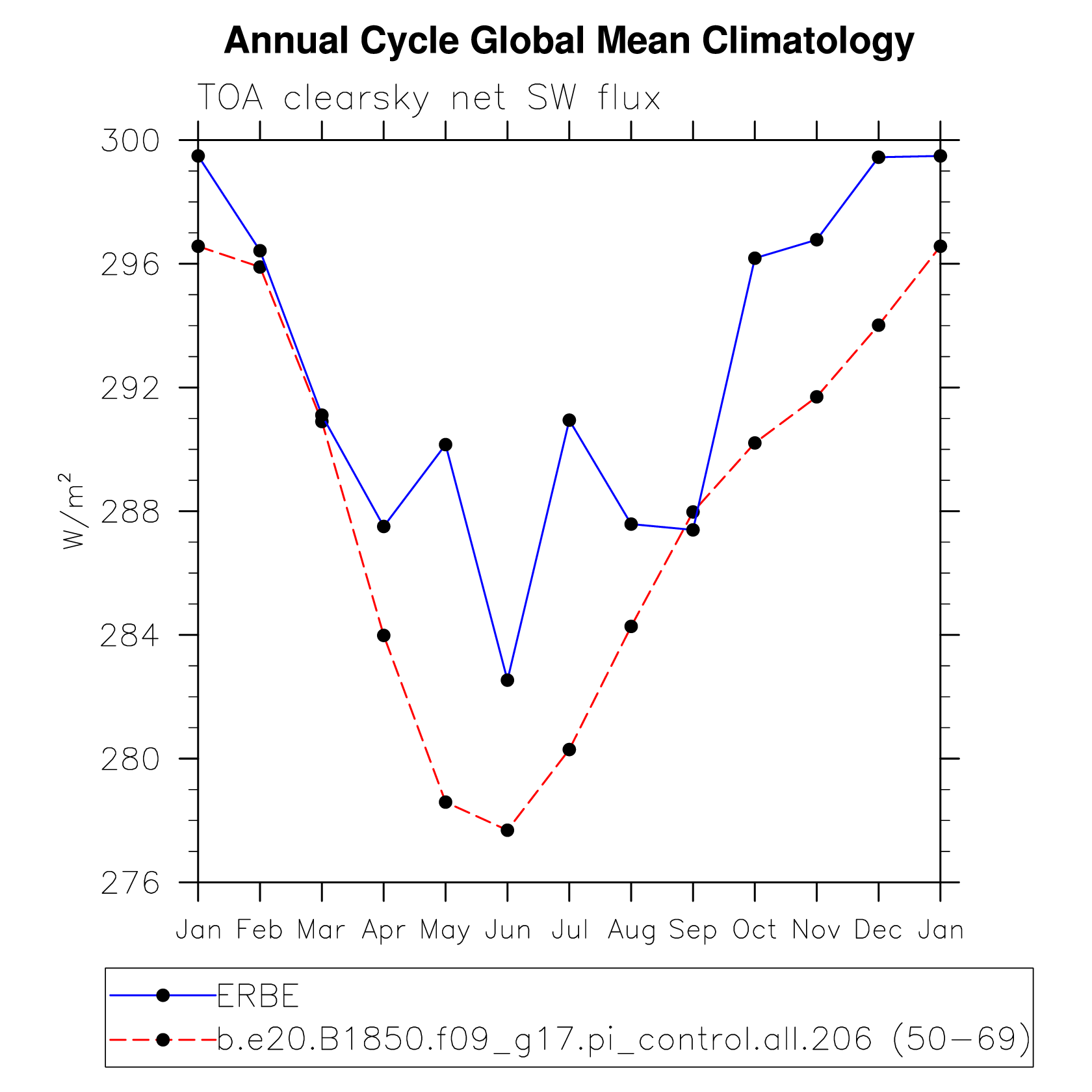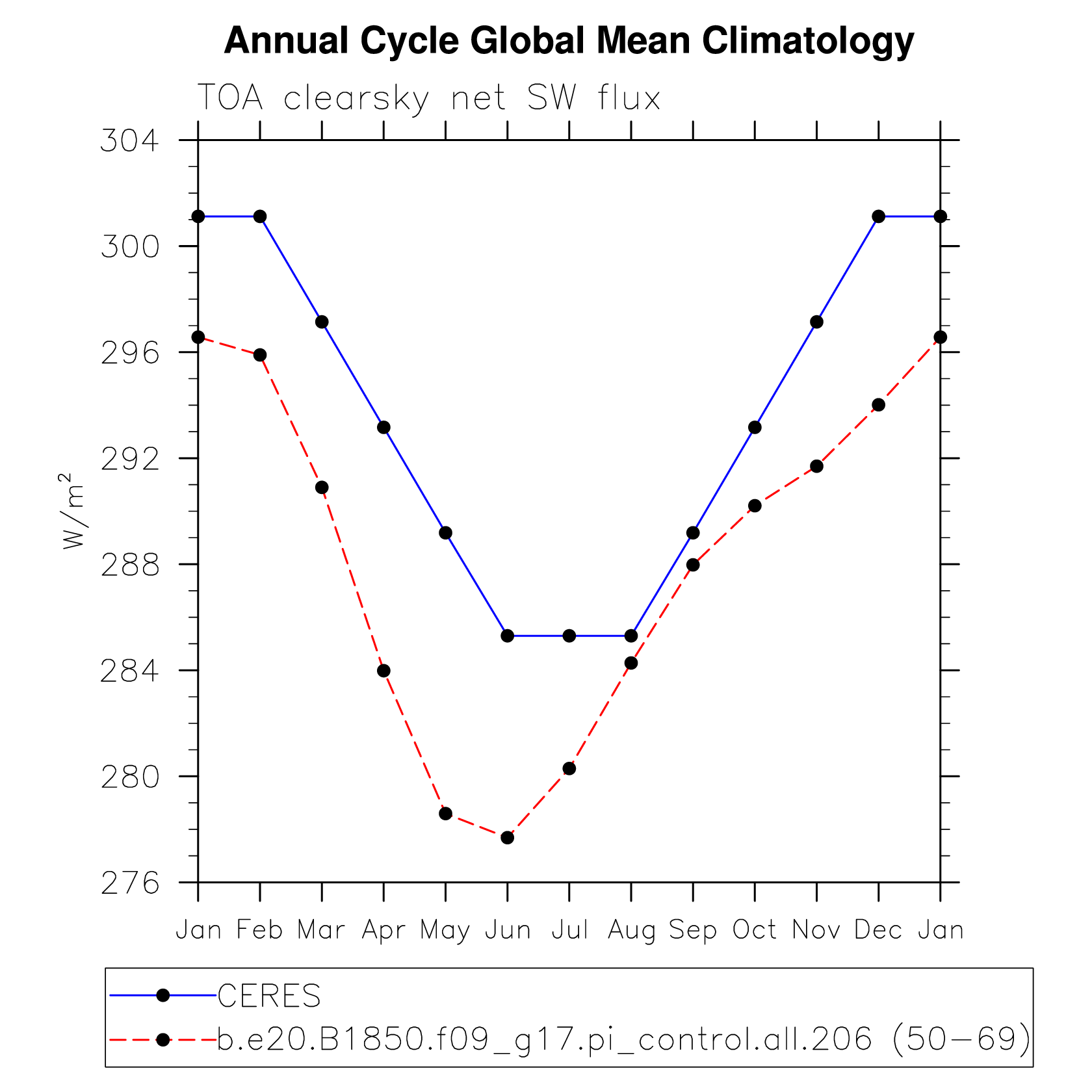 DIAG Set 10 - Annual cycle line plots of global means