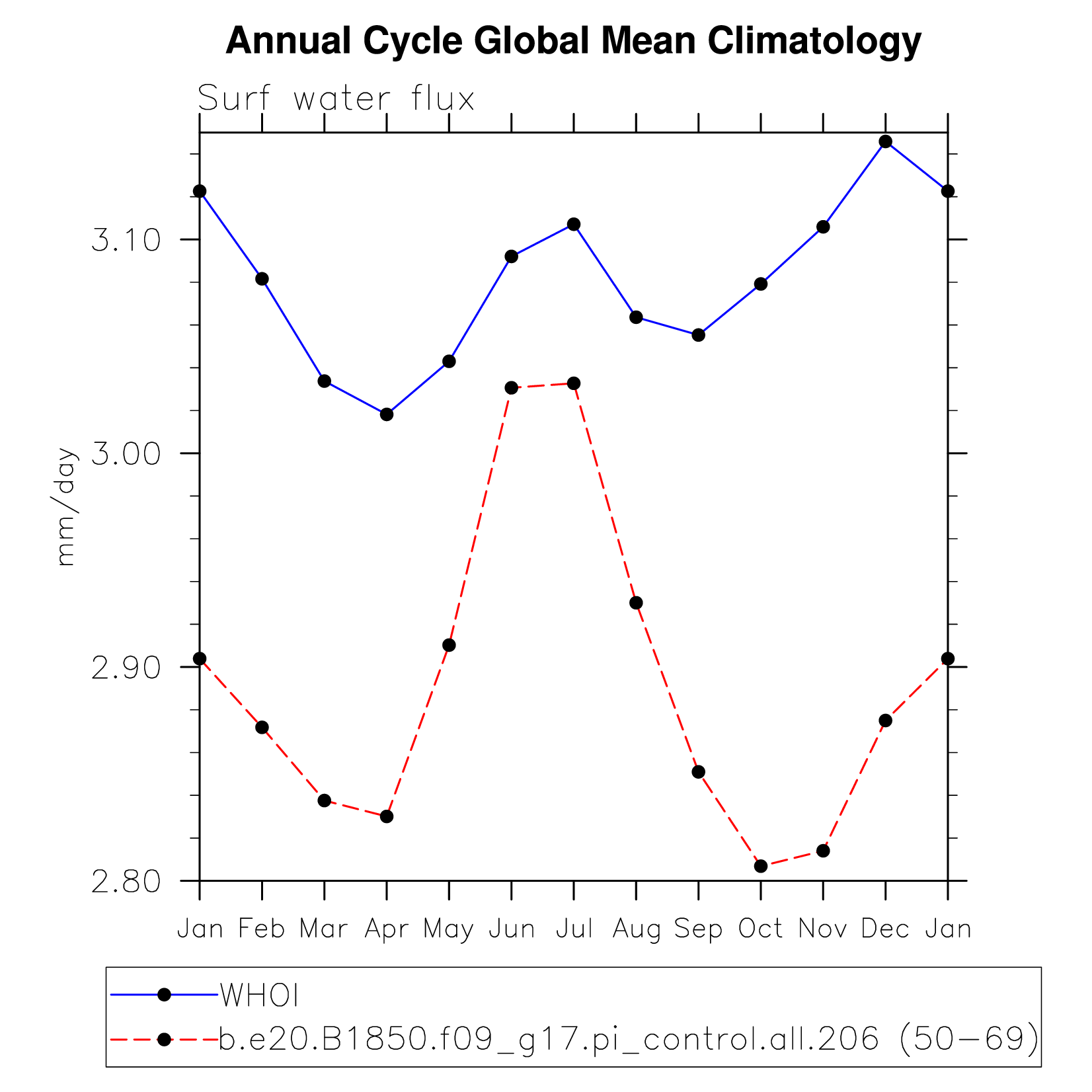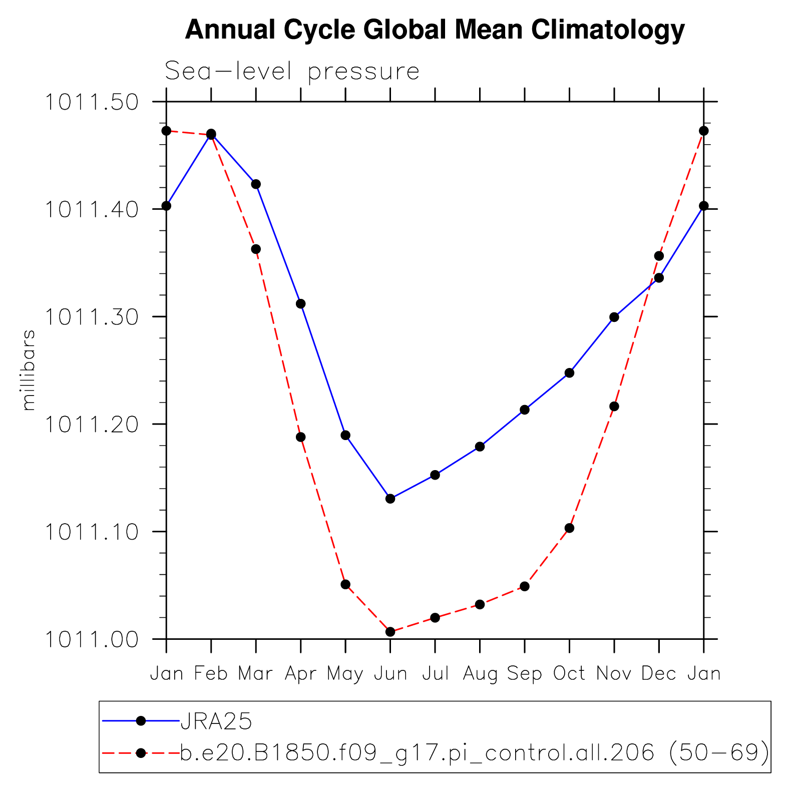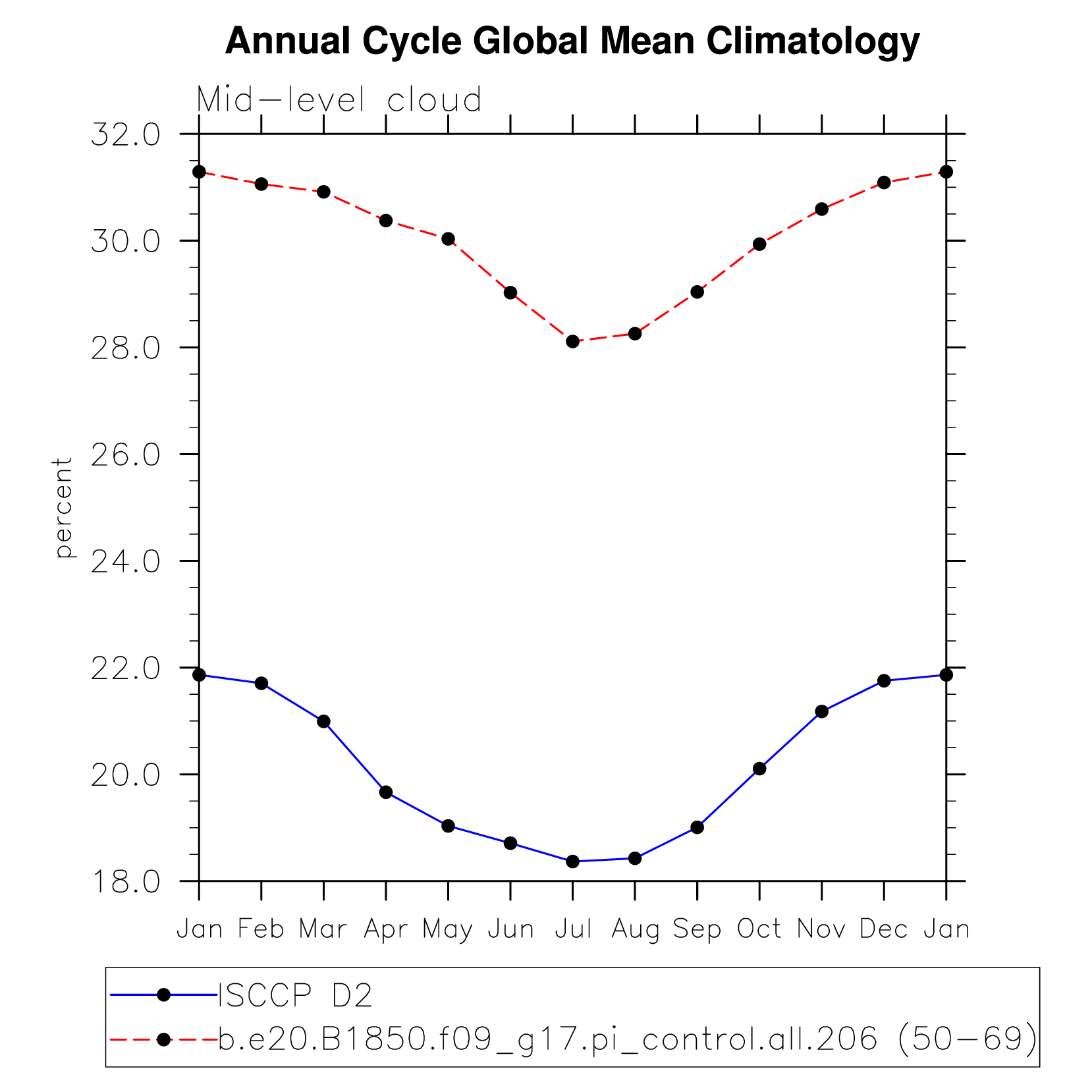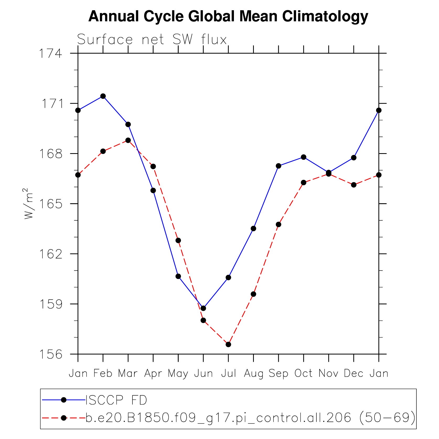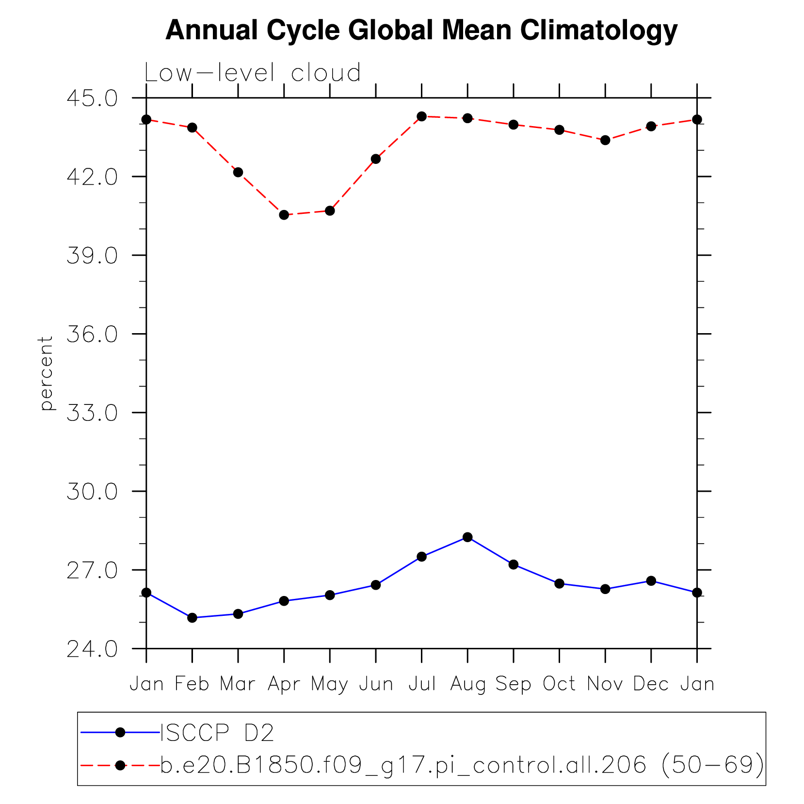 DIAG Set 10 - Annual cycle line plots of global means