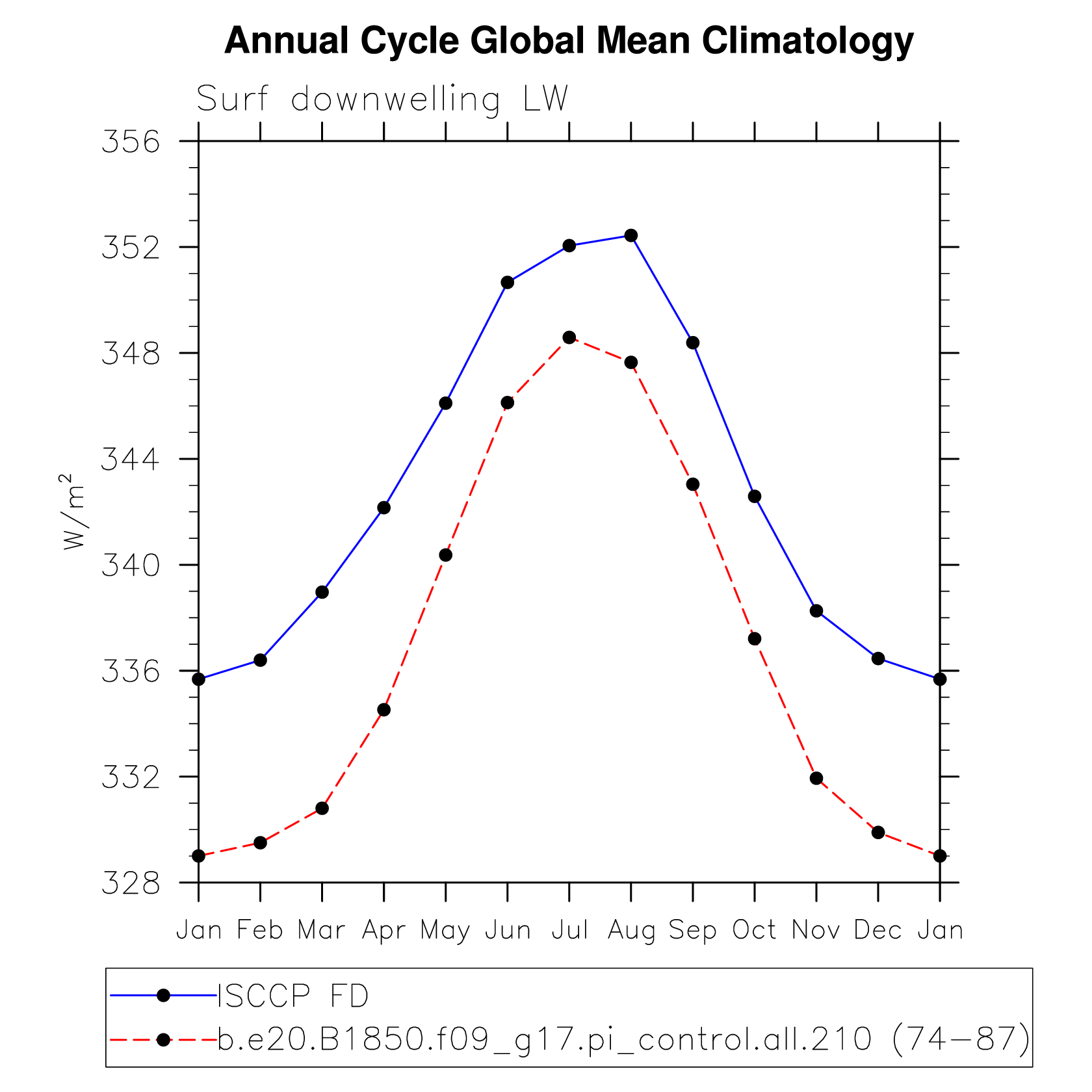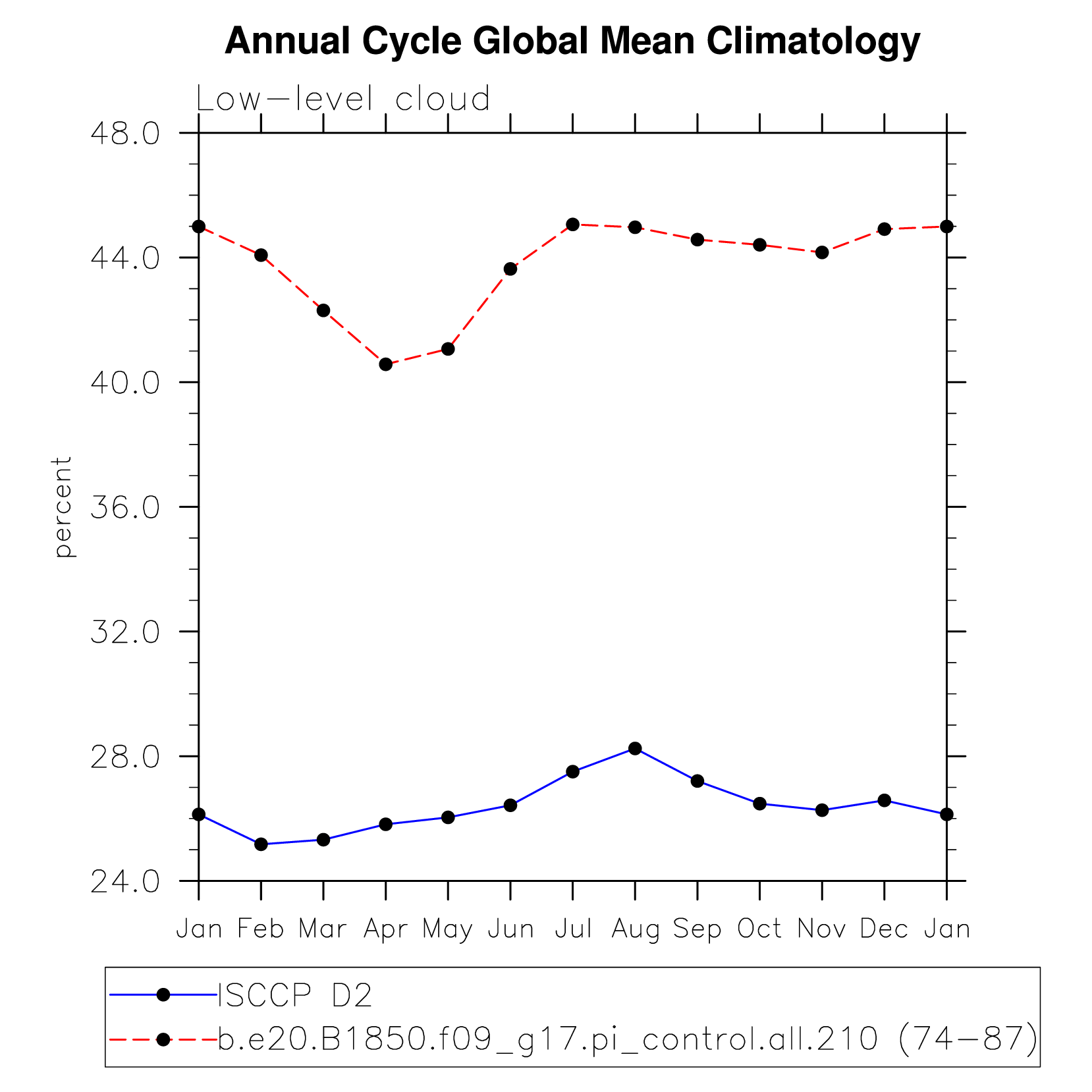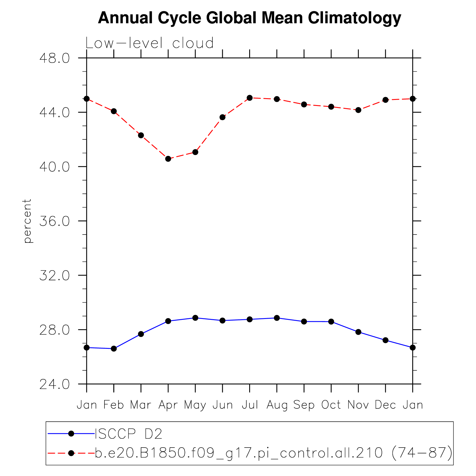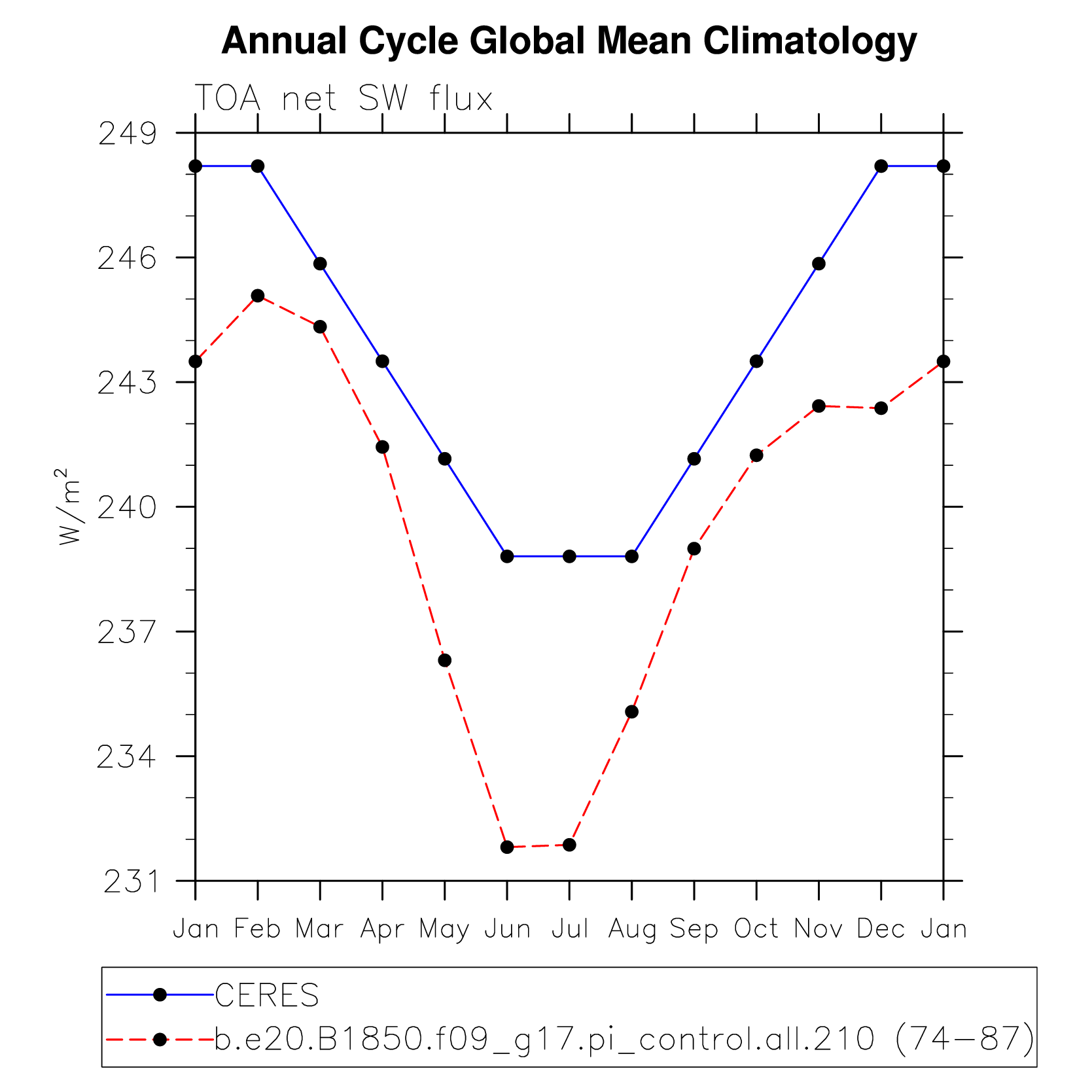 DIAG Set 10 - Annual cycle line plots of global means