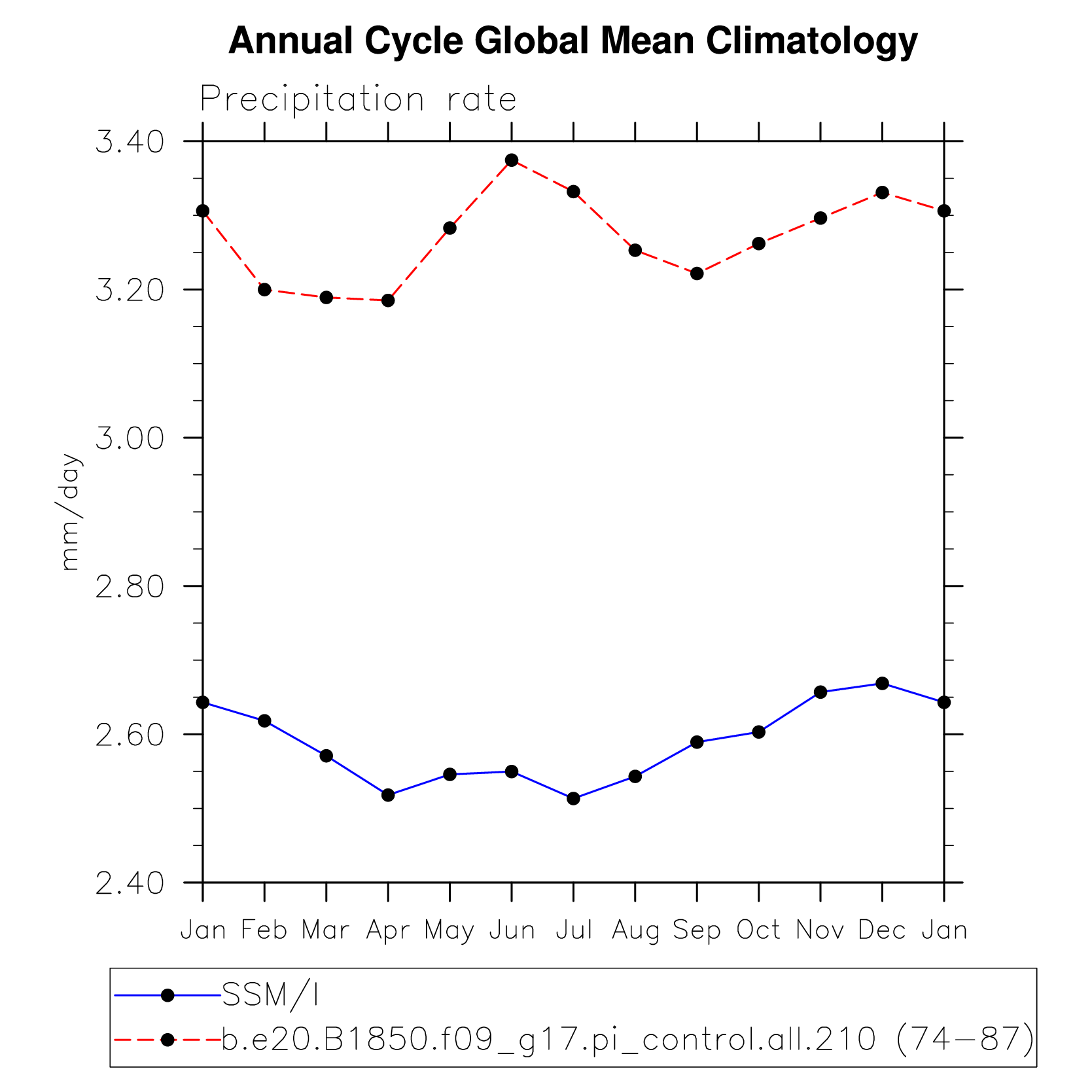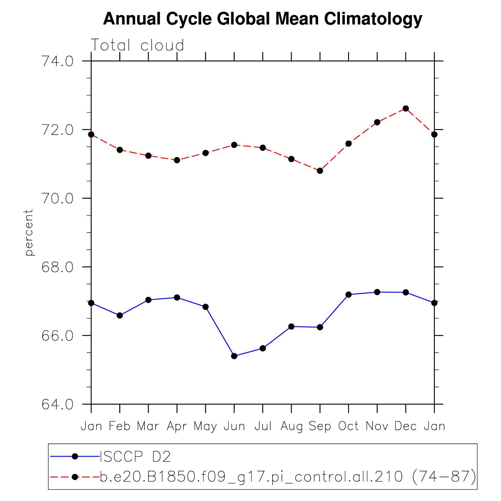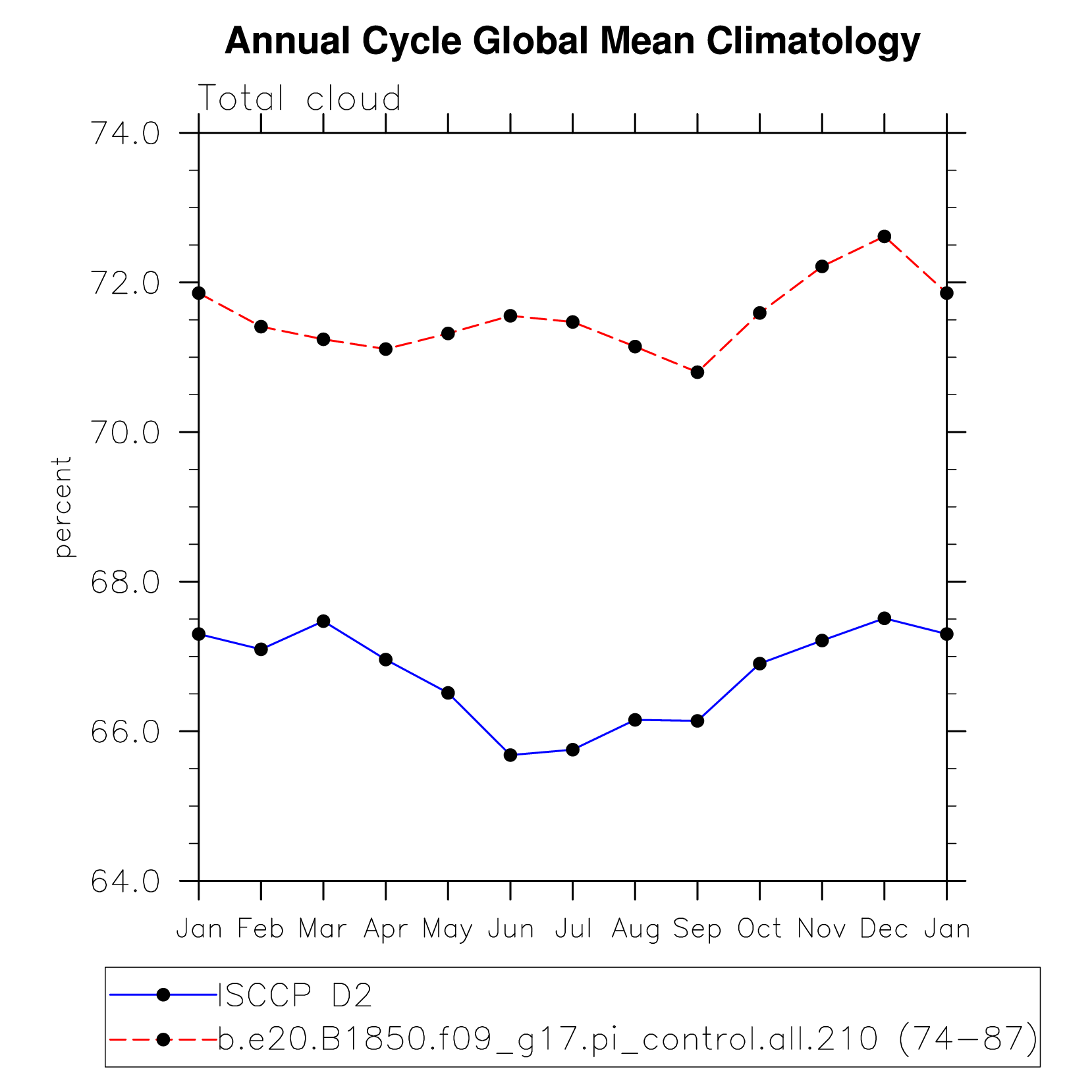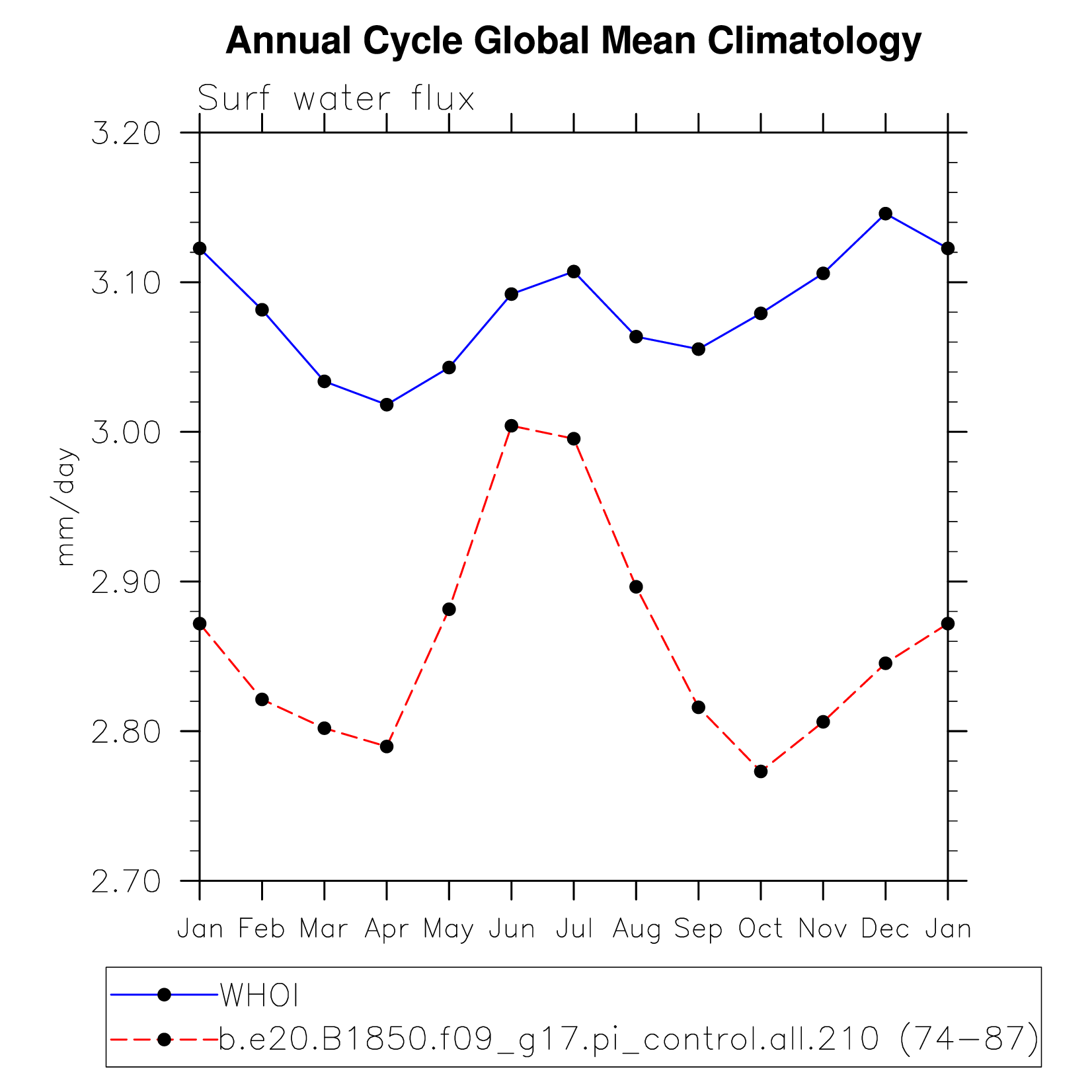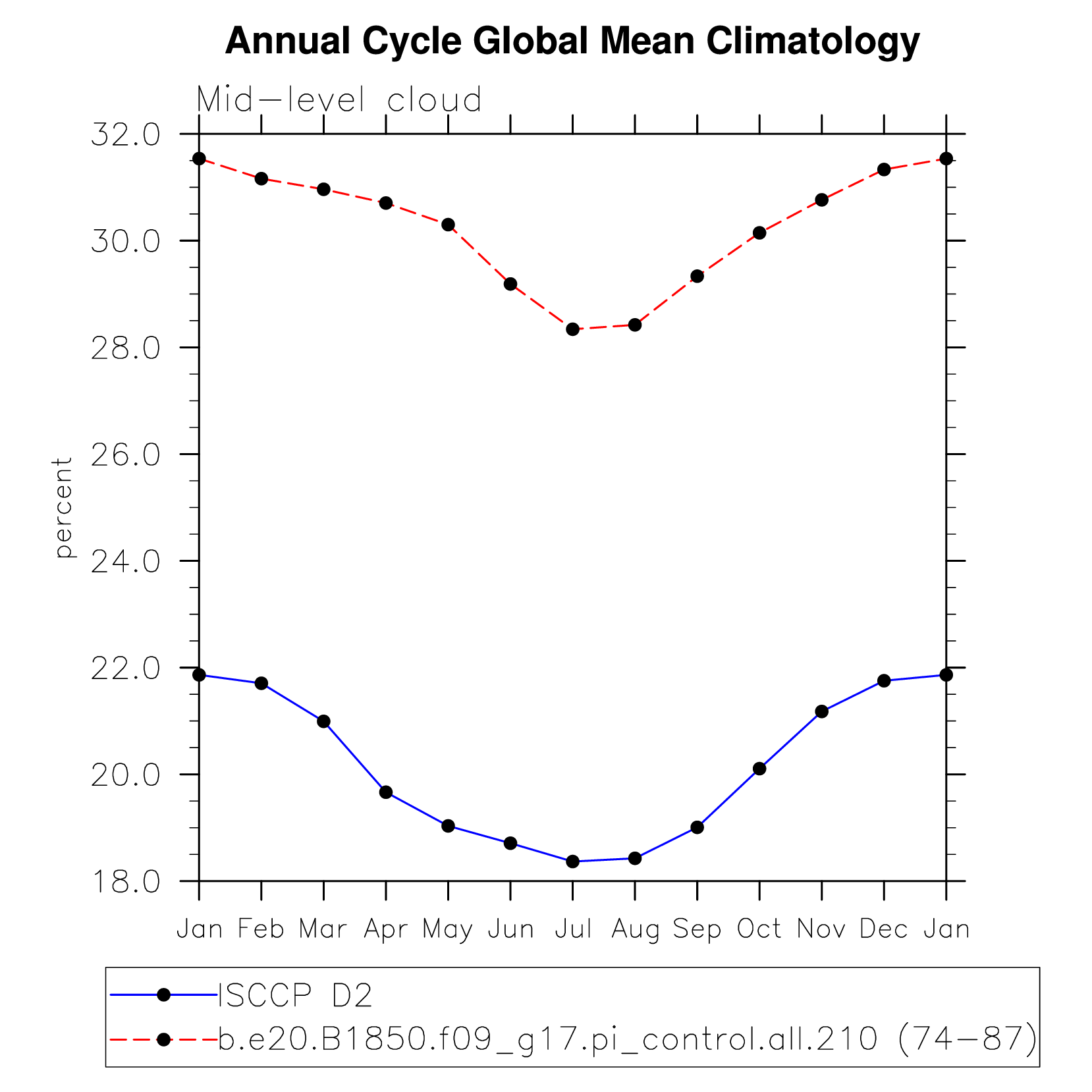 DIAG Set 10 - Annual cycle line plots of global means