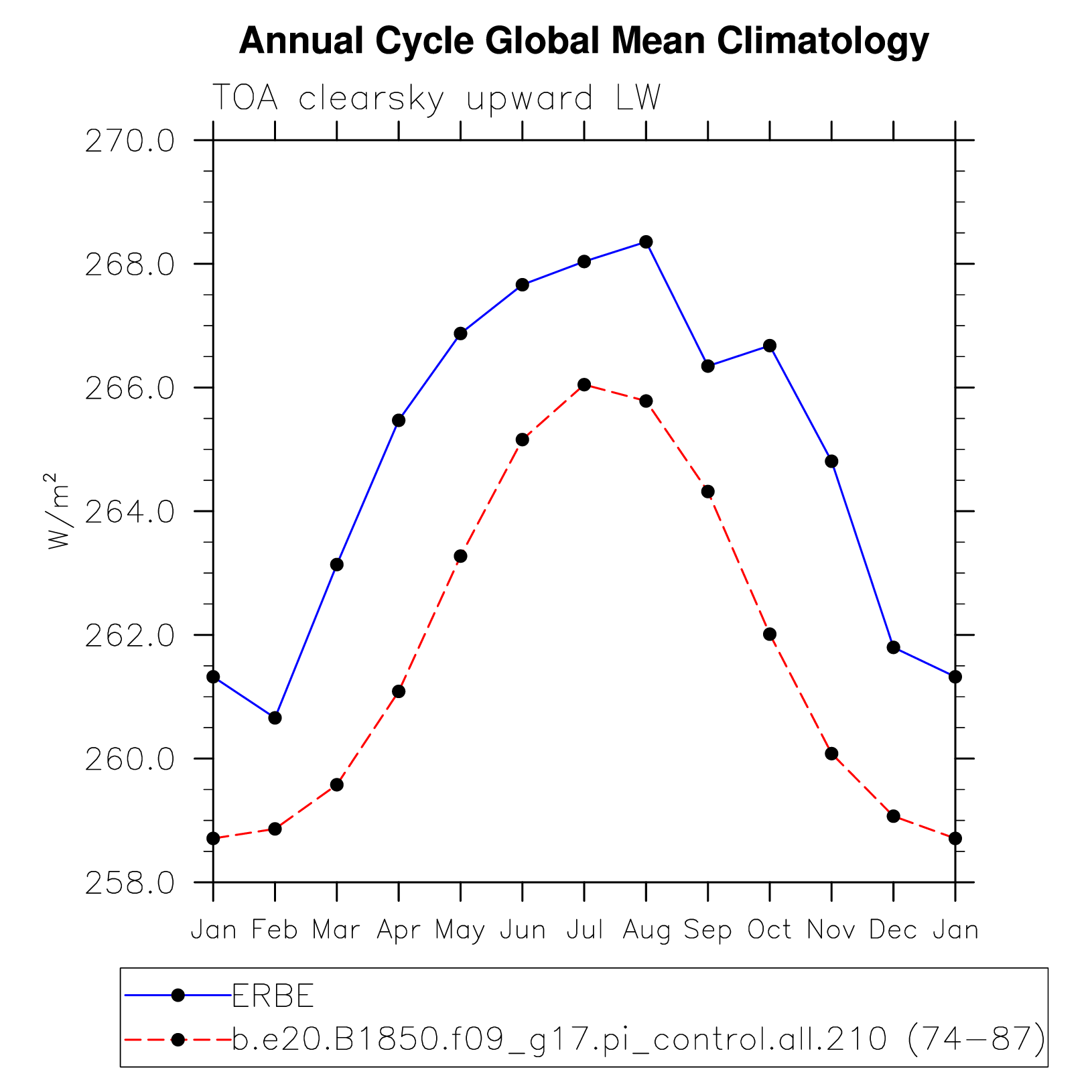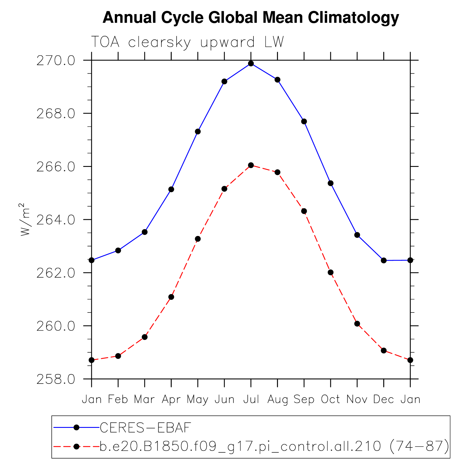 FLUTC TOA clearsky upward LW flux plot
