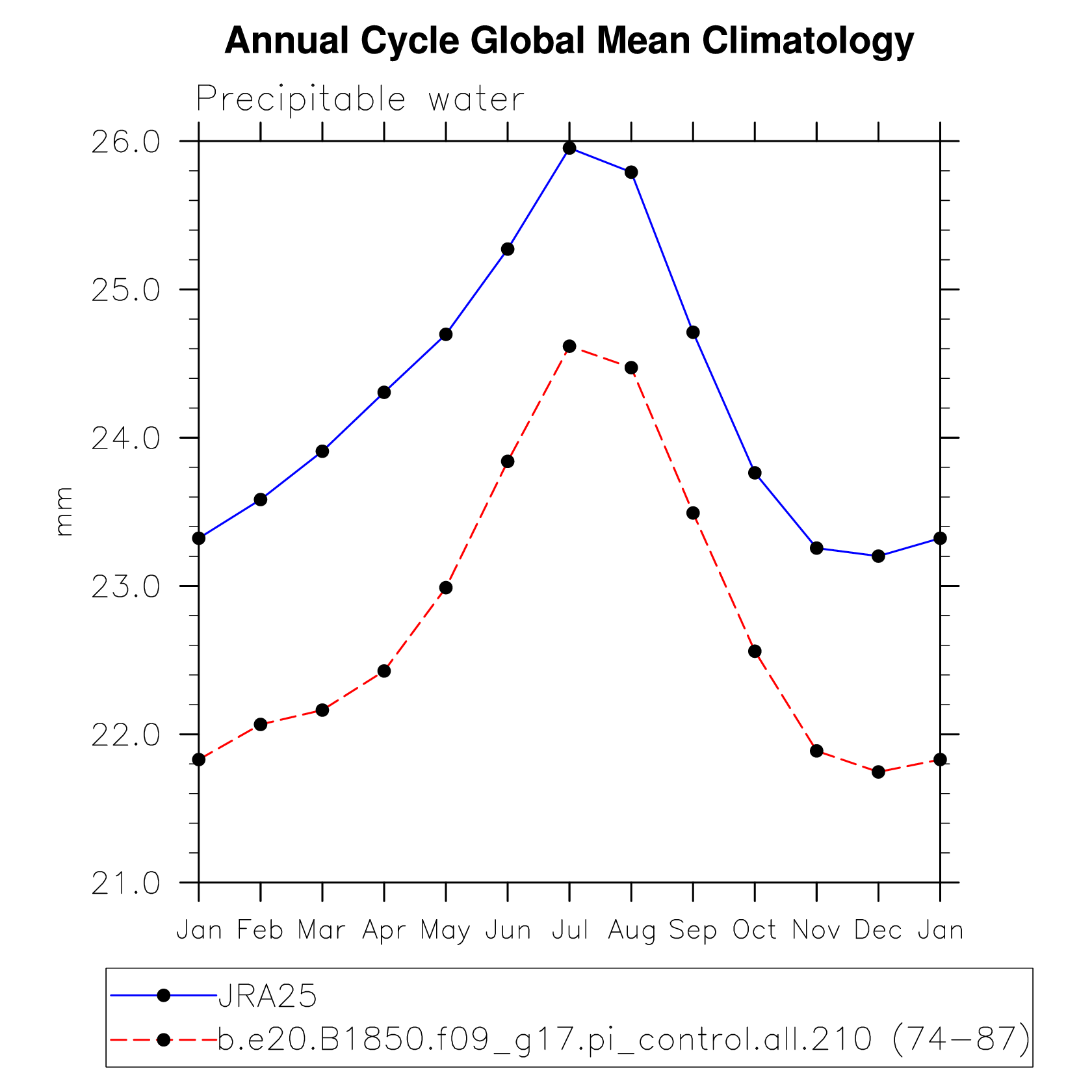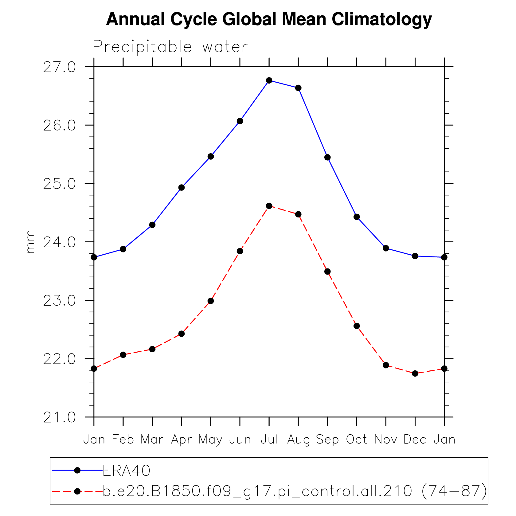 PREH2O Precipitable water (ocean) plot