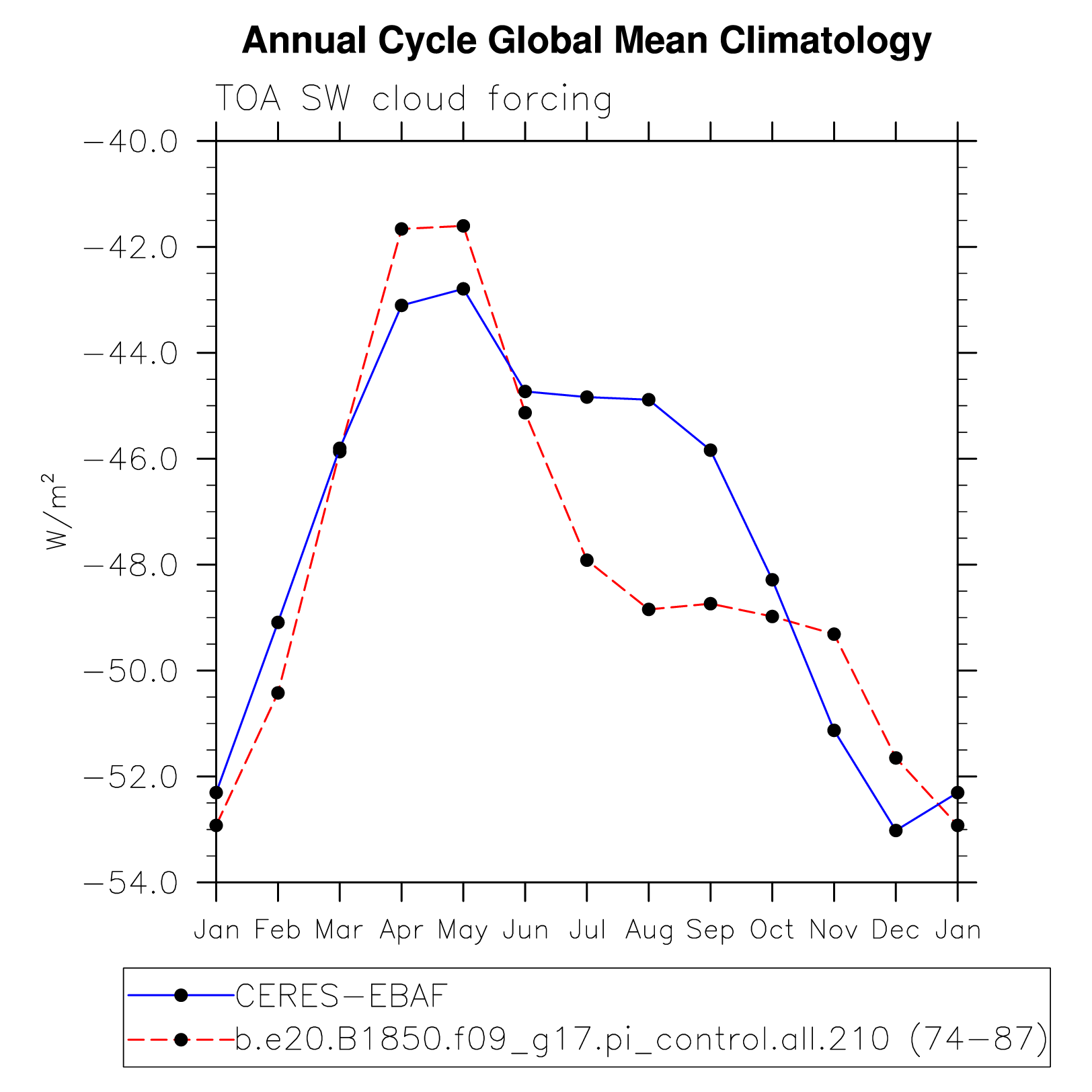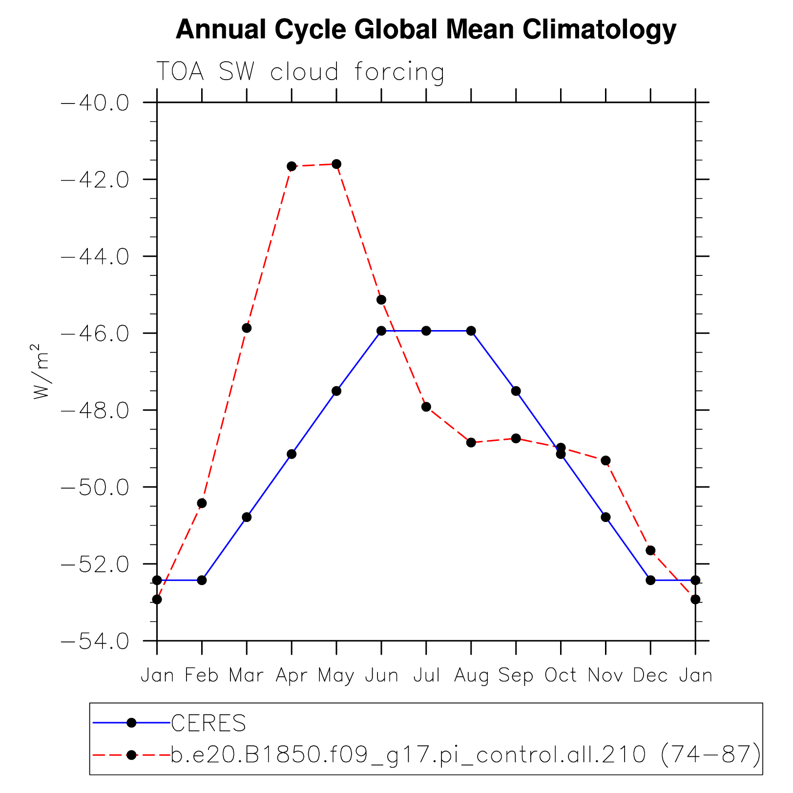SWCF TOA shortwave cloud forcing plot