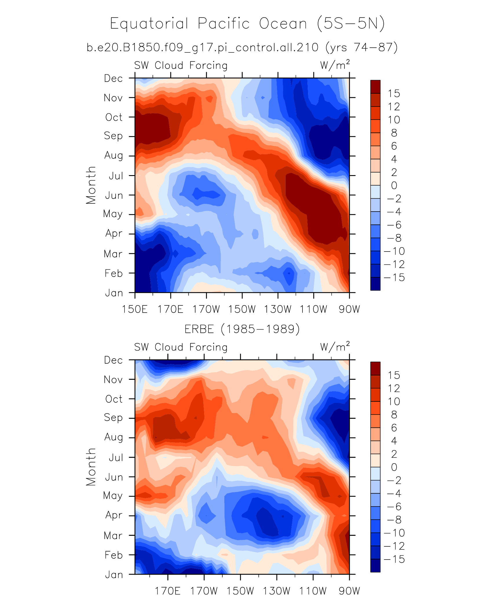 SW/LW Cloud Forcing ERBE 1985-1989 plot