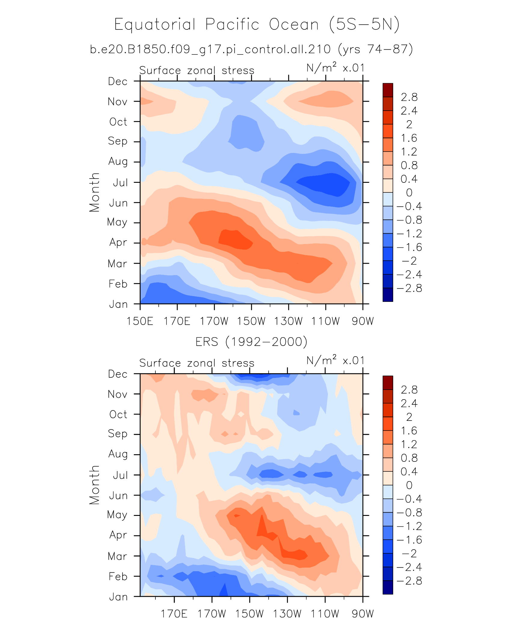 Surface Zonal Stress ERS 1992-2000 plot