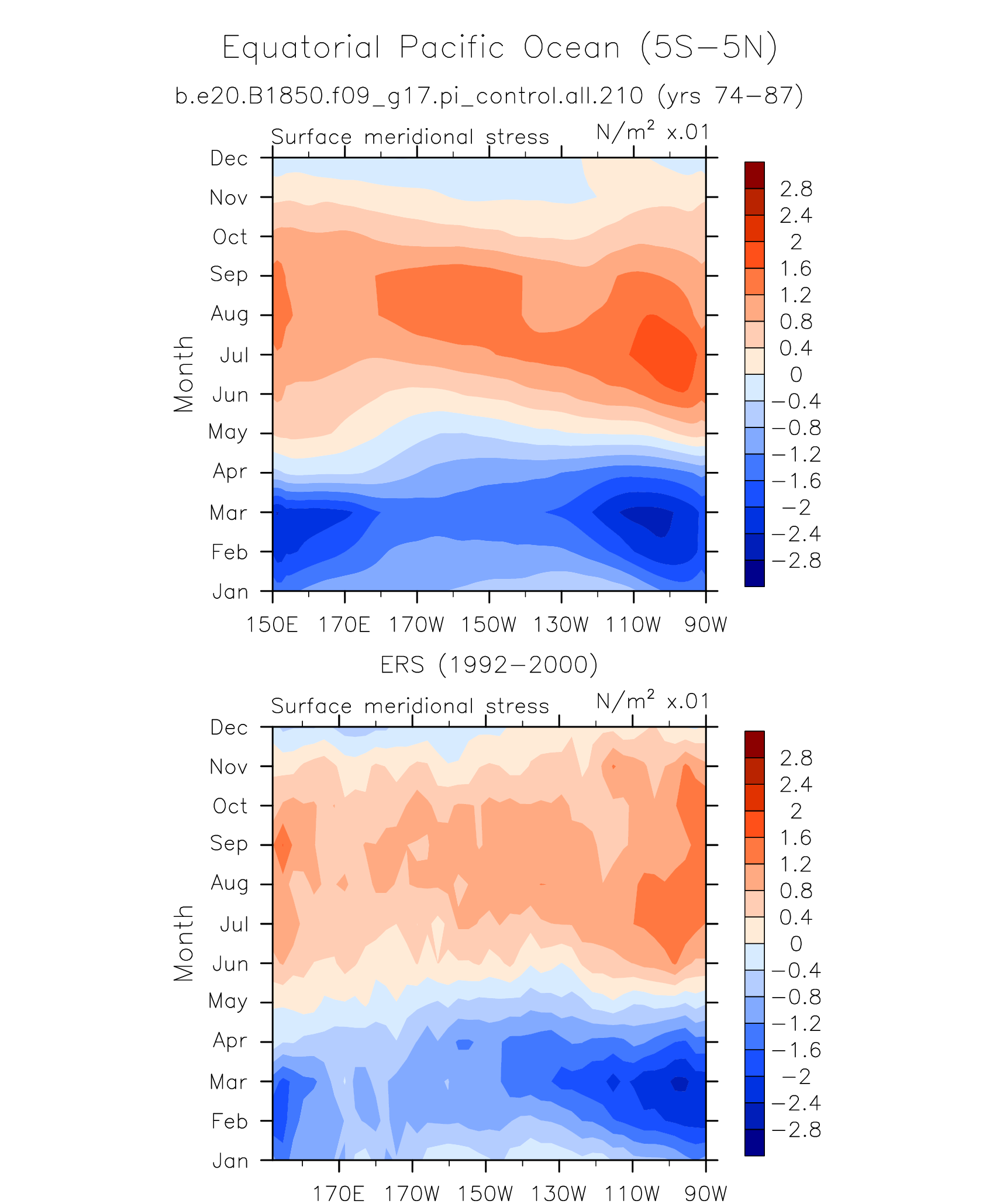 Surface Meridional Stress ERS 1992-2000 plot