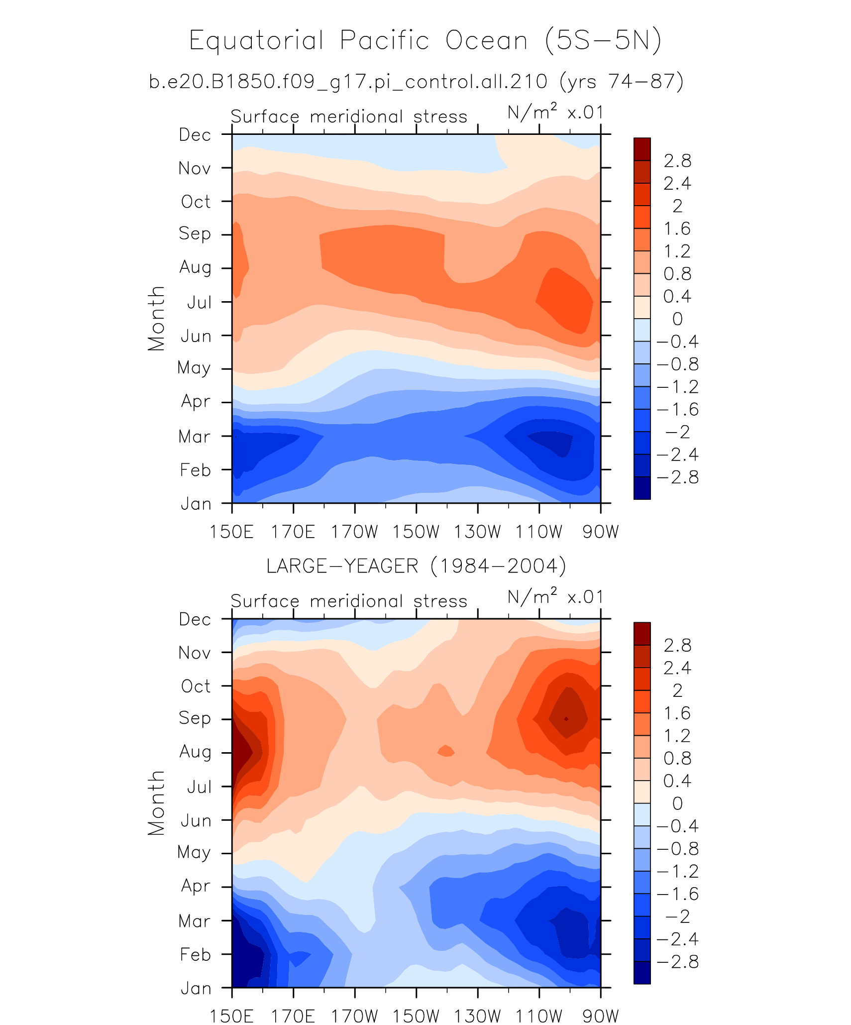 Surface Zonal Stress LARGE-YEAGER 1984-2004 plot