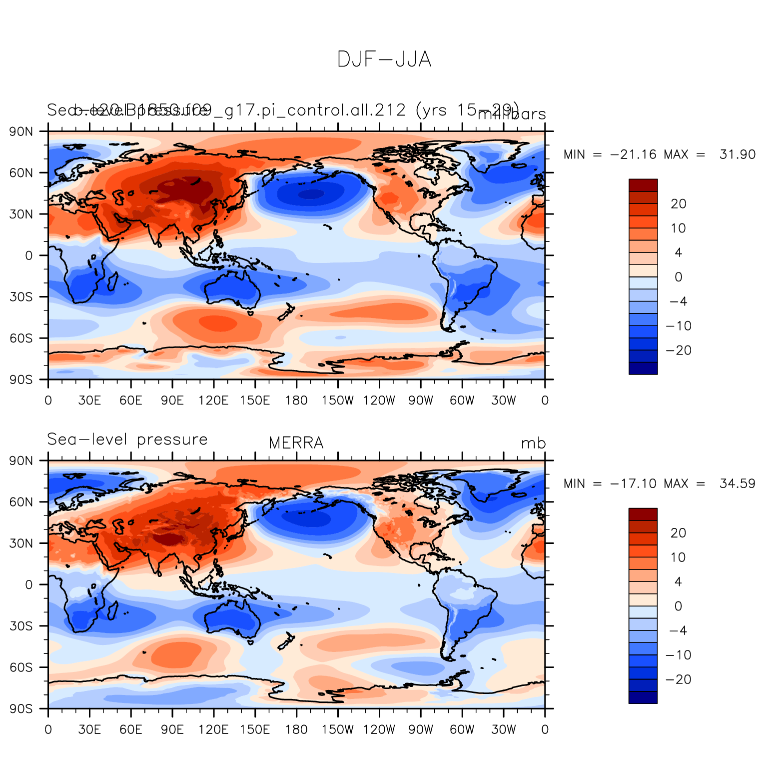 b.e20.B1850.f09_g17.pi_control.all.212 DIAG Set 9 - Horizontal contour plots of DJF-JJA differences