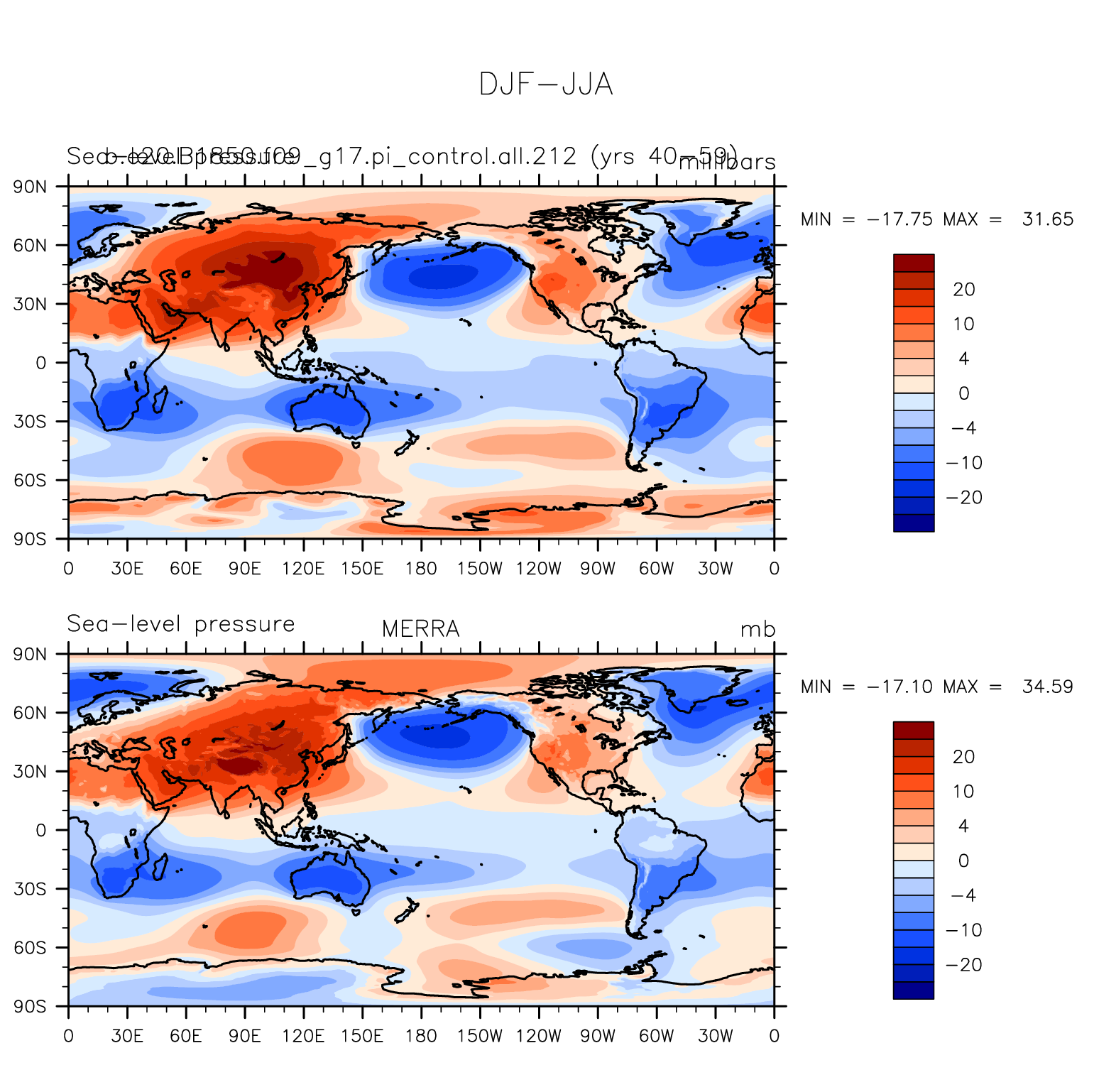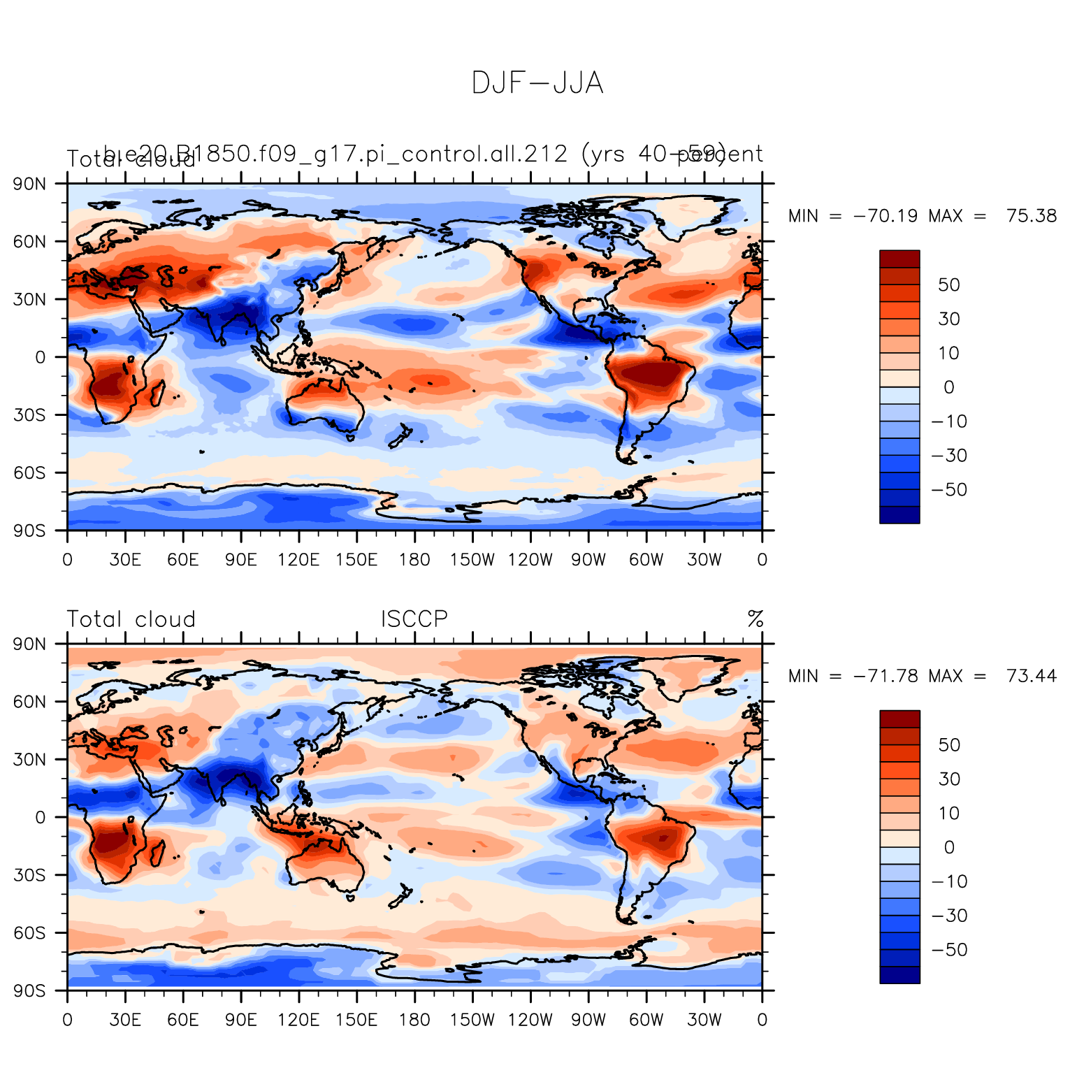 b.e20.B1850.f09_g17.pi_control.all.212 DIAG Set 9 - Horizontal contour plots of DJF-JJA differences