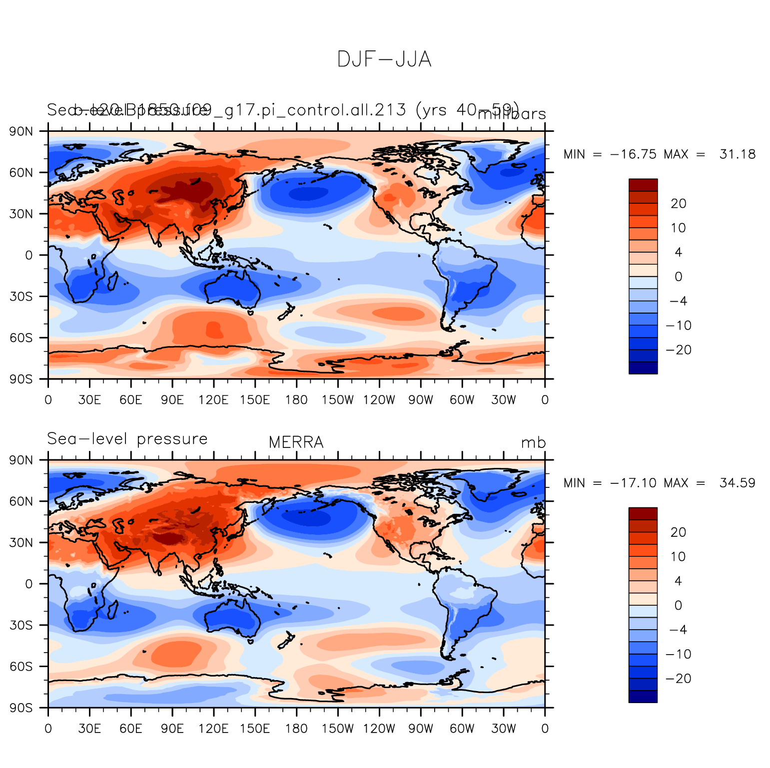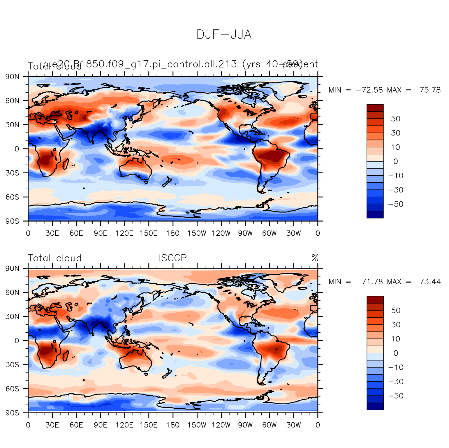 b.e20.B1850.f09_g17.pi_control.all.213 DIAG Set 9 - Horizontal contour plots of DJF-JJA differences