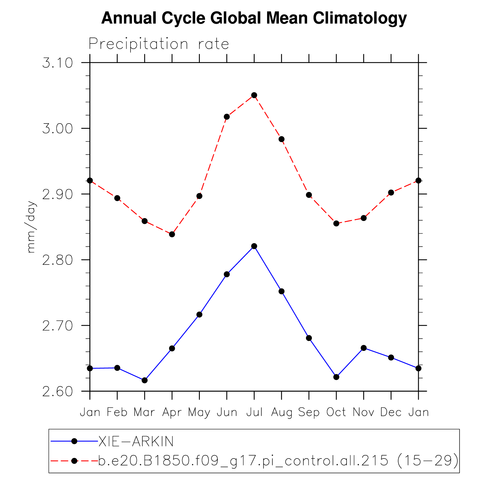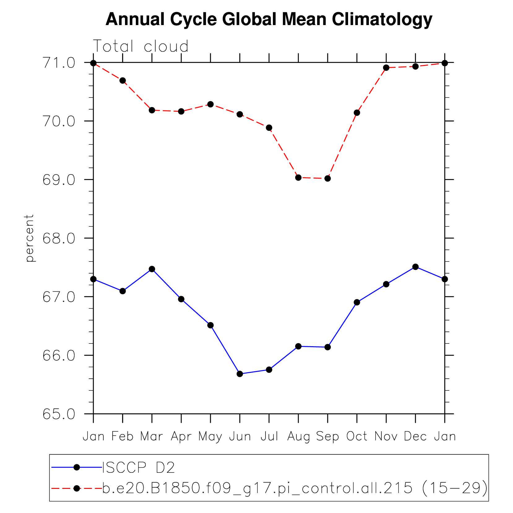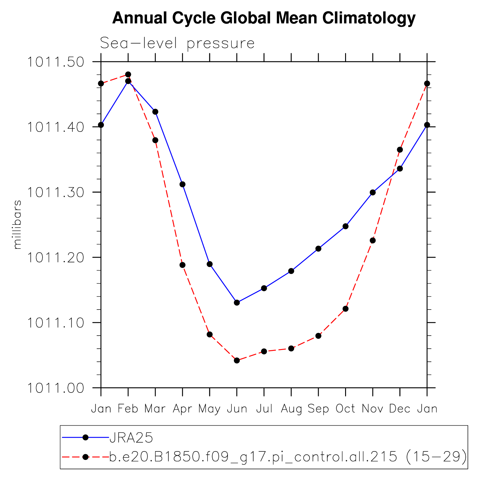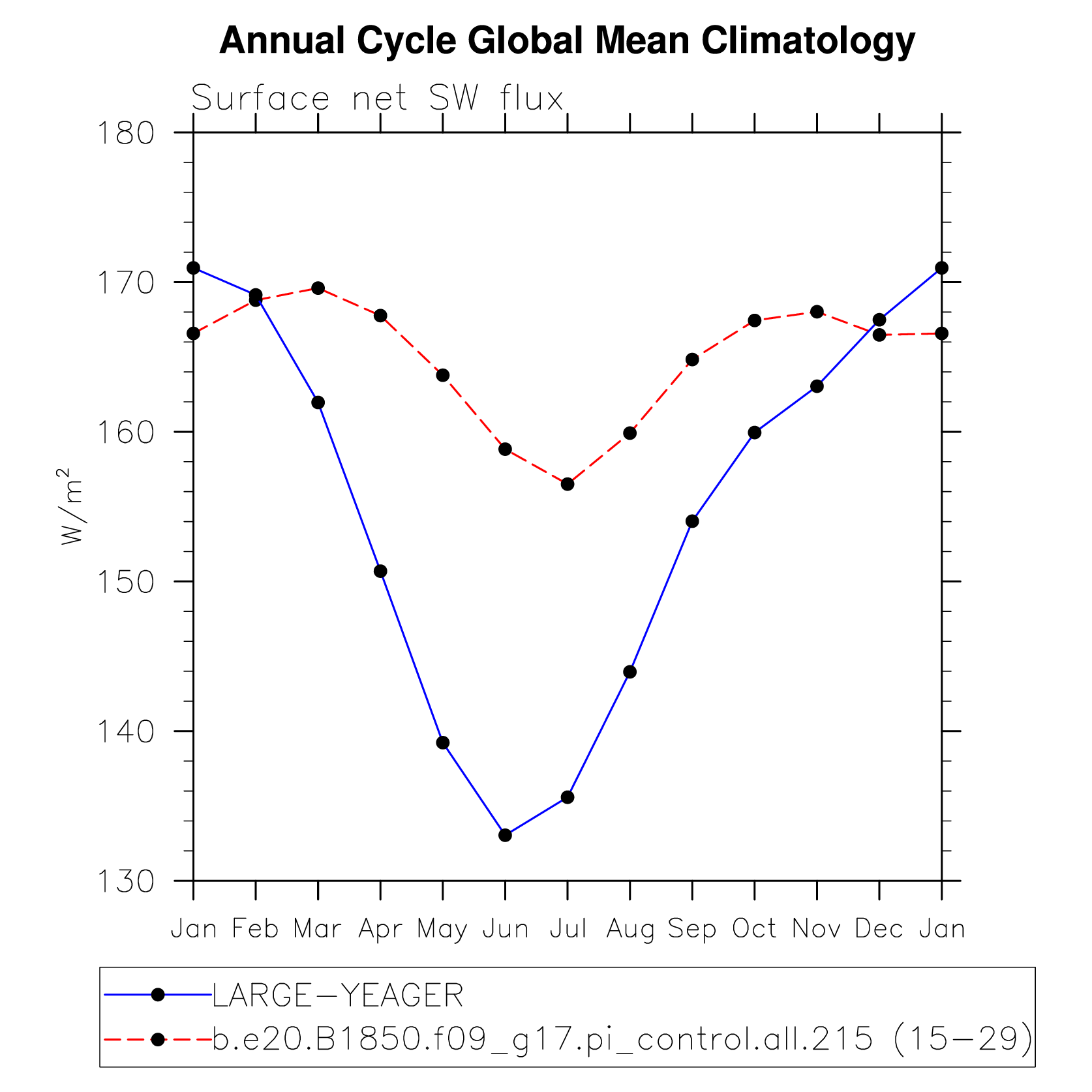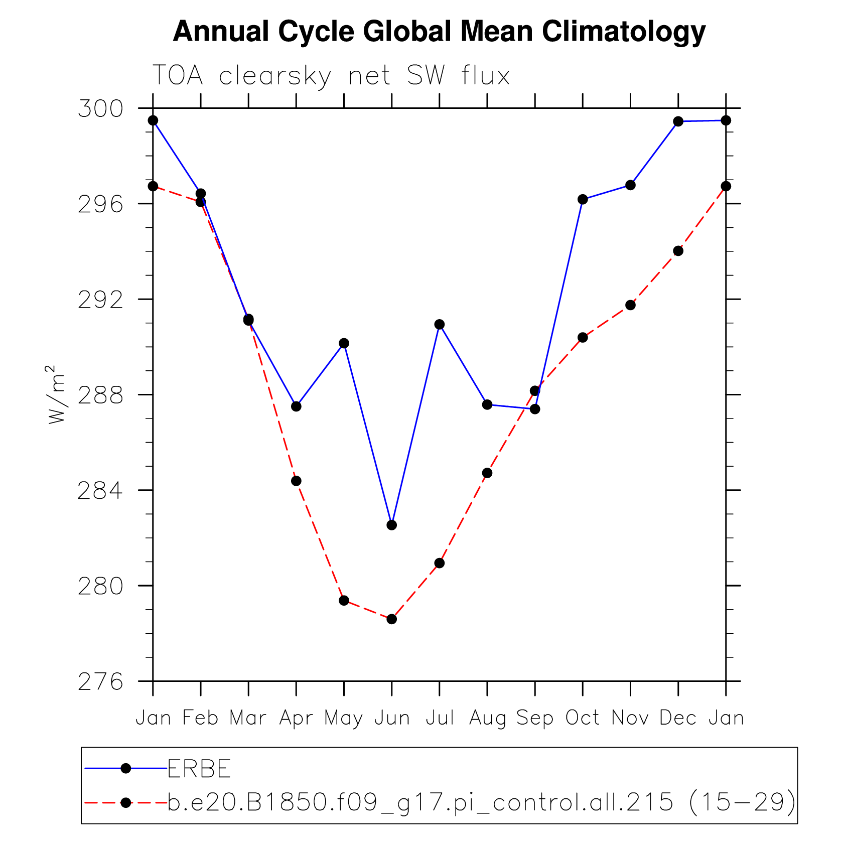 DIAG Set 10 - Annual cycle line plots of global means