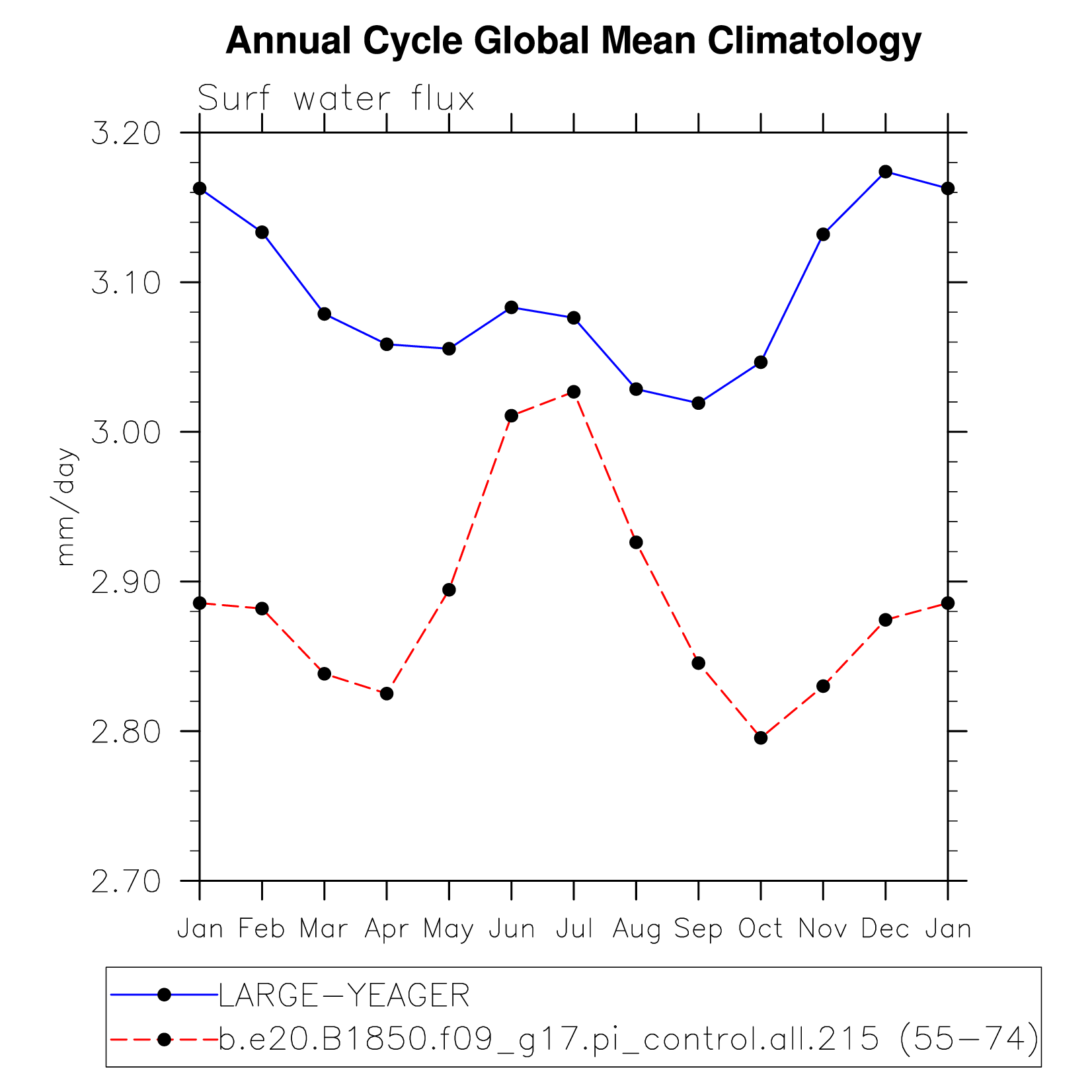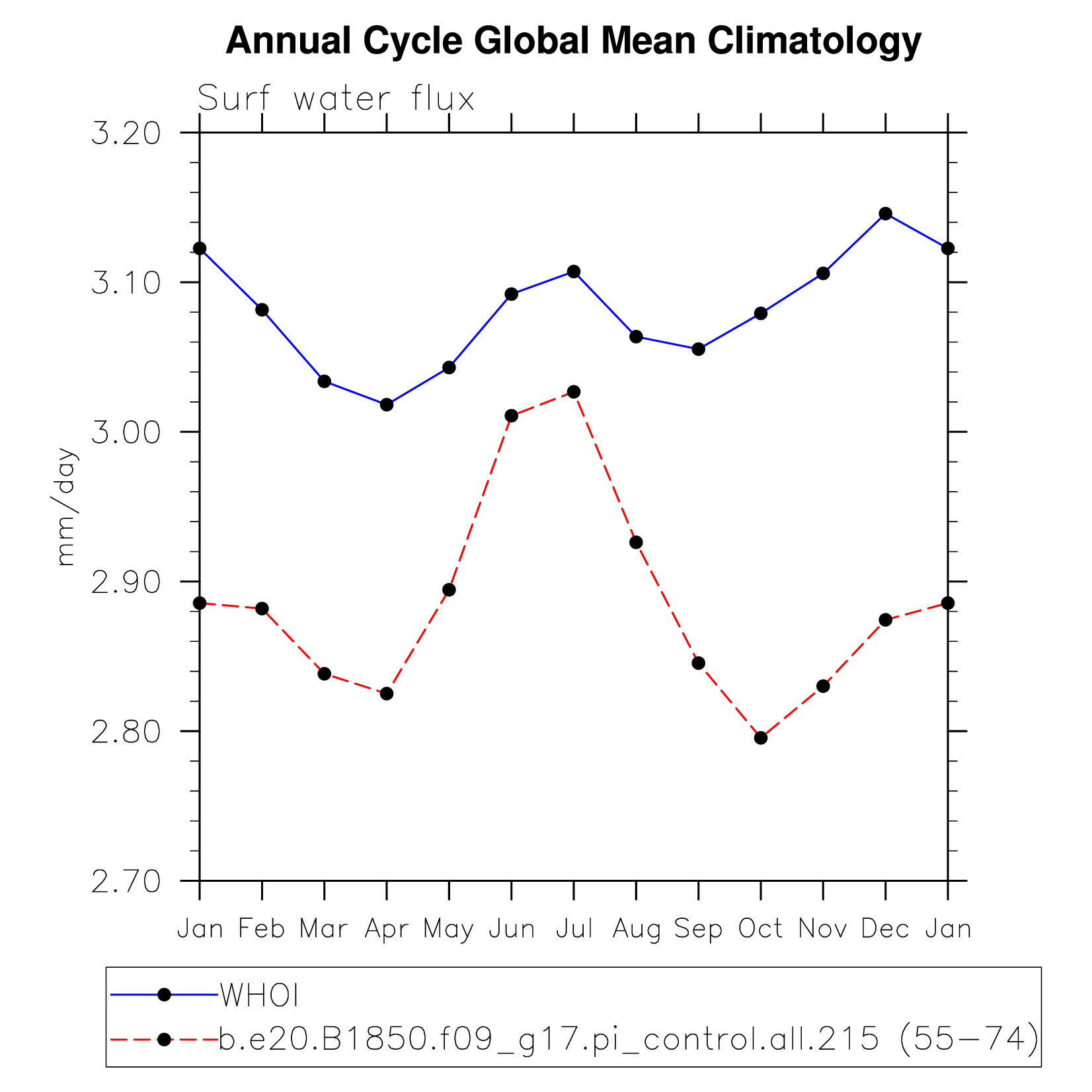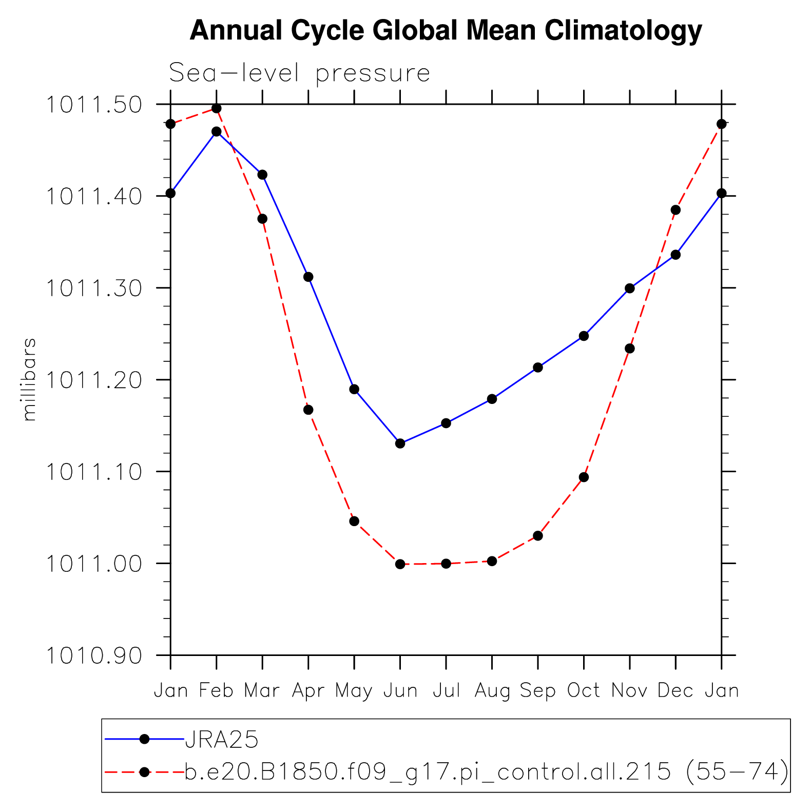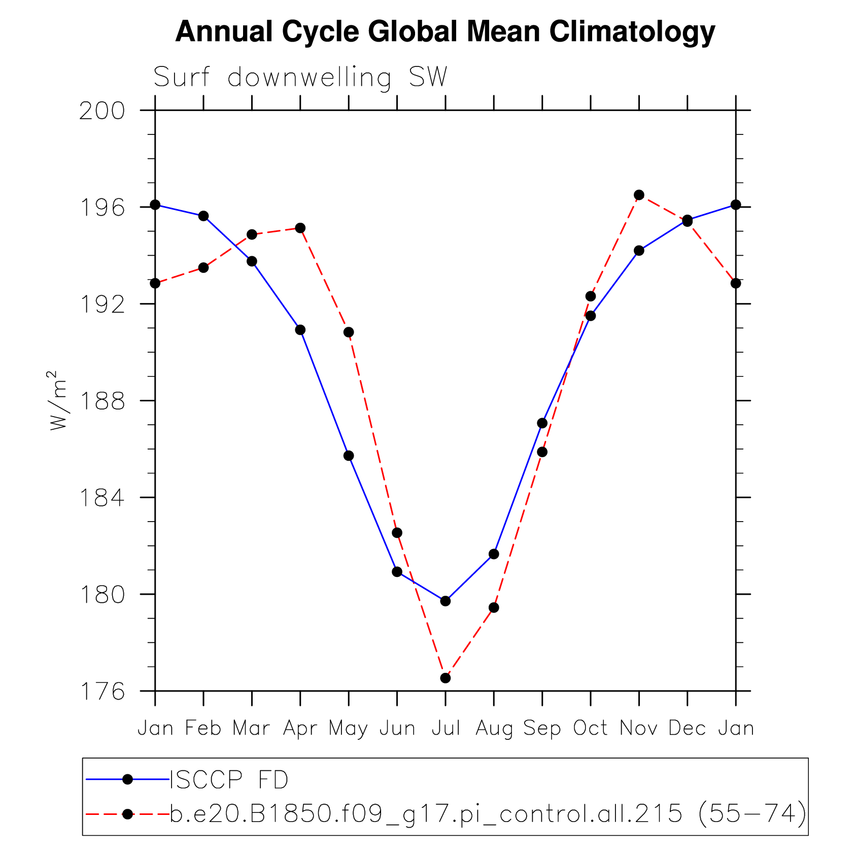 DIAG Set 10 - Annual cycle line plots of global means
