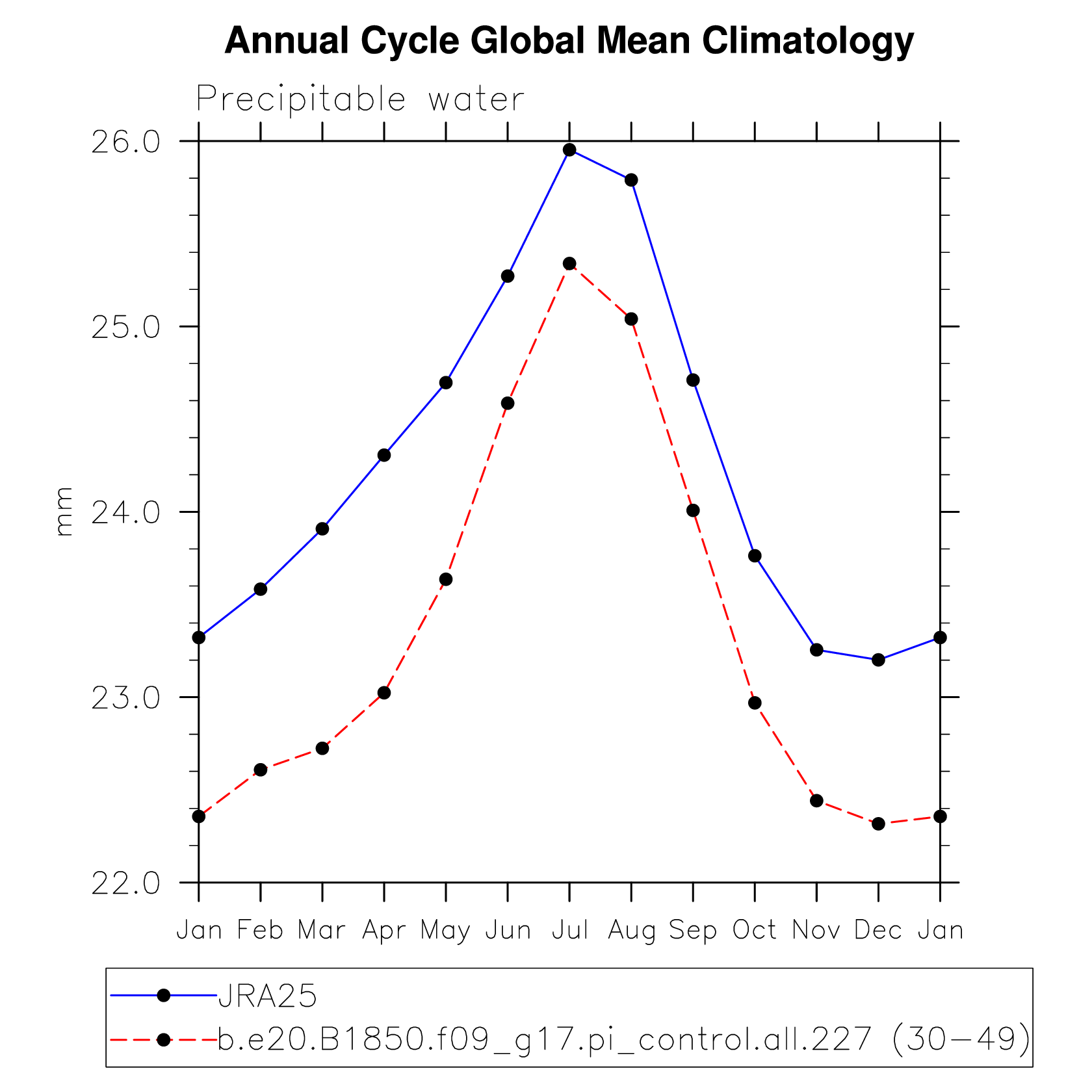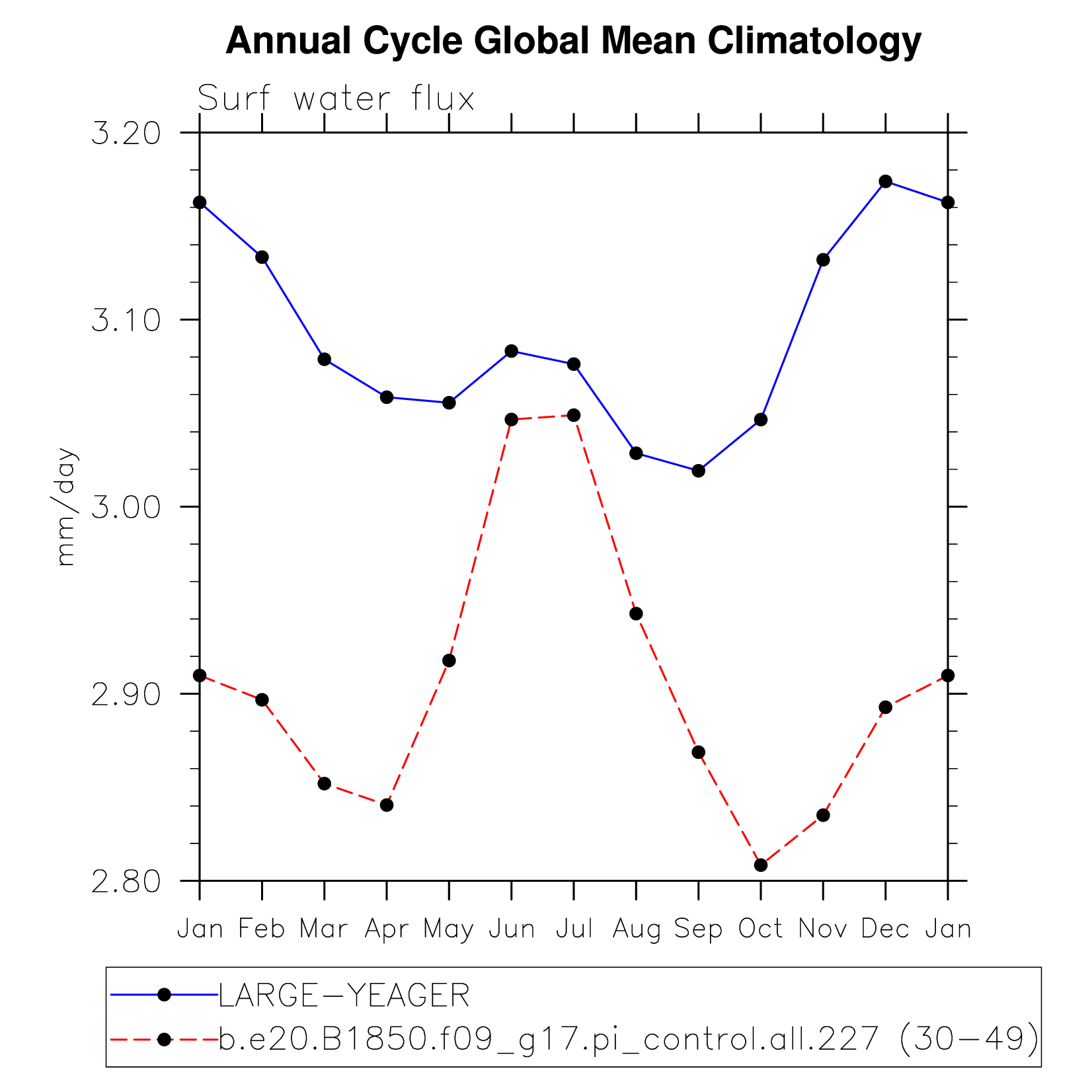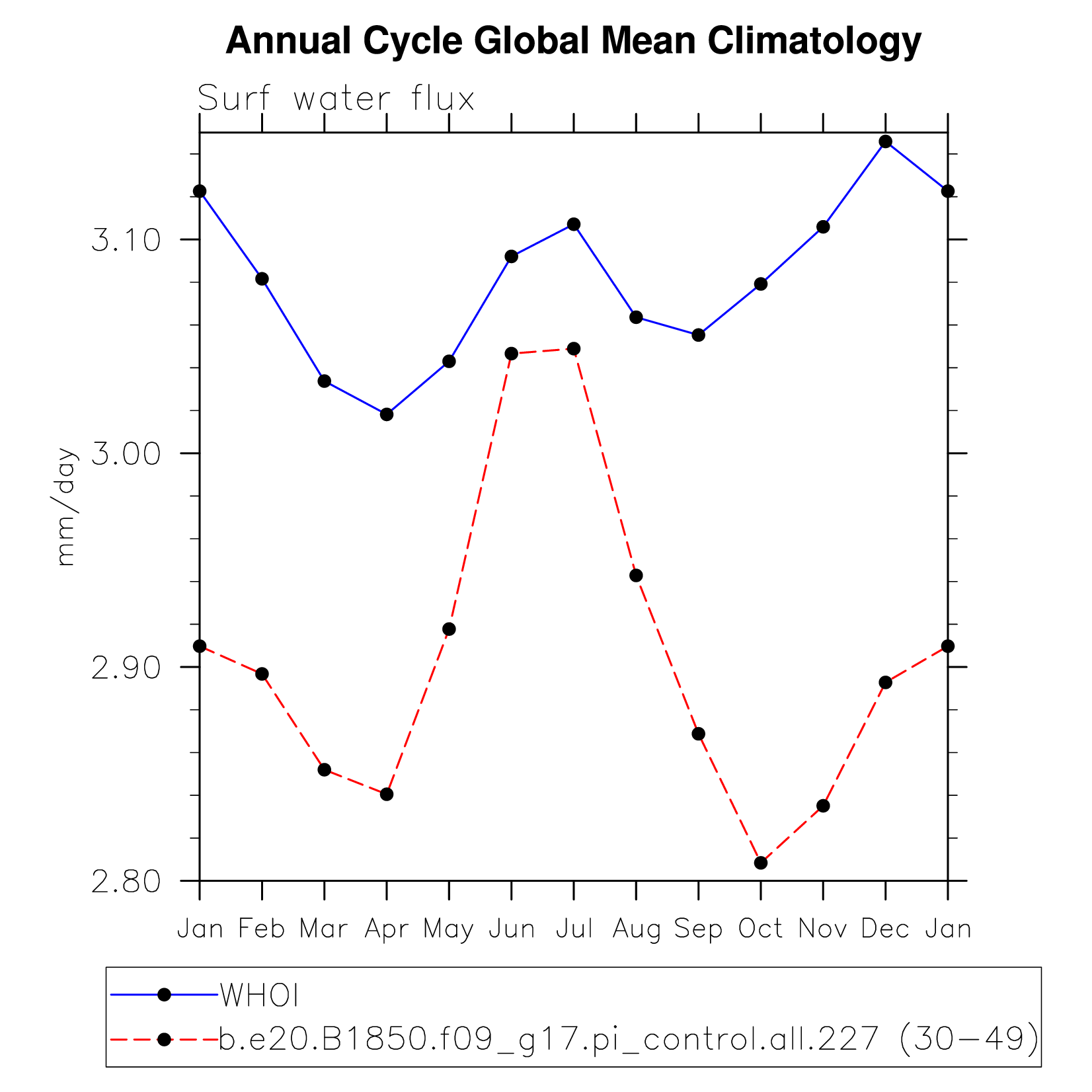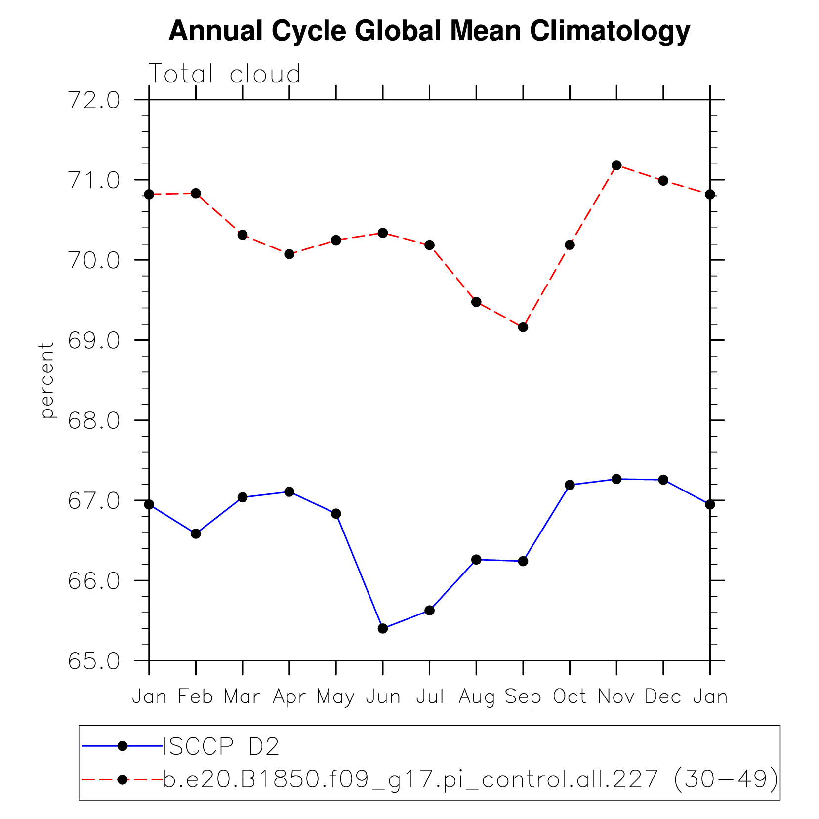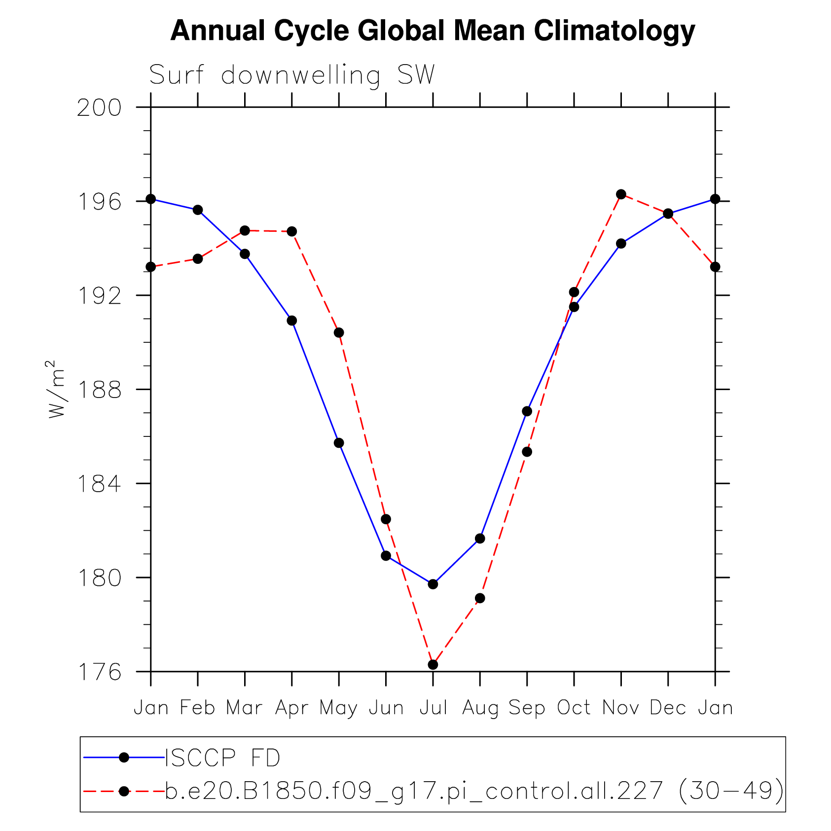DIAG Set 10 - Annual cycle line plots of global means