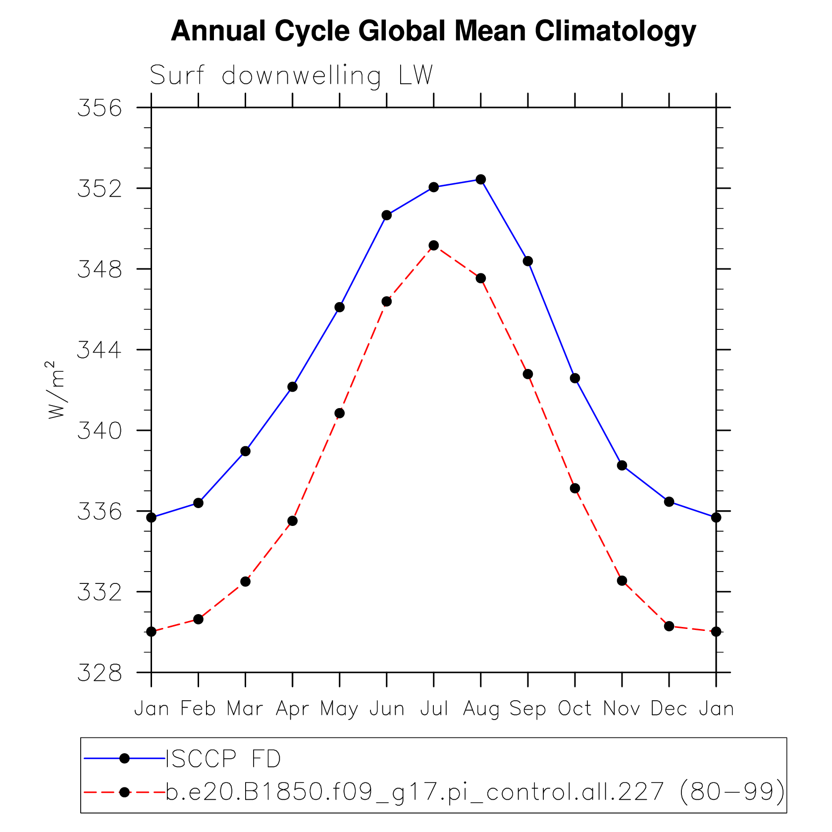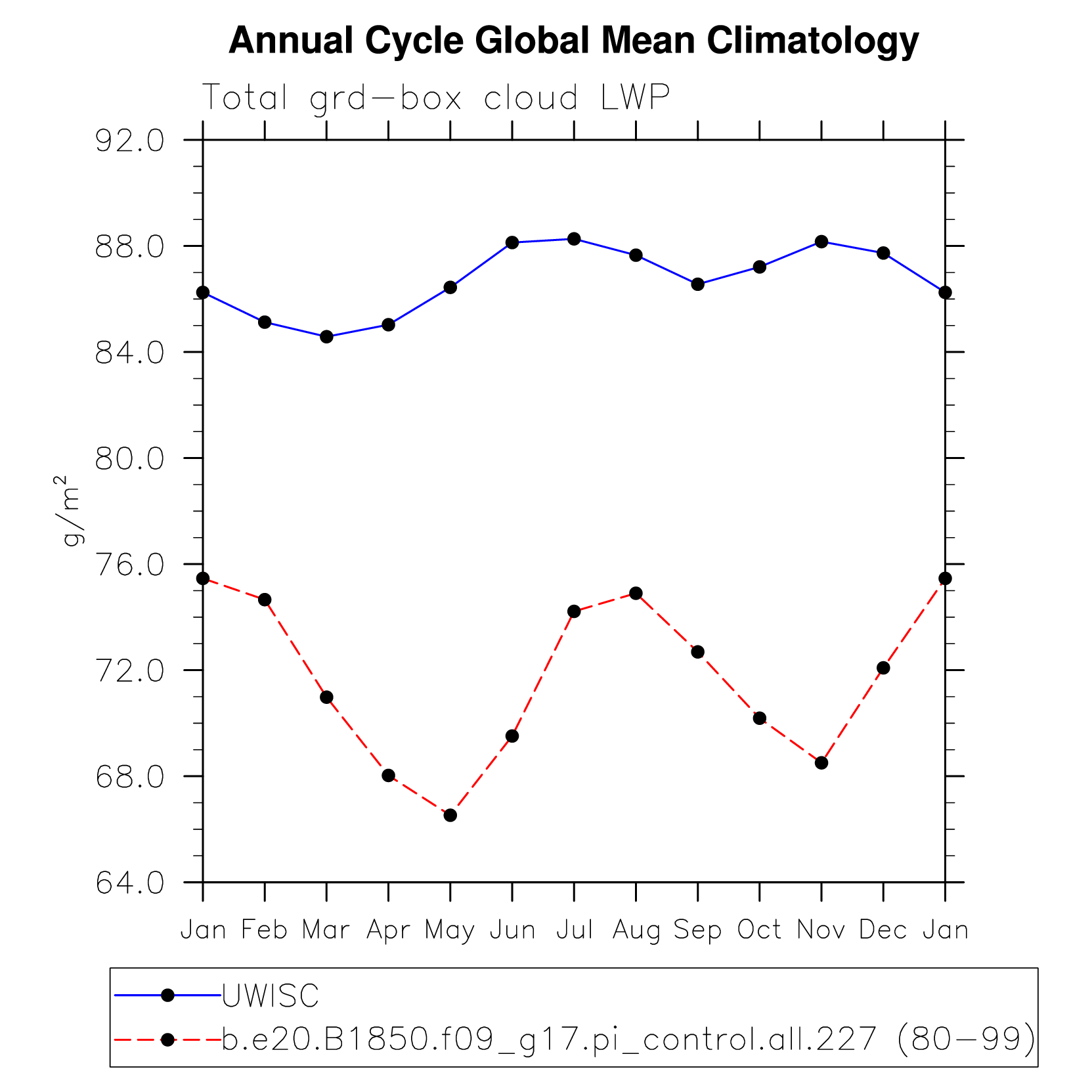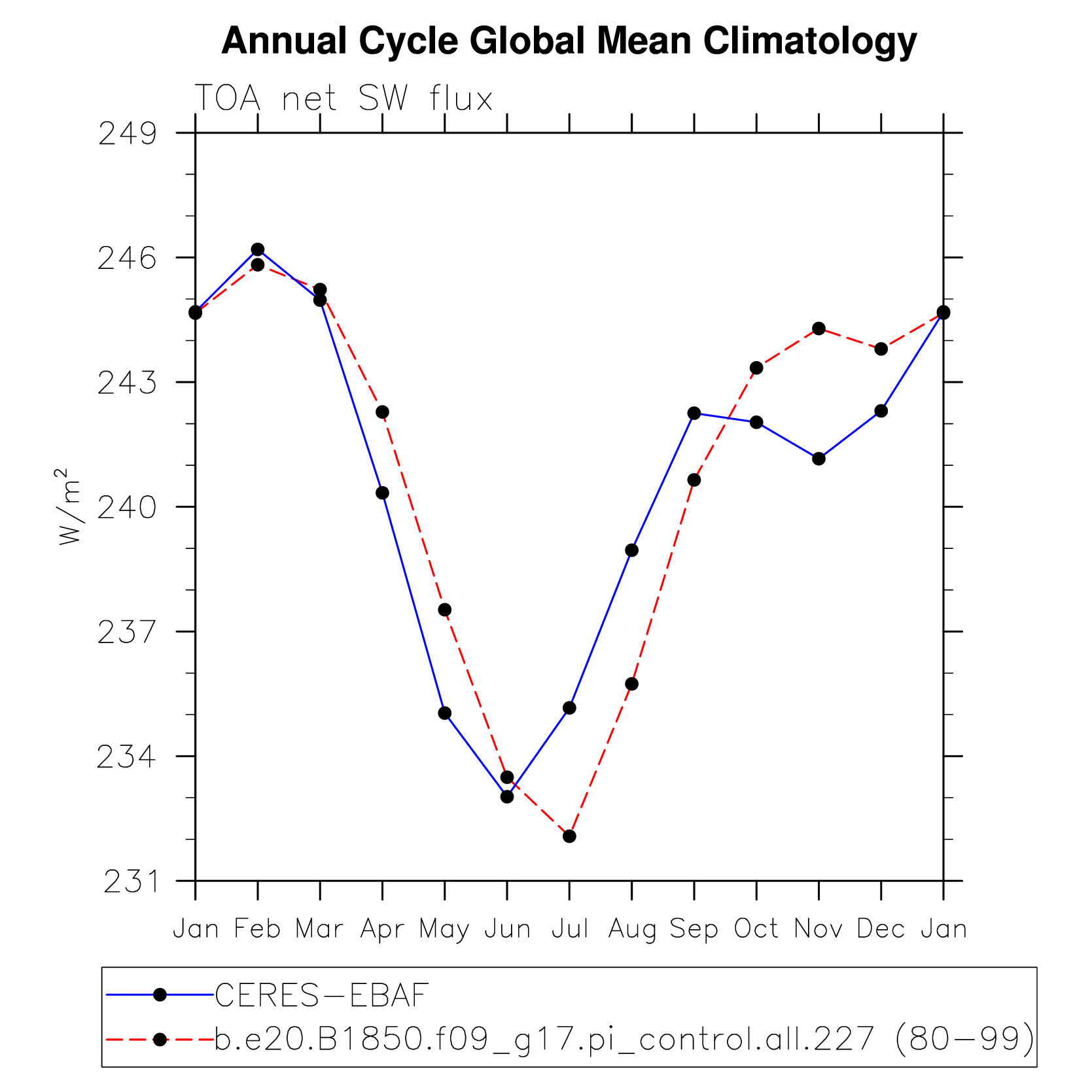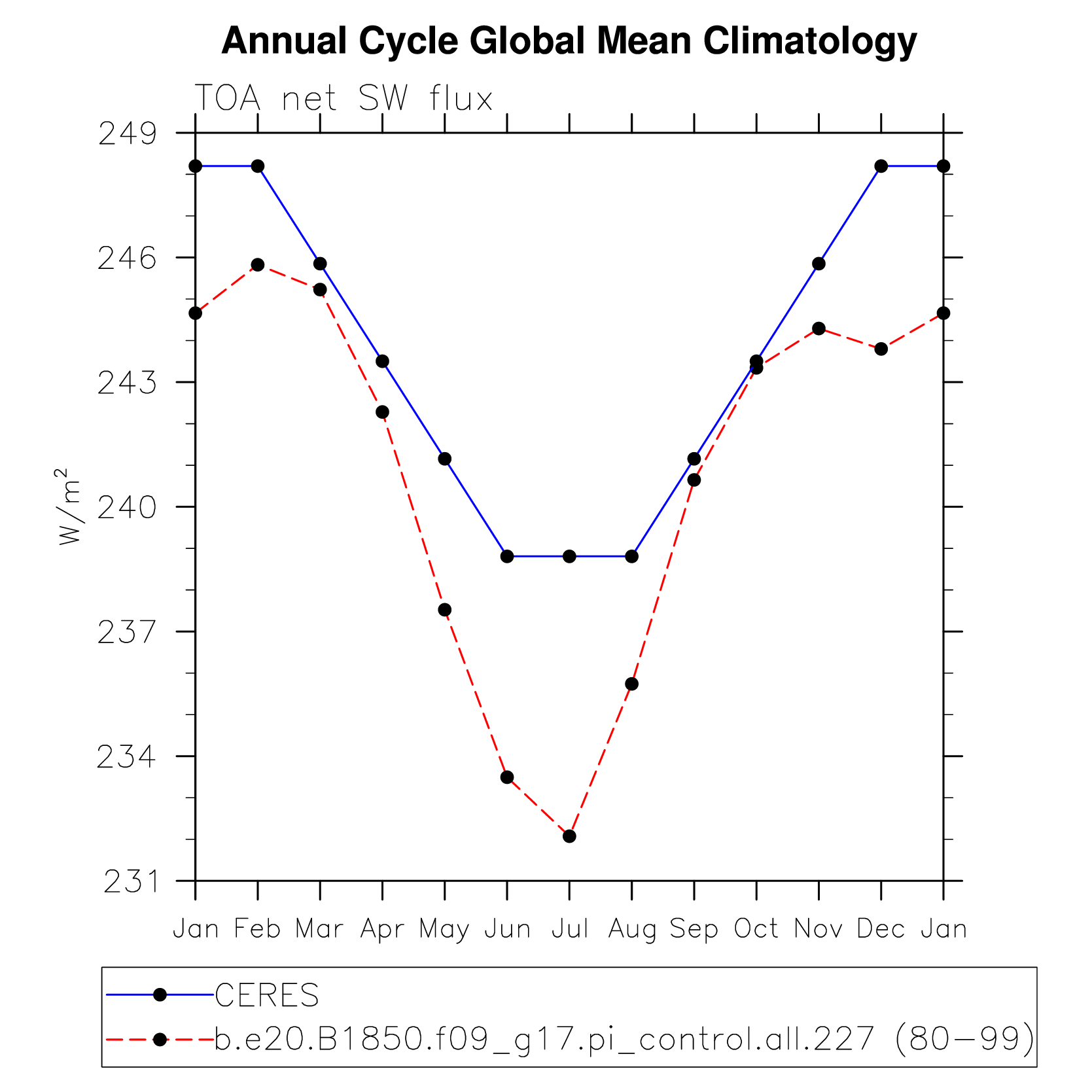 DIAG Set 10 - Annual cycle line plots of global means