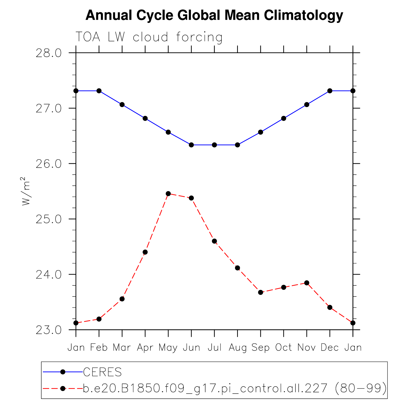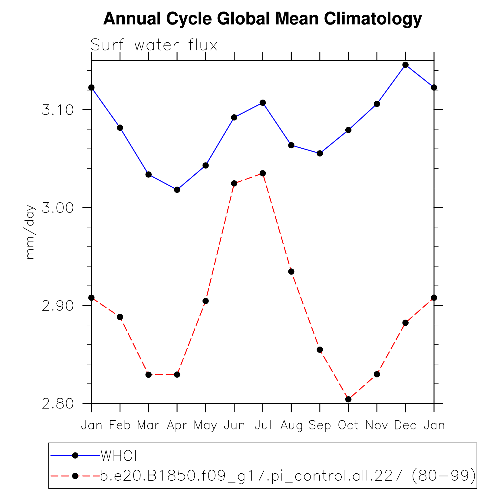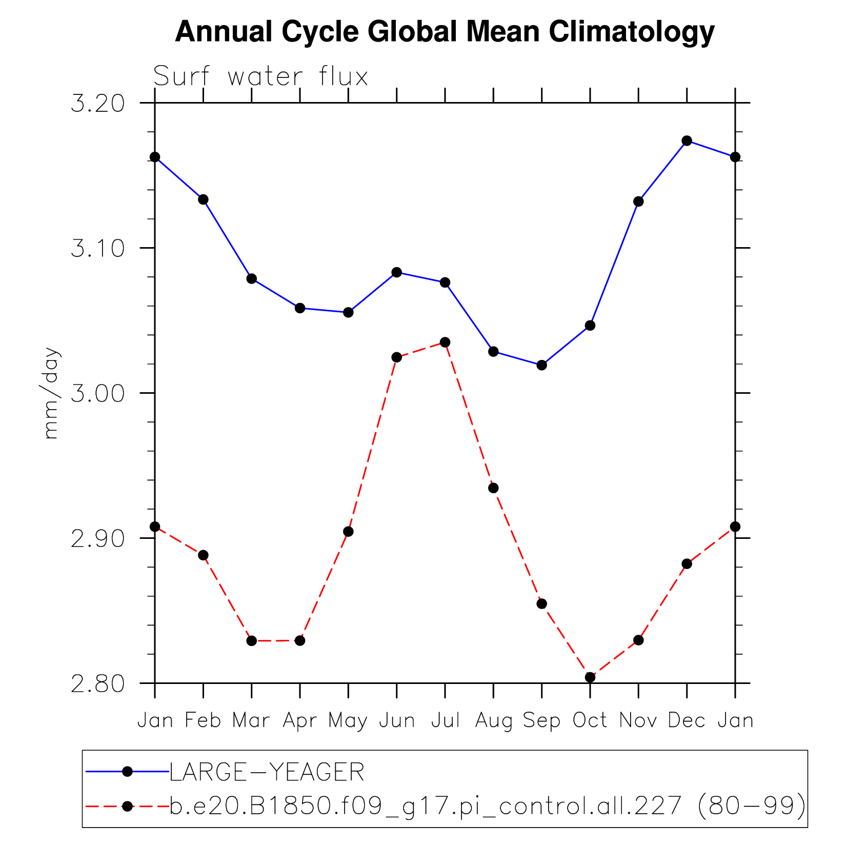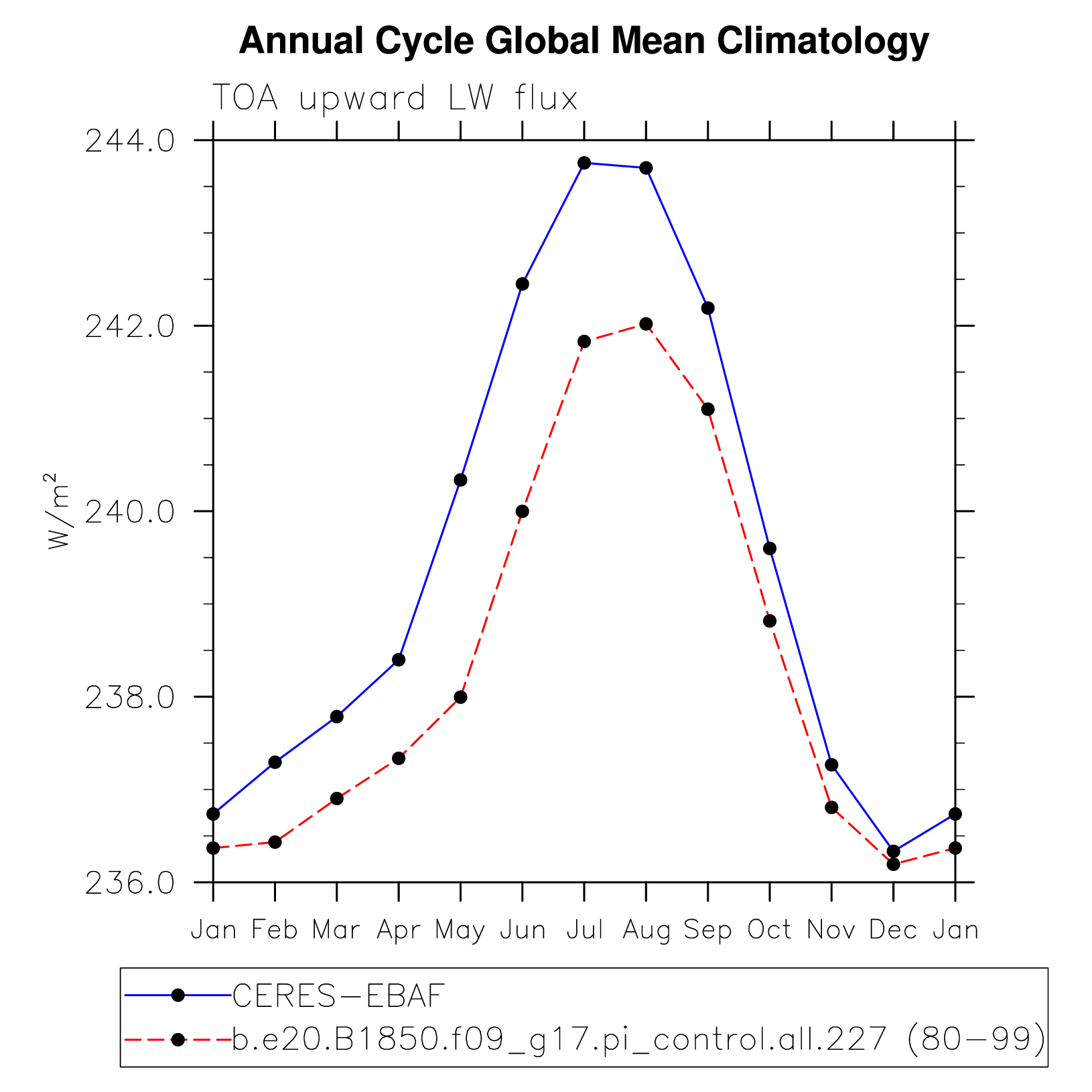 DIAG Set 10 - Annual cycle line plots of global means