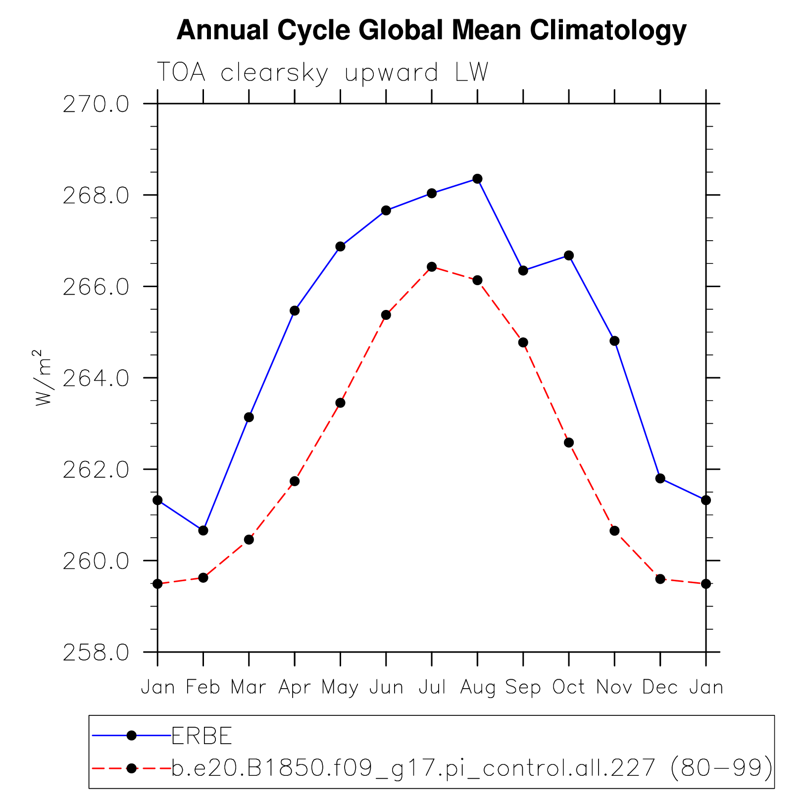 FLUTC TOA clearsky upward LW flux plot