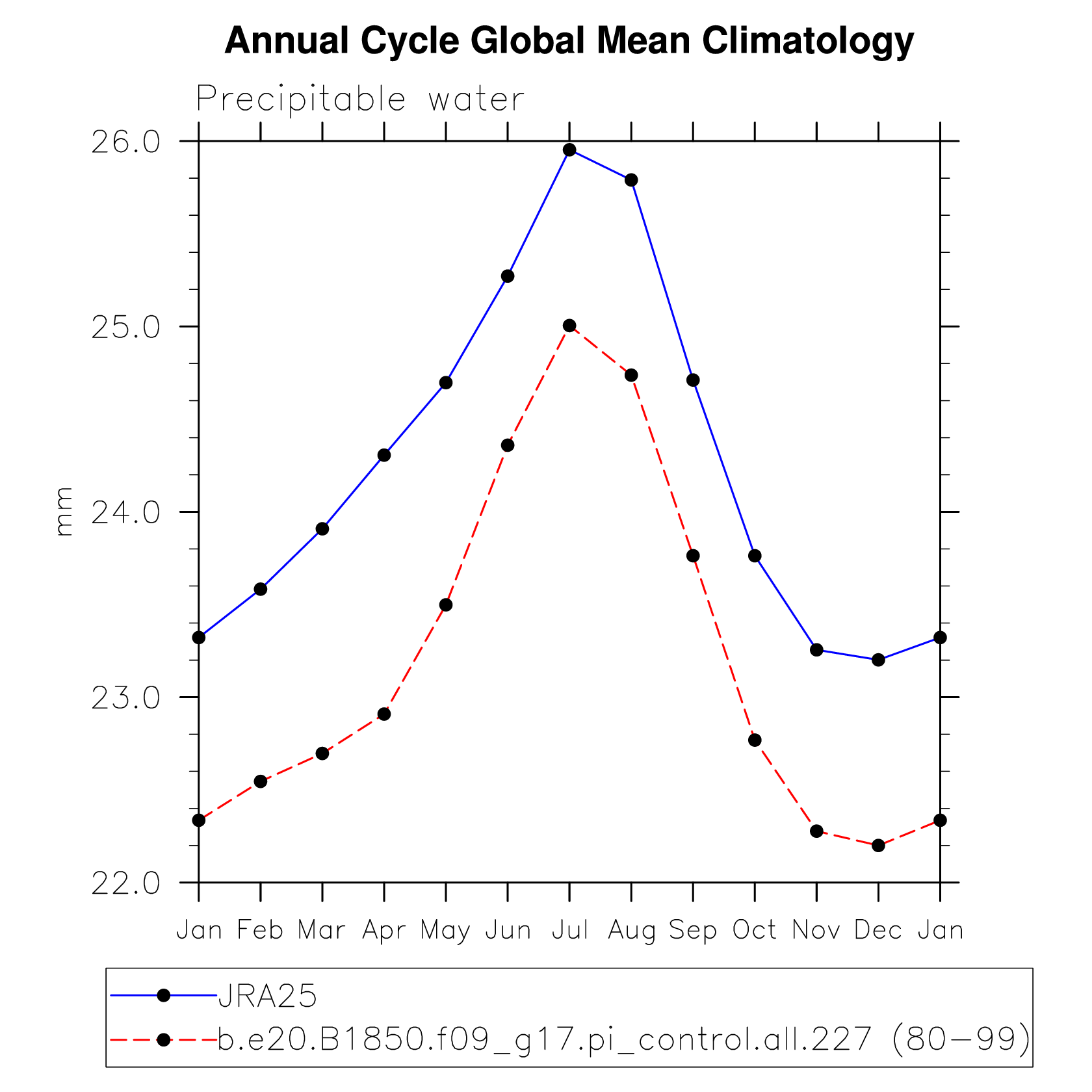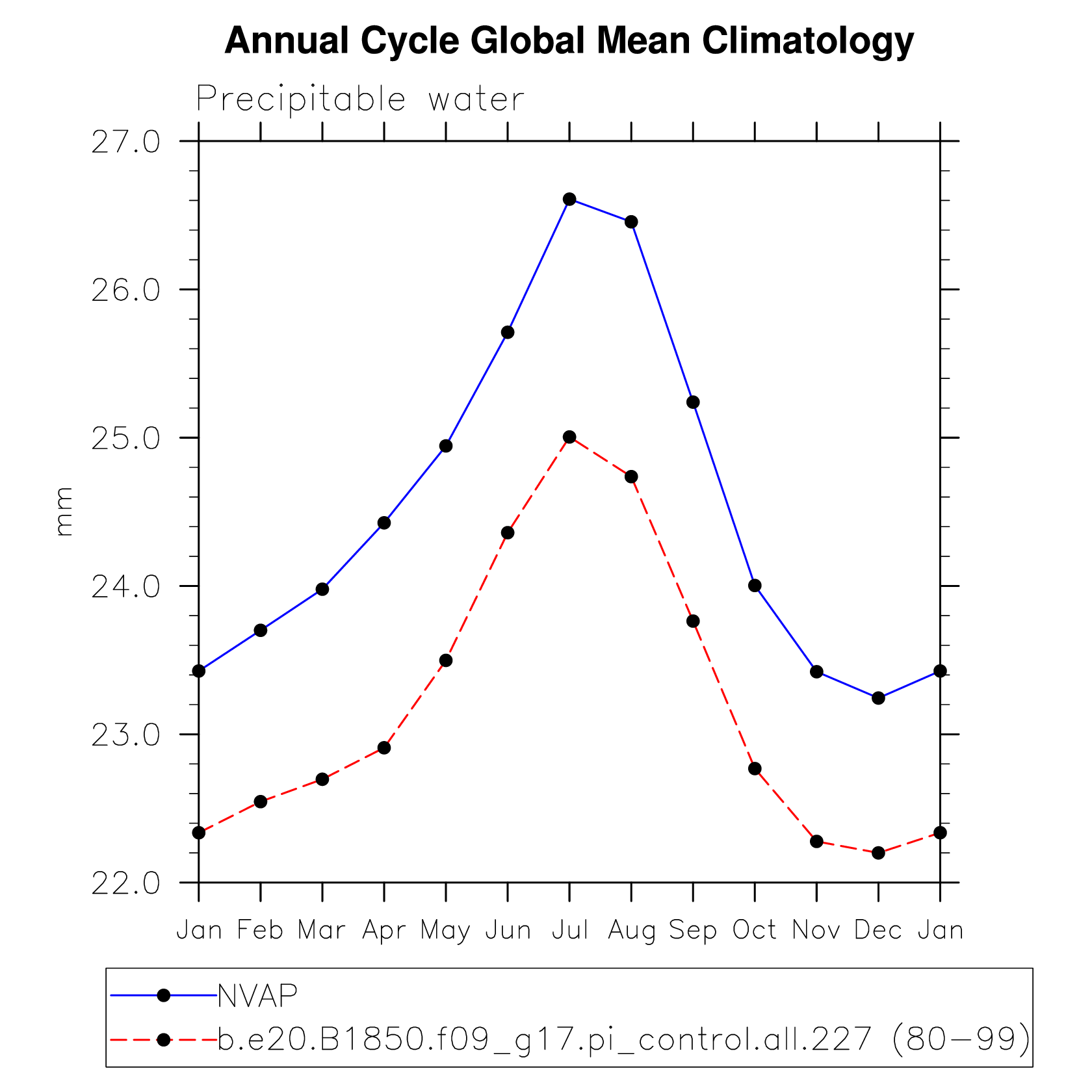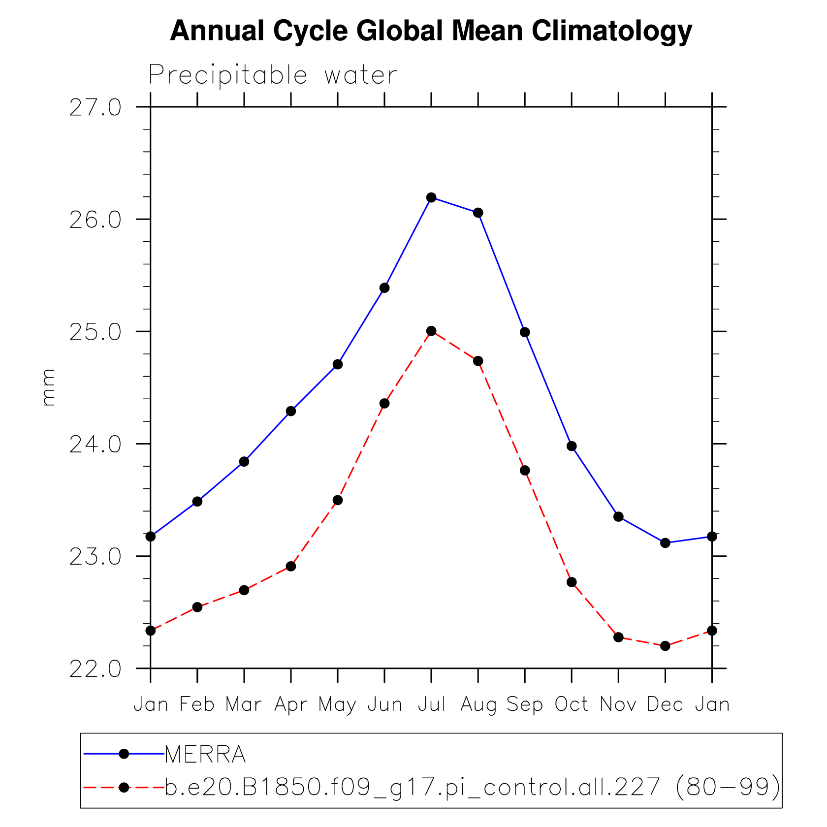 PREH2O Precipitable water (ocean) plot