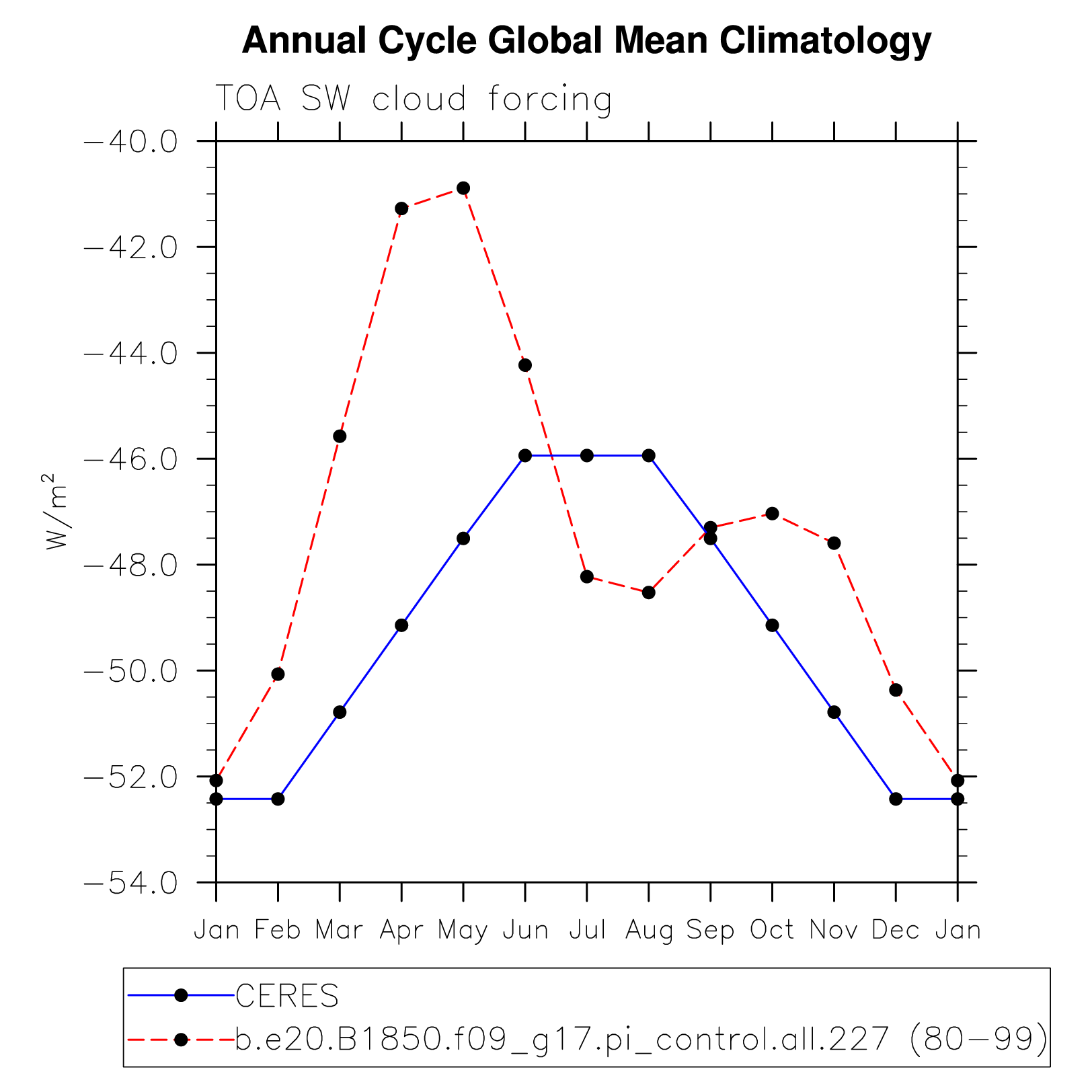 SWCF TOA shortwave cloud forcing plot
