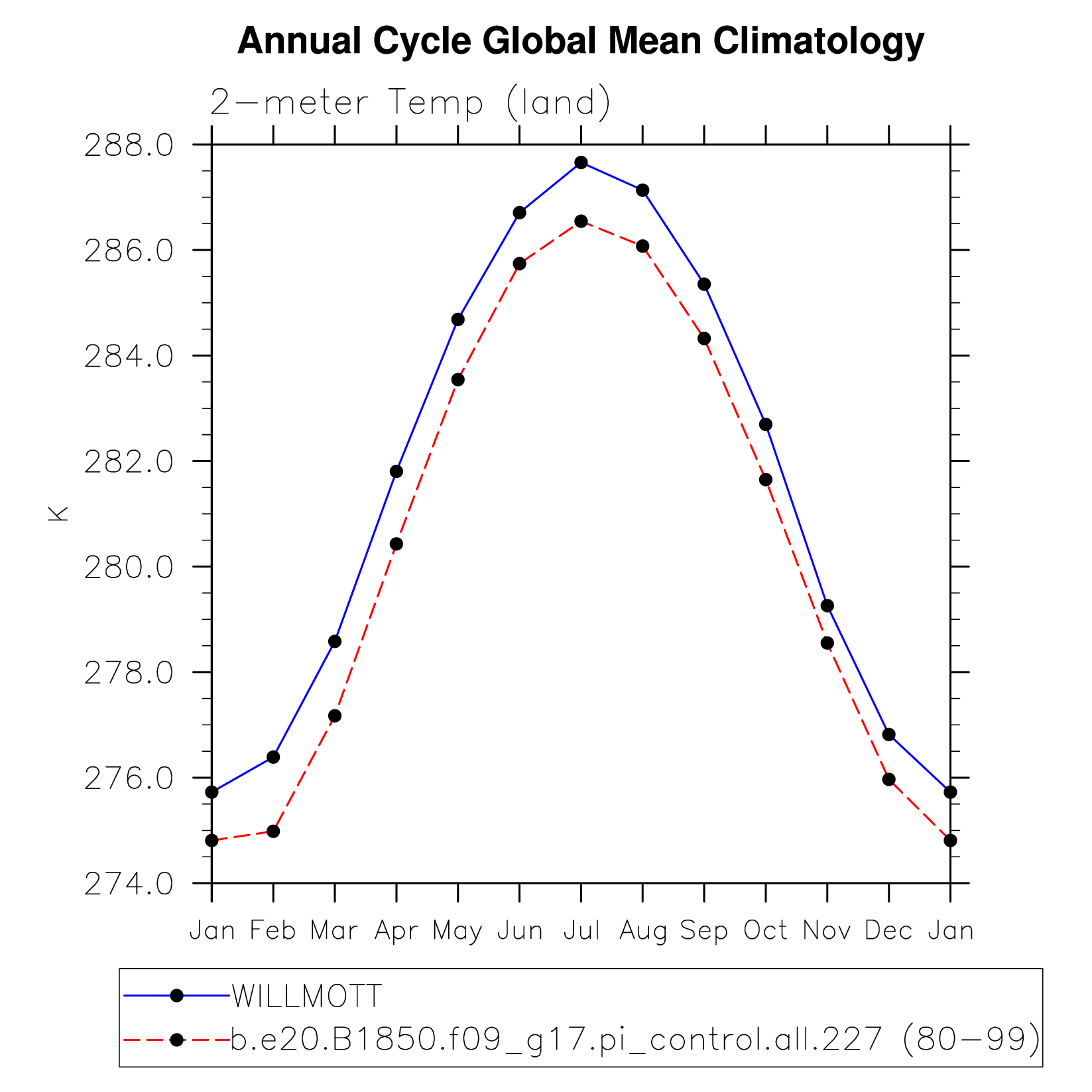 TREFHT 2-meter air temperature (land) plot